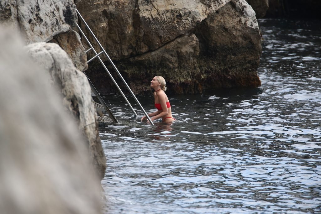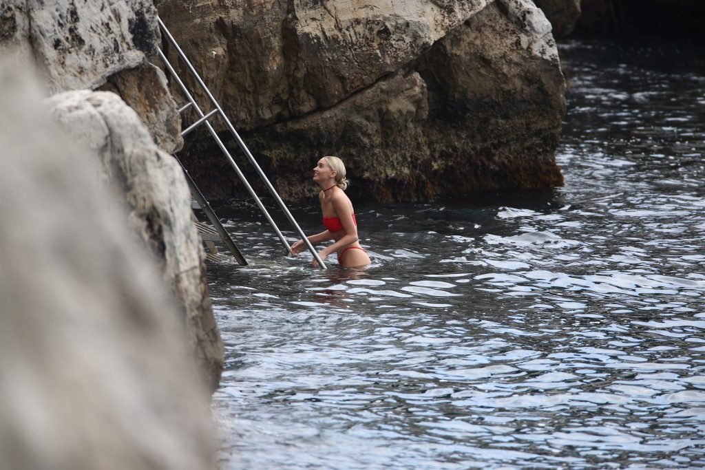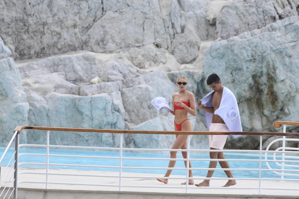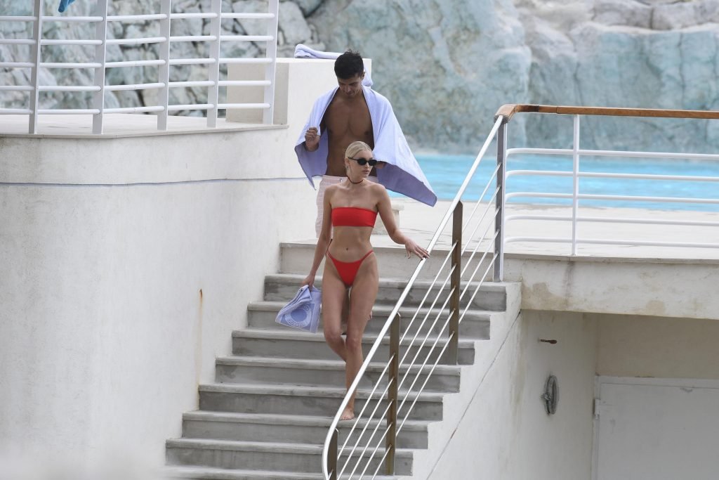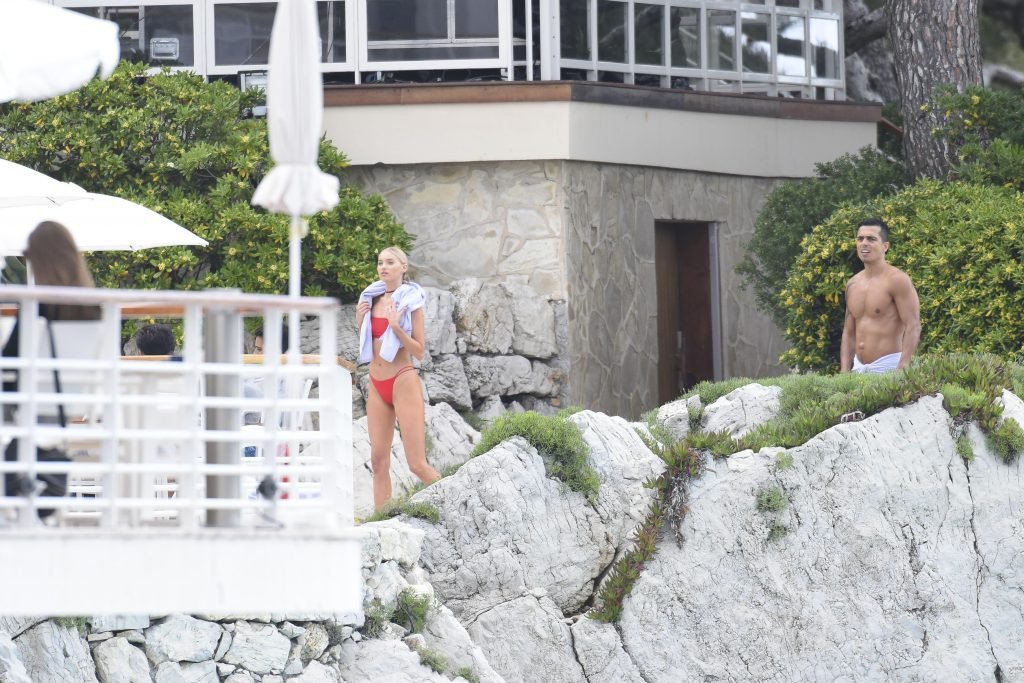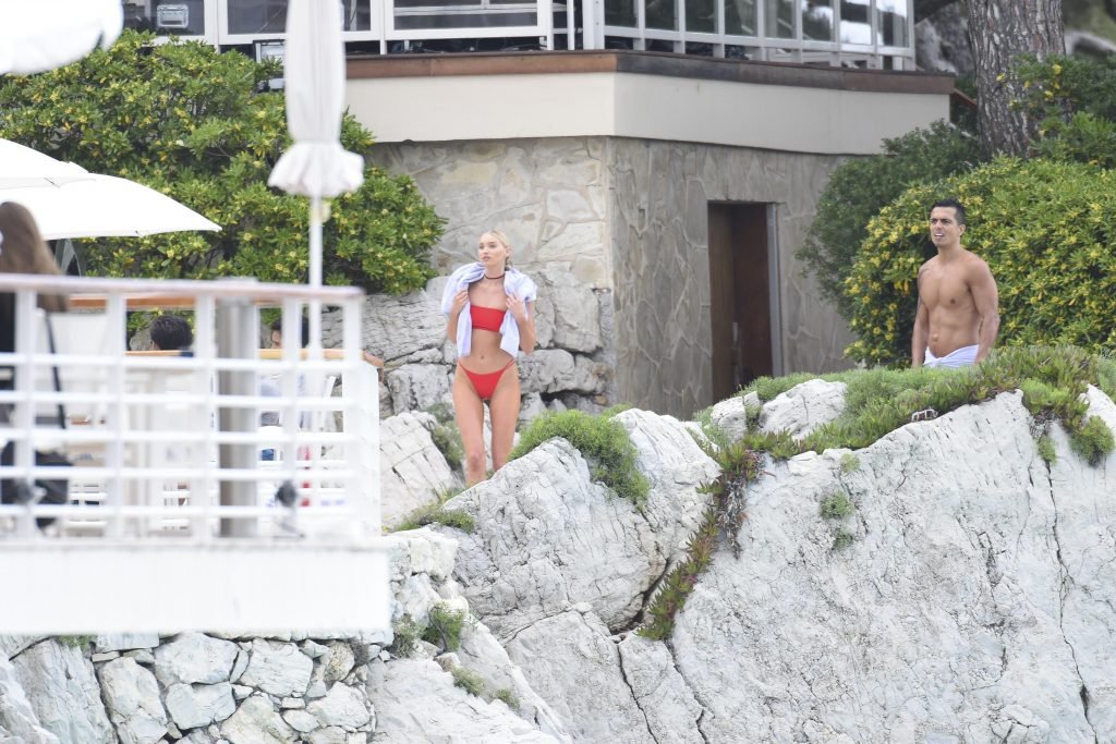 VS Swedish Angel Elsa Hosk è stata avvistata in un bikini rosso a perizoma all’Eden Roc Hotel di Antibes, 16/05/2018. La modella mostra le sue gambe lunghe e il suo piccolo sedere durante il 71° Festival di Cannes.