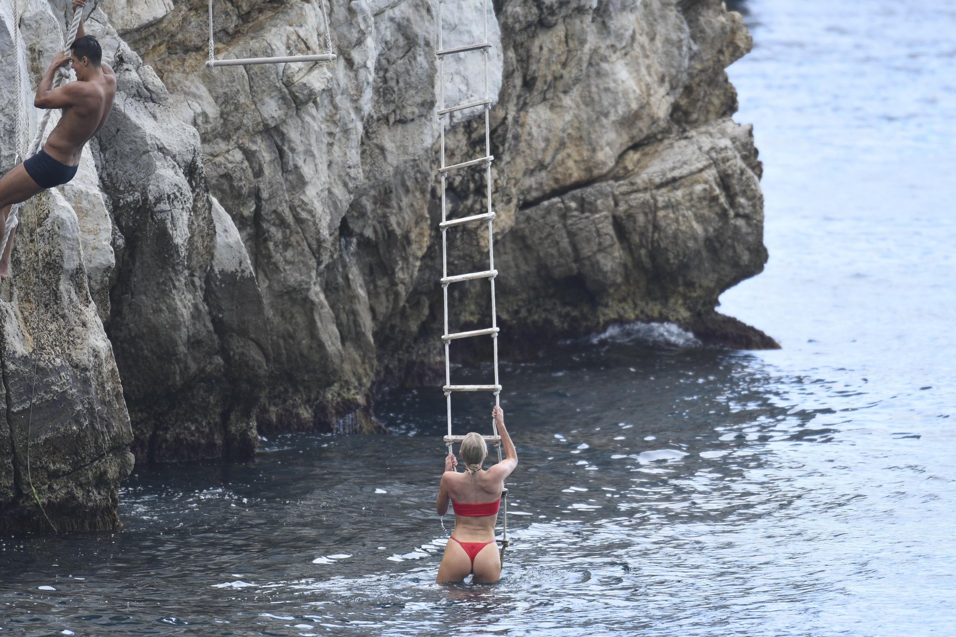 VS Swedish Angel Elsa Hosk è stata avvistata in un bikini rosso a perizoma all’Eden Roc Hotel di Antibes, 16/05/2018. La modella mostra le sue gambe lunghe e il suo piccolo sedere durante il 71° Festival di Cannes.
