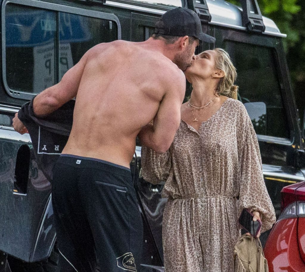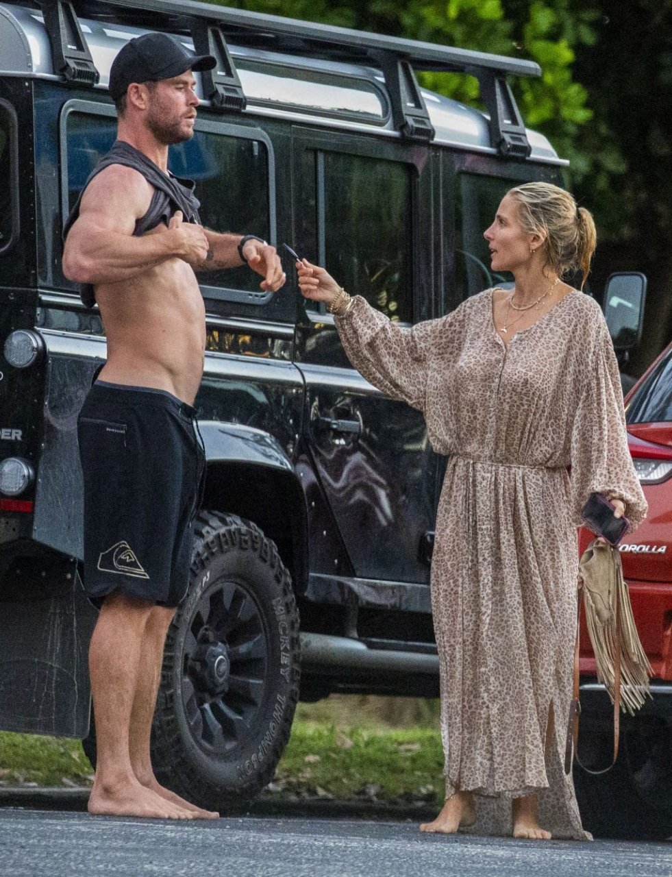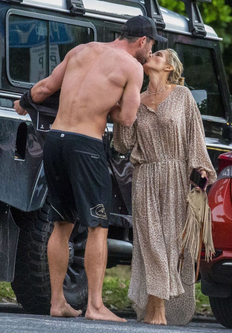 Chris Hemsworth (Thor di “Avengers”) ed Elsa Pataky hanno una romantica sessione di surf al tramonto insieme a Byron Bay, 10/05/2019.