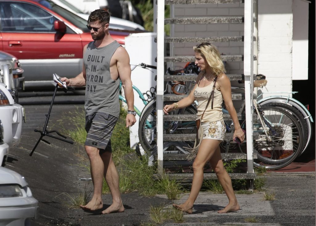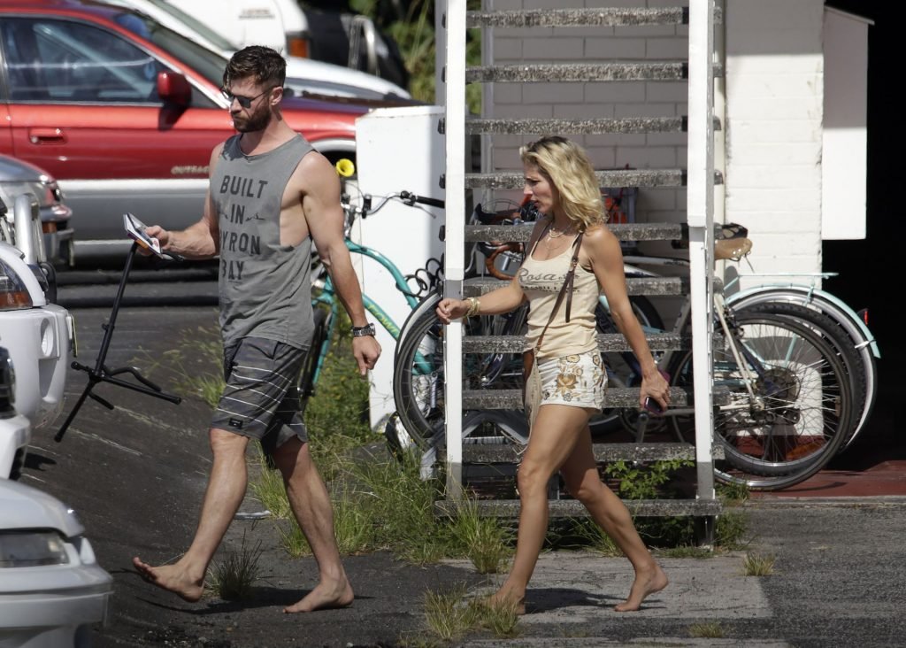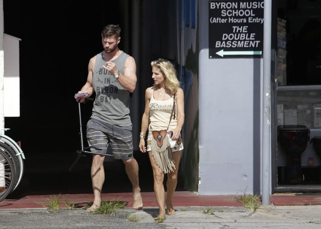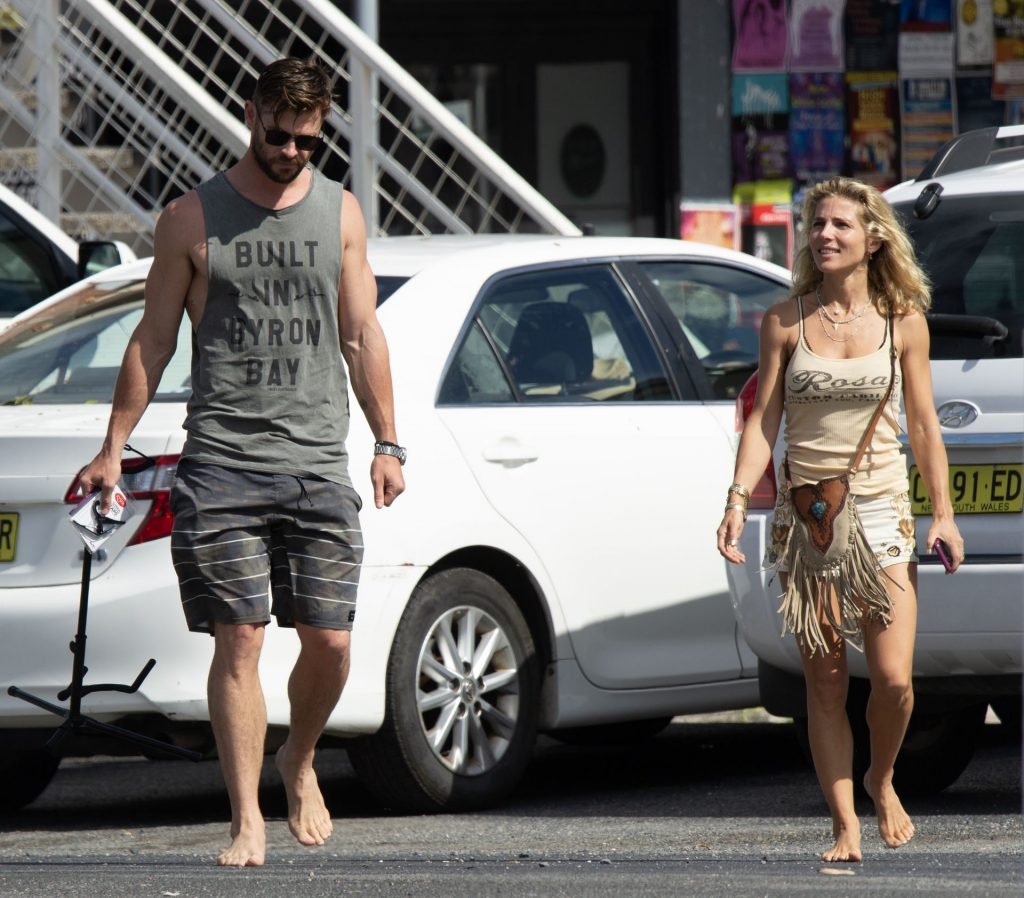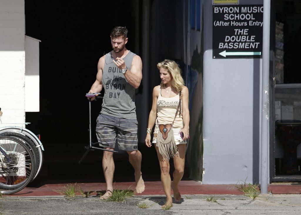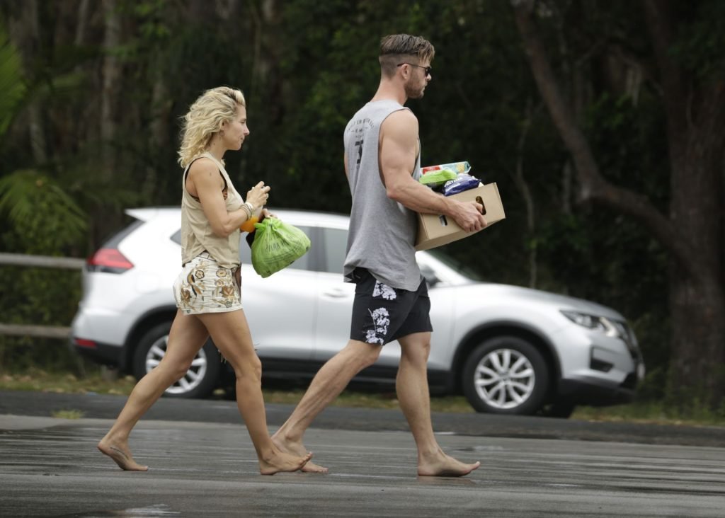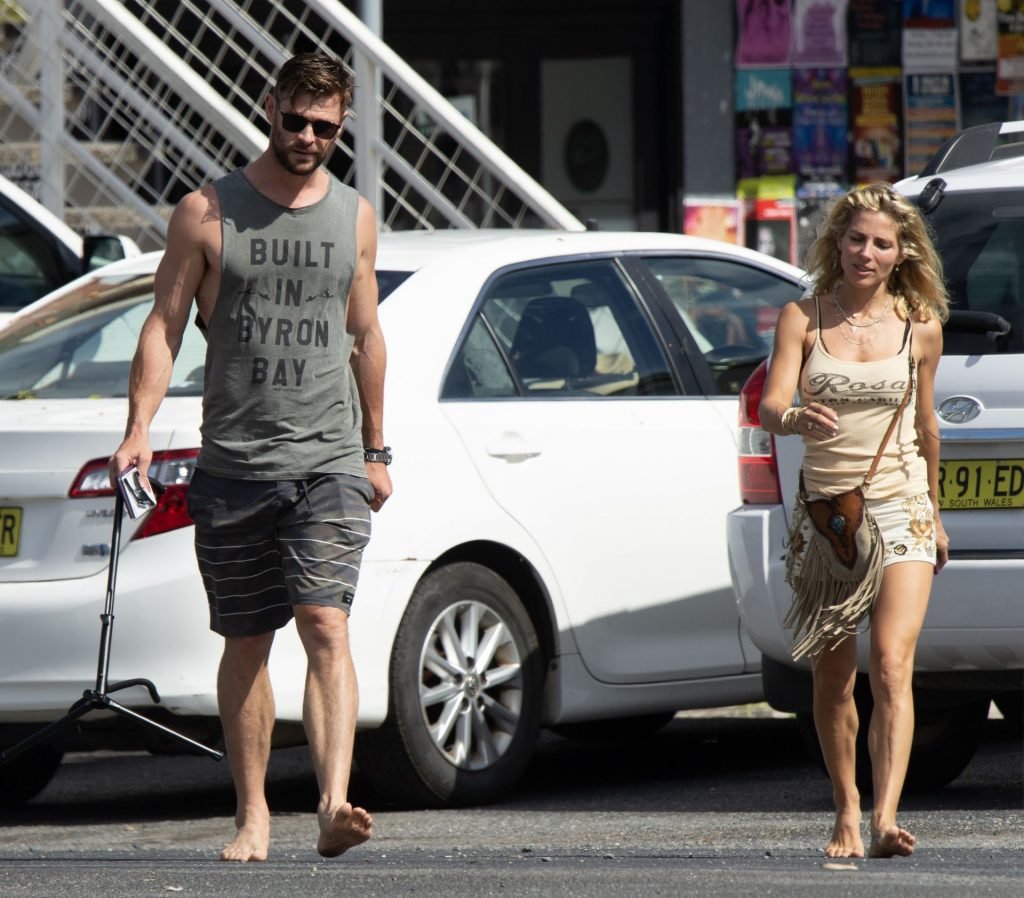 Chris Hemsworth sfoggia un nuovo taglio di capelli mentre fa la spesa con sua moglie, Elsa Pataky a Byron Bay, 02/06/2019.