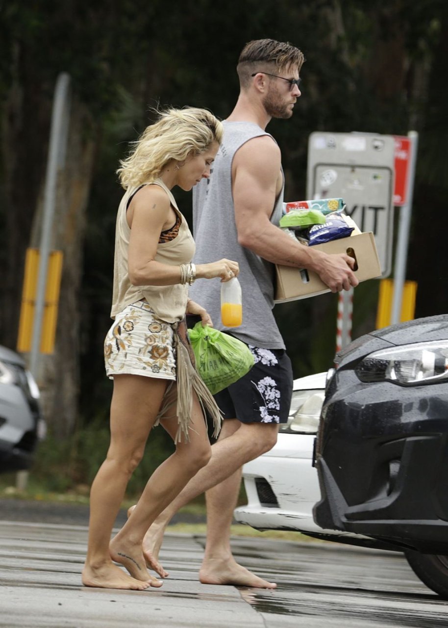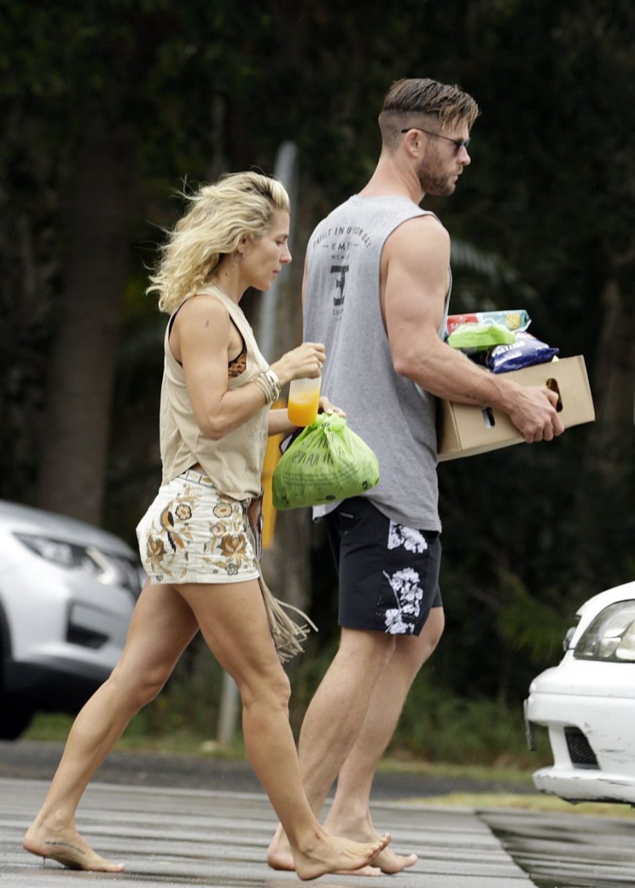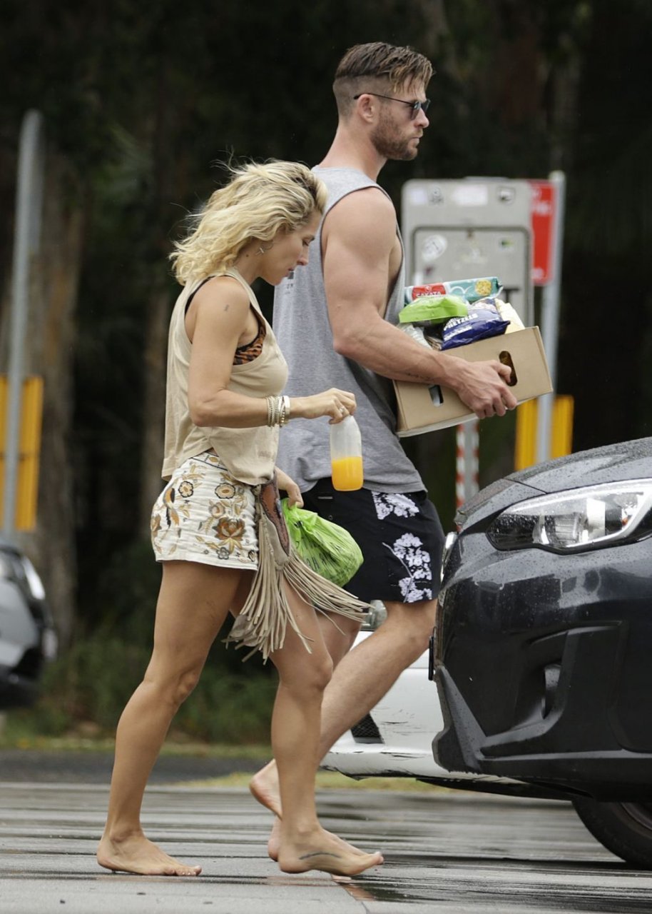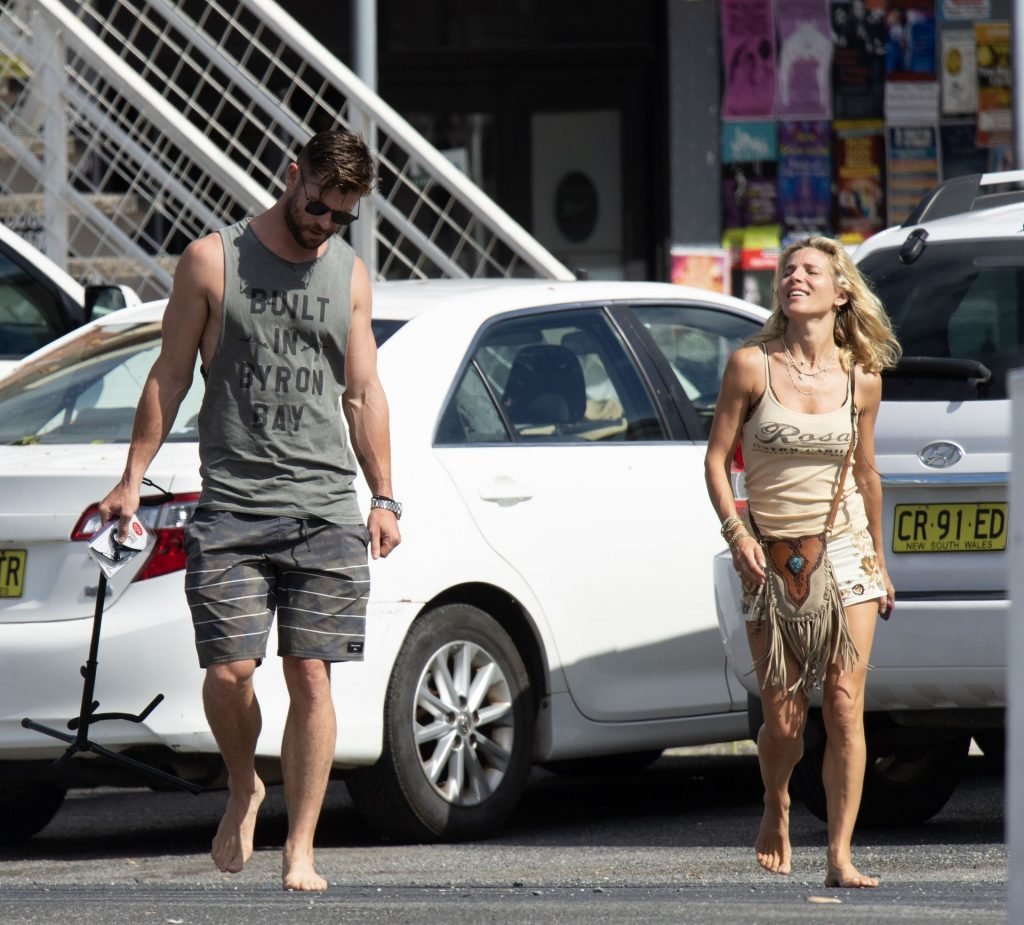 Chris Hemsworth sfoggia un nuovo taglio di capelli mentre fa la spesa con sua moglie, Elsa Pataky a Byron Bay, 02/06/2019.