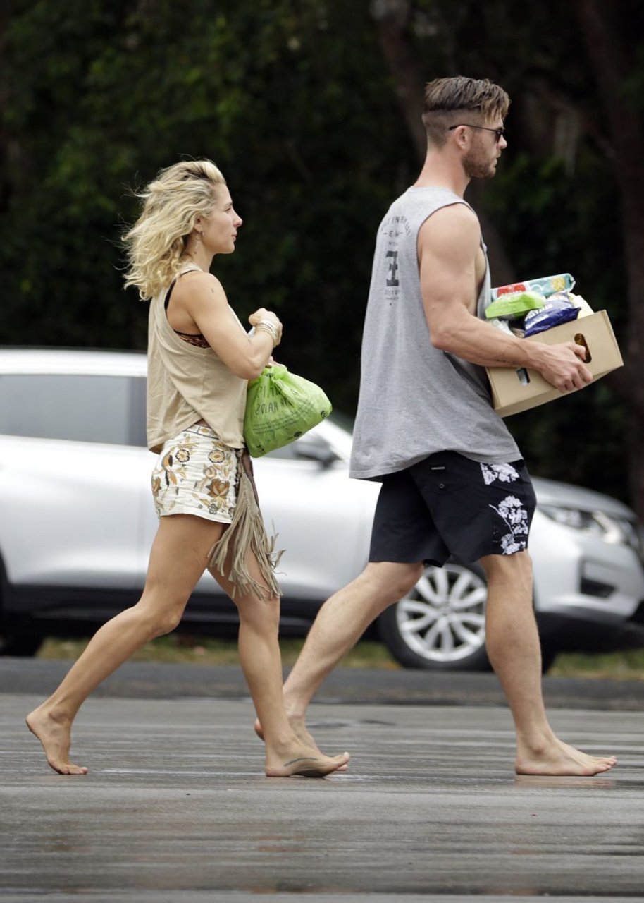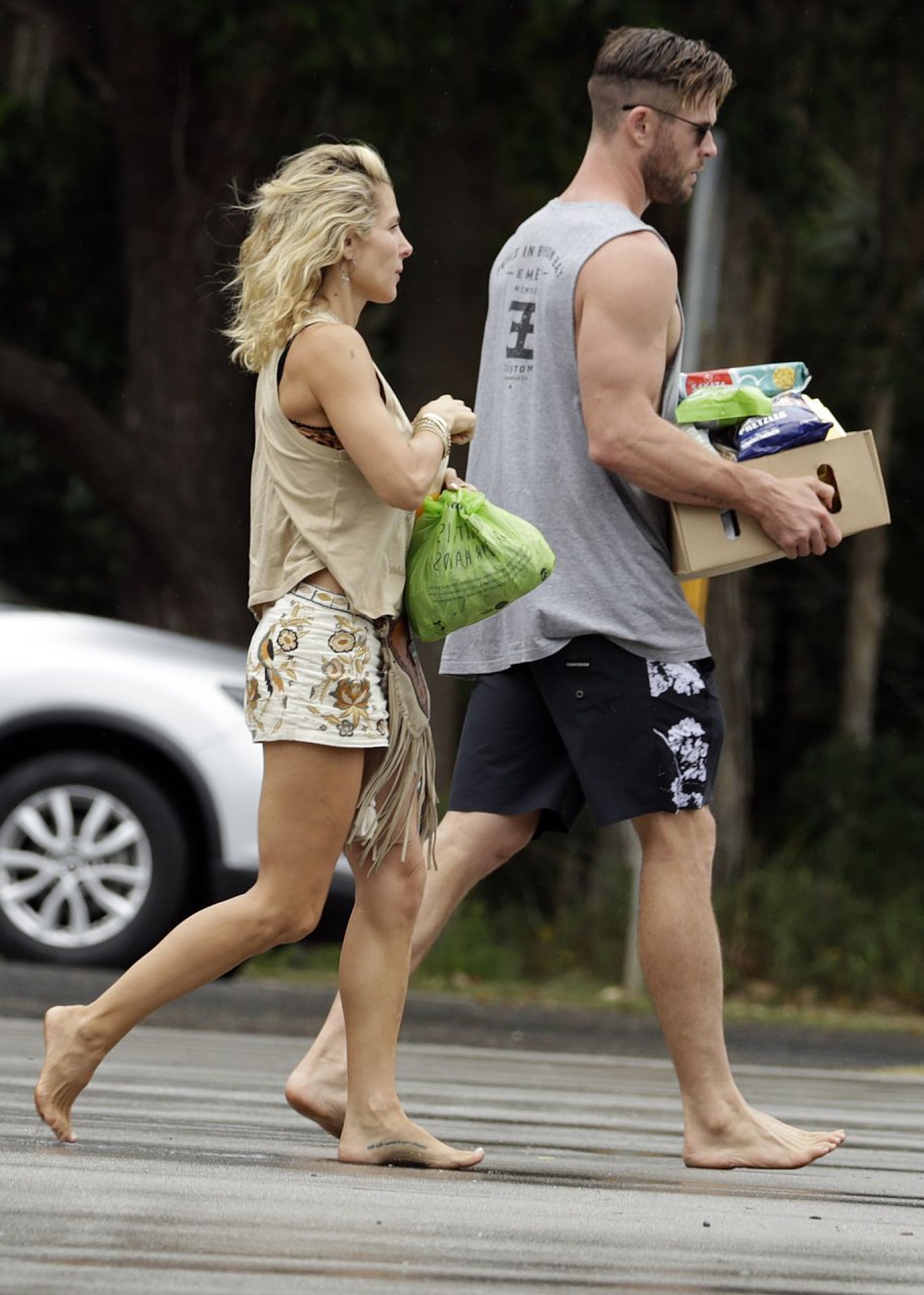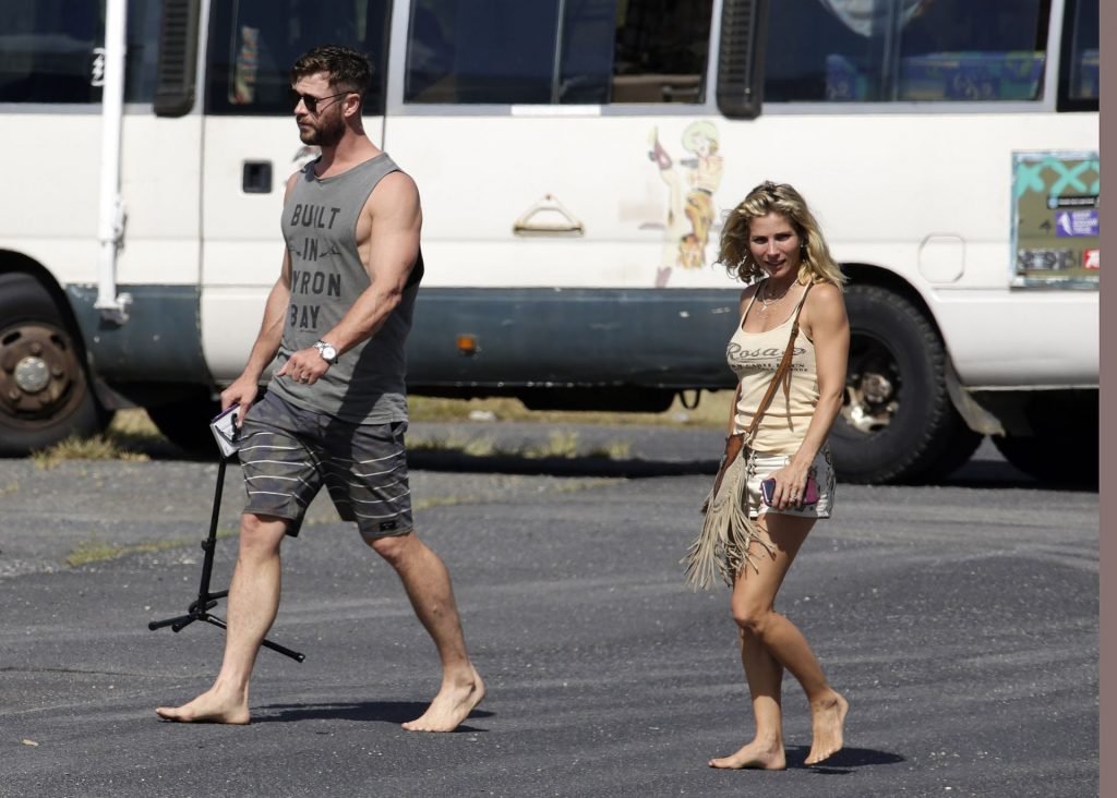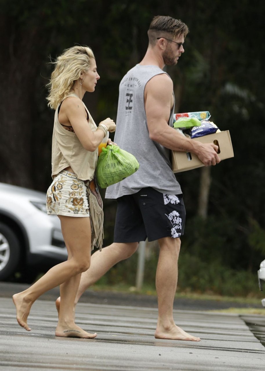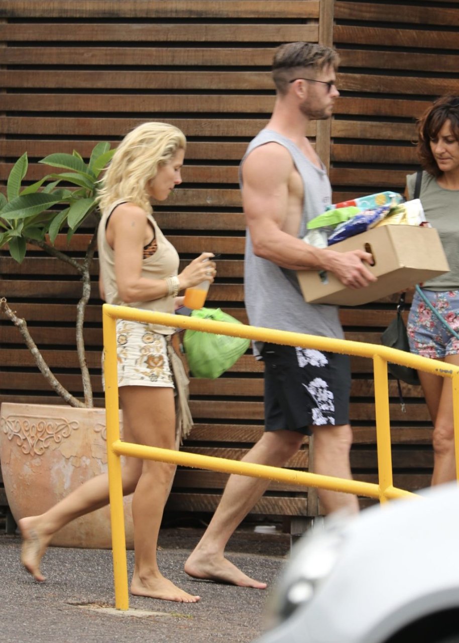 Chris Hemsworth sfoggia un nuovo taglio di capelli mentre fa la spesa con sua moglie, Elsa Pataky a Byron Bay, 02/06/2019.