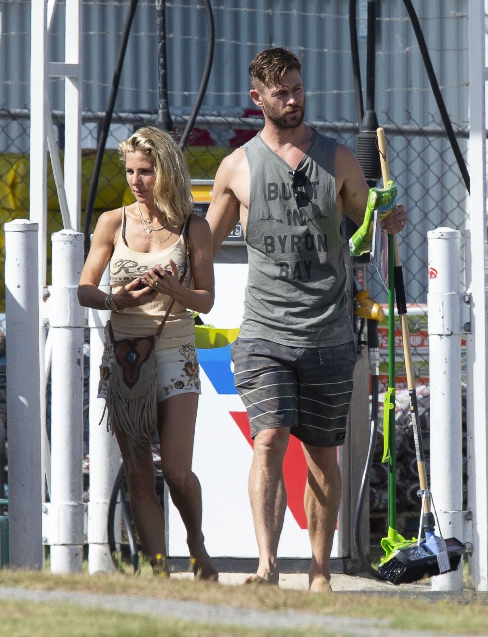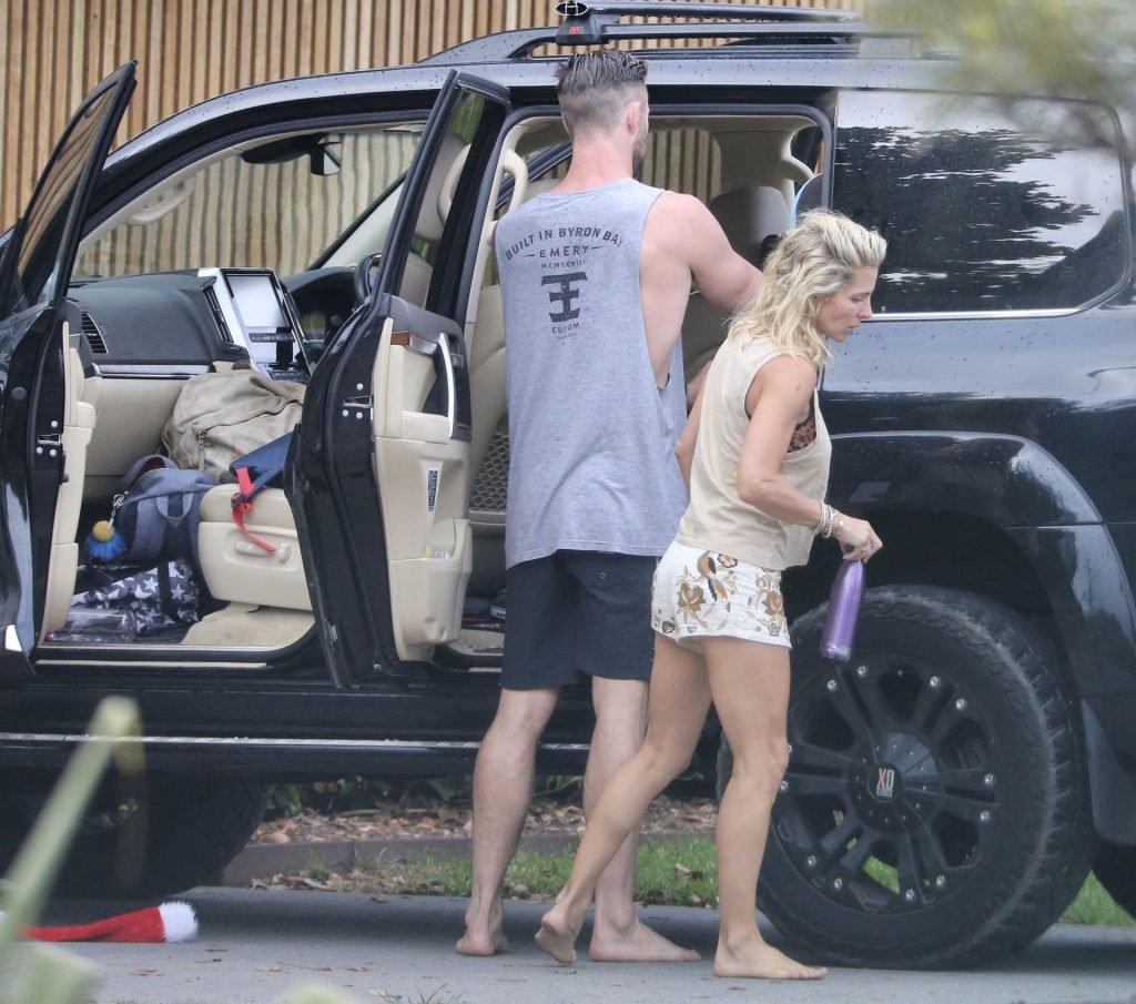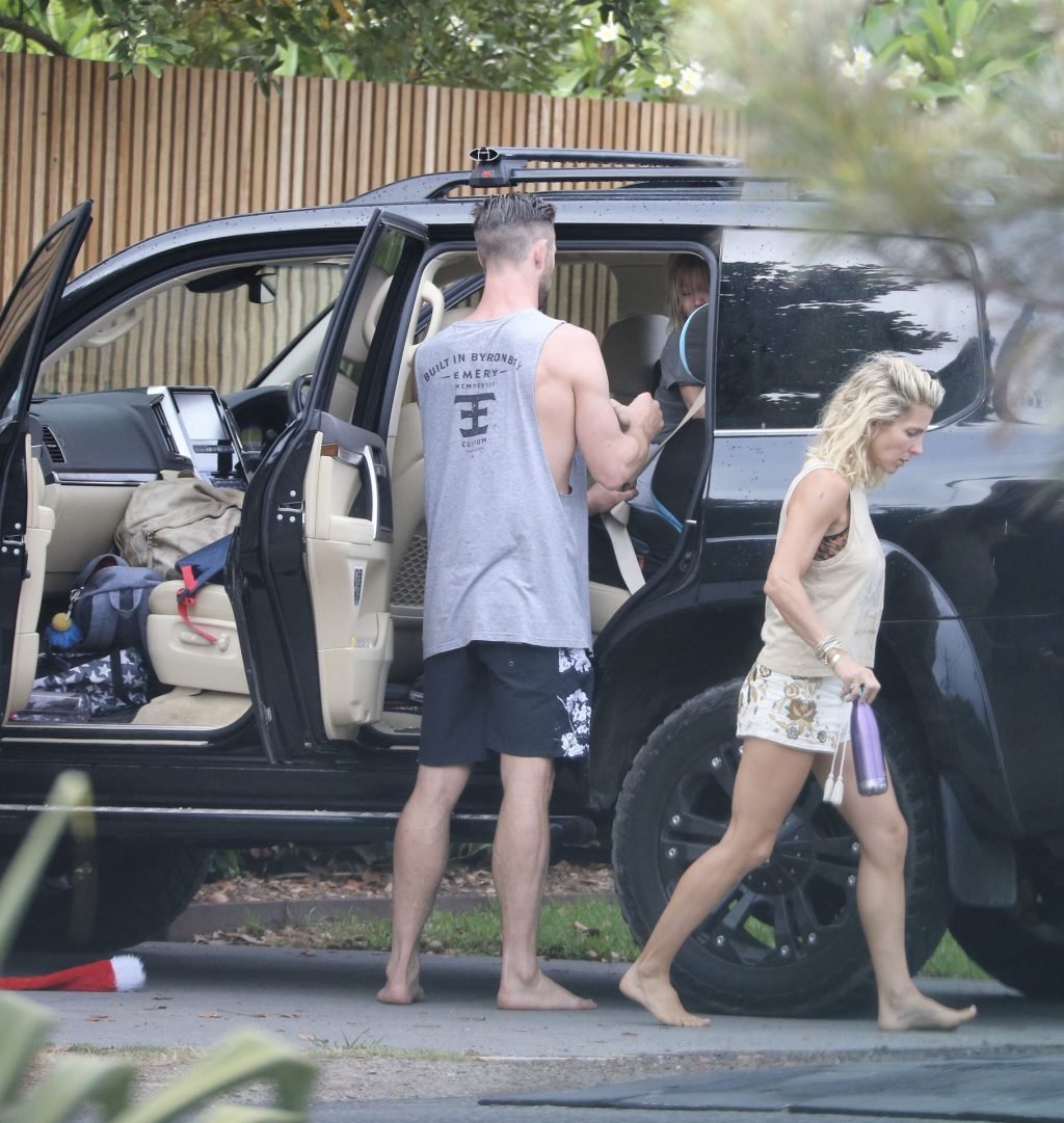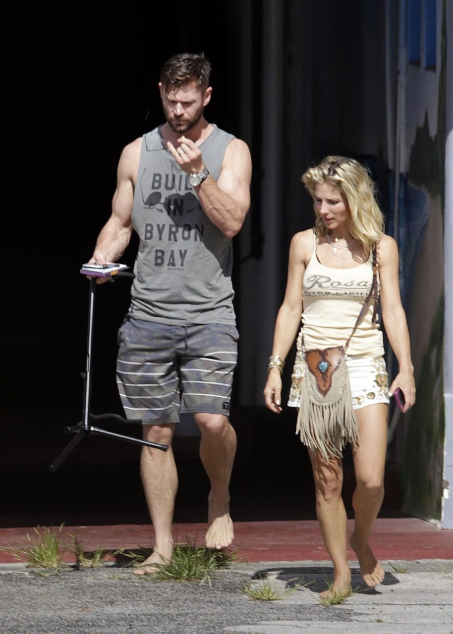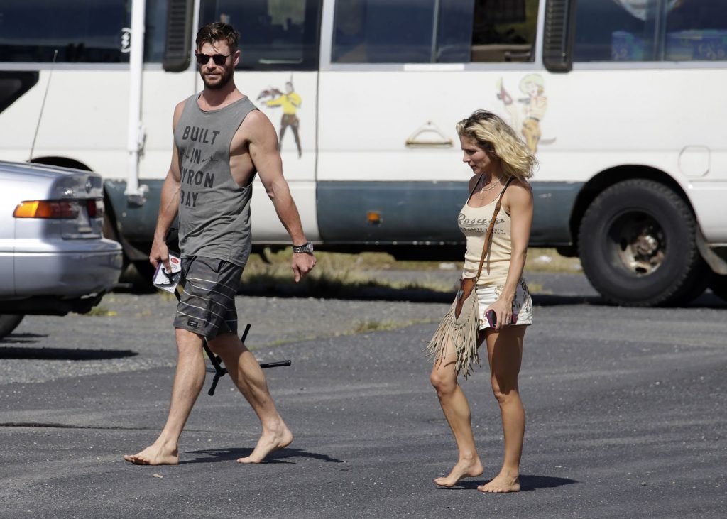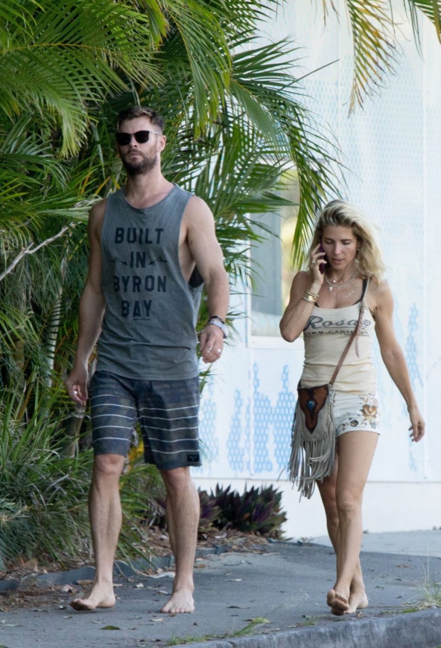 Chris Hemsworth sfoggia un nuovo taglio di capelli mentre fa la spesa con sua moglie, Elsa Pataky a Byron Bay, 02/06/2019.