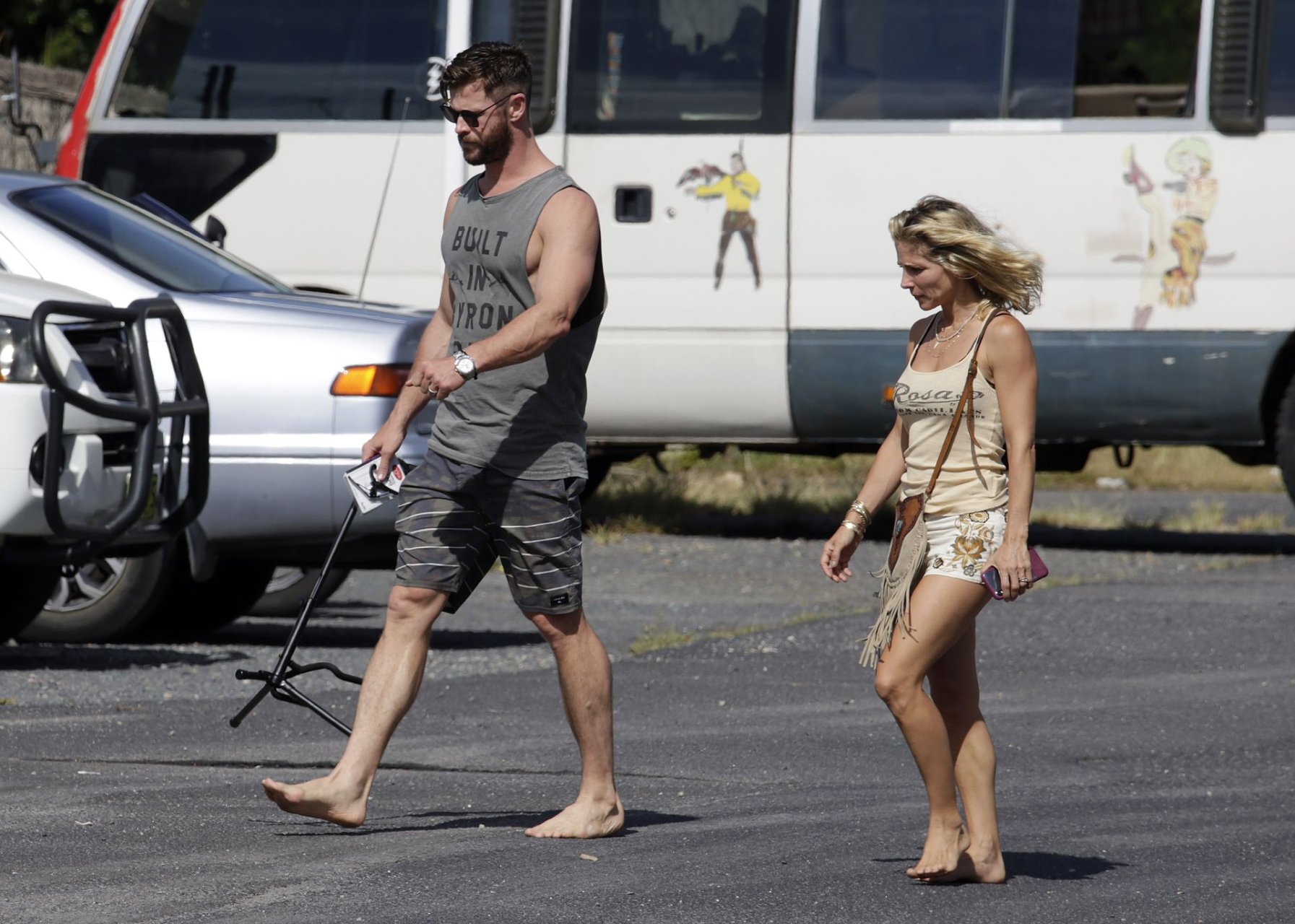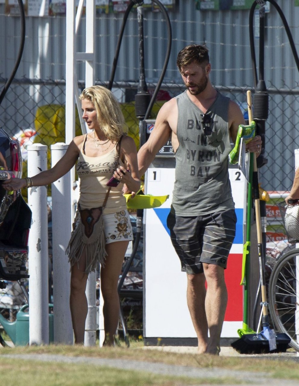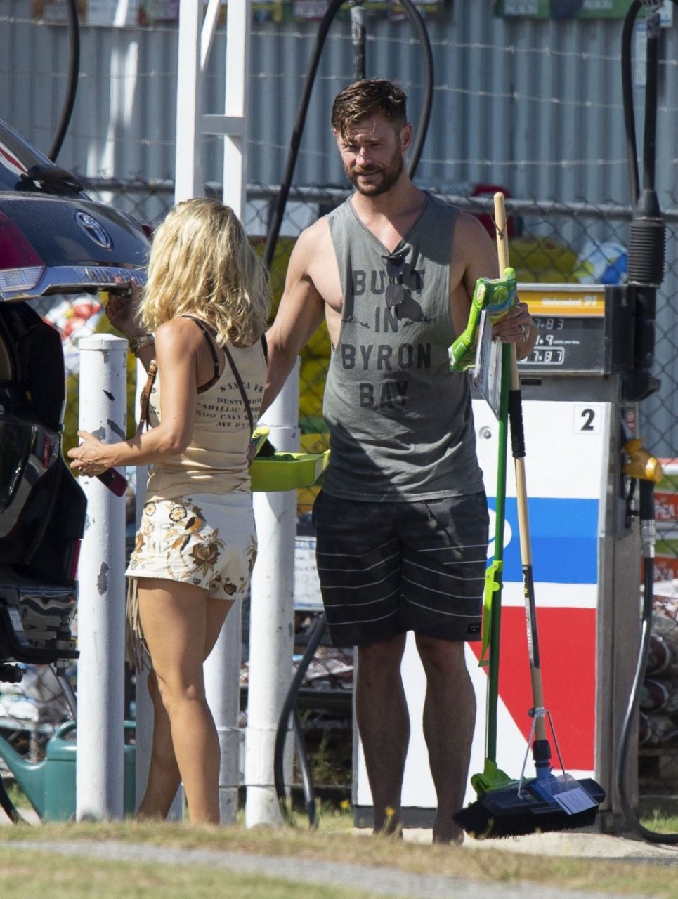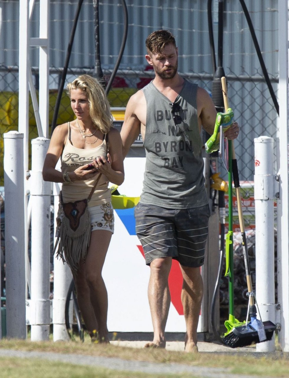 Chris Hemsworth sfoggia un nuovo taglio di capelli mentre fa la spesa con sua moglie, Elsa Pataky a Byron Bay, 02/06/2019.