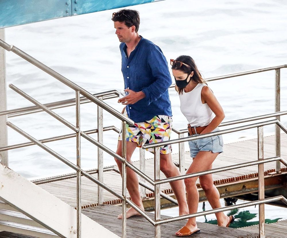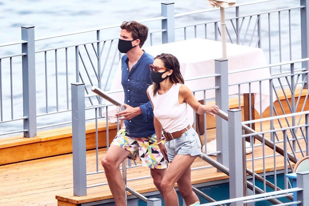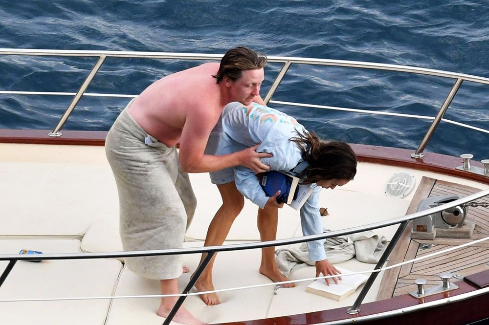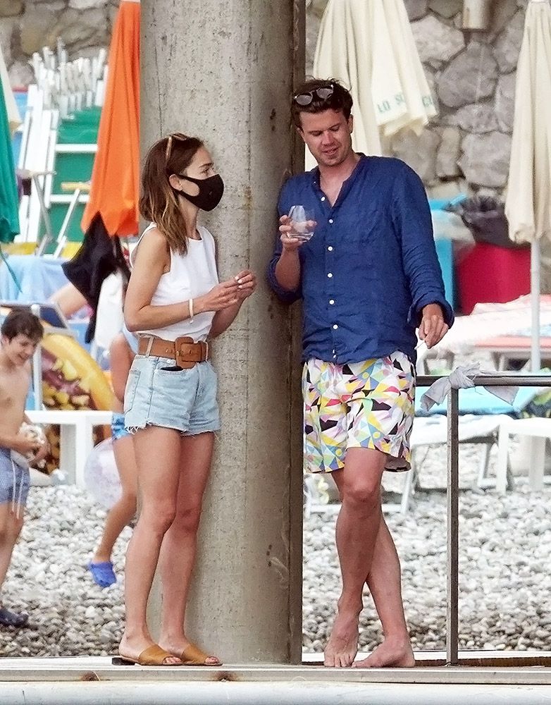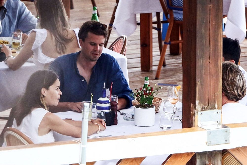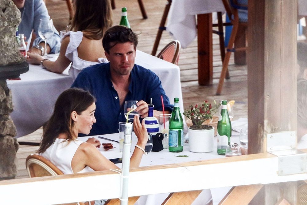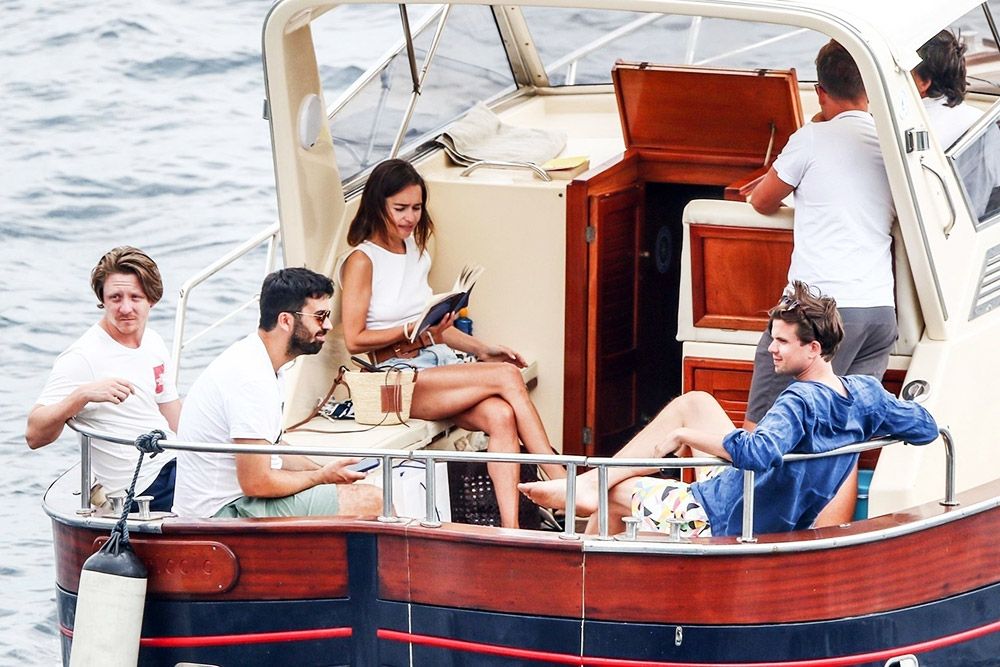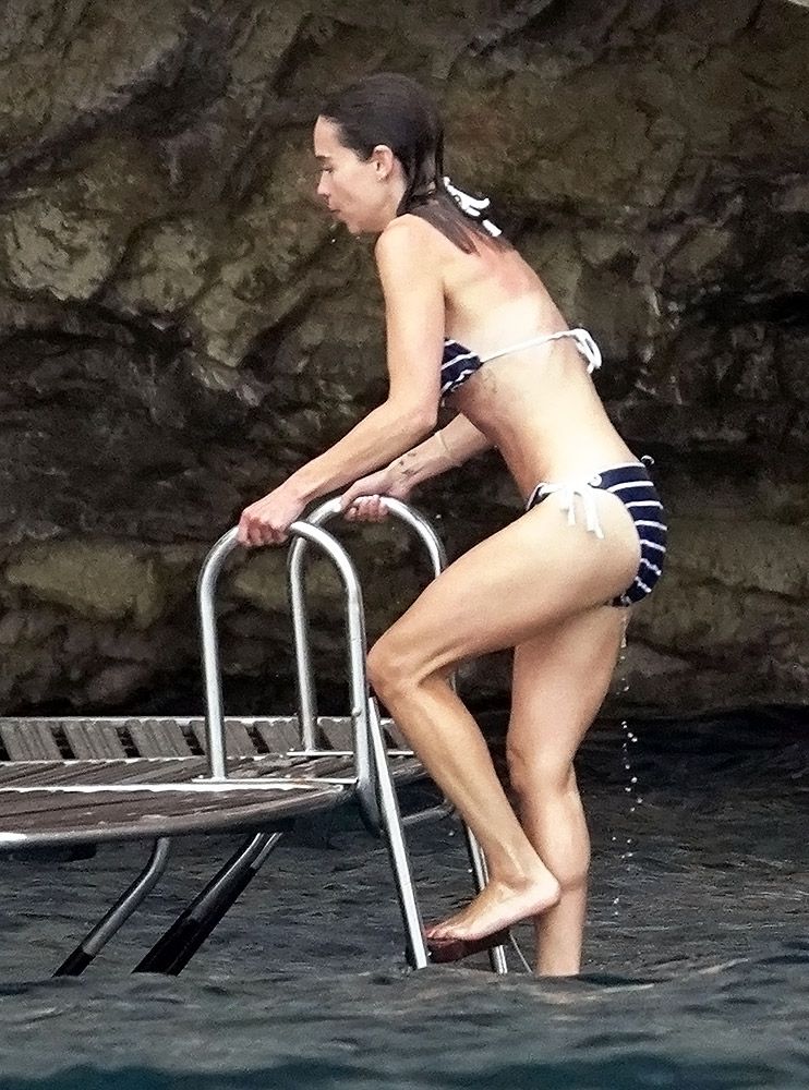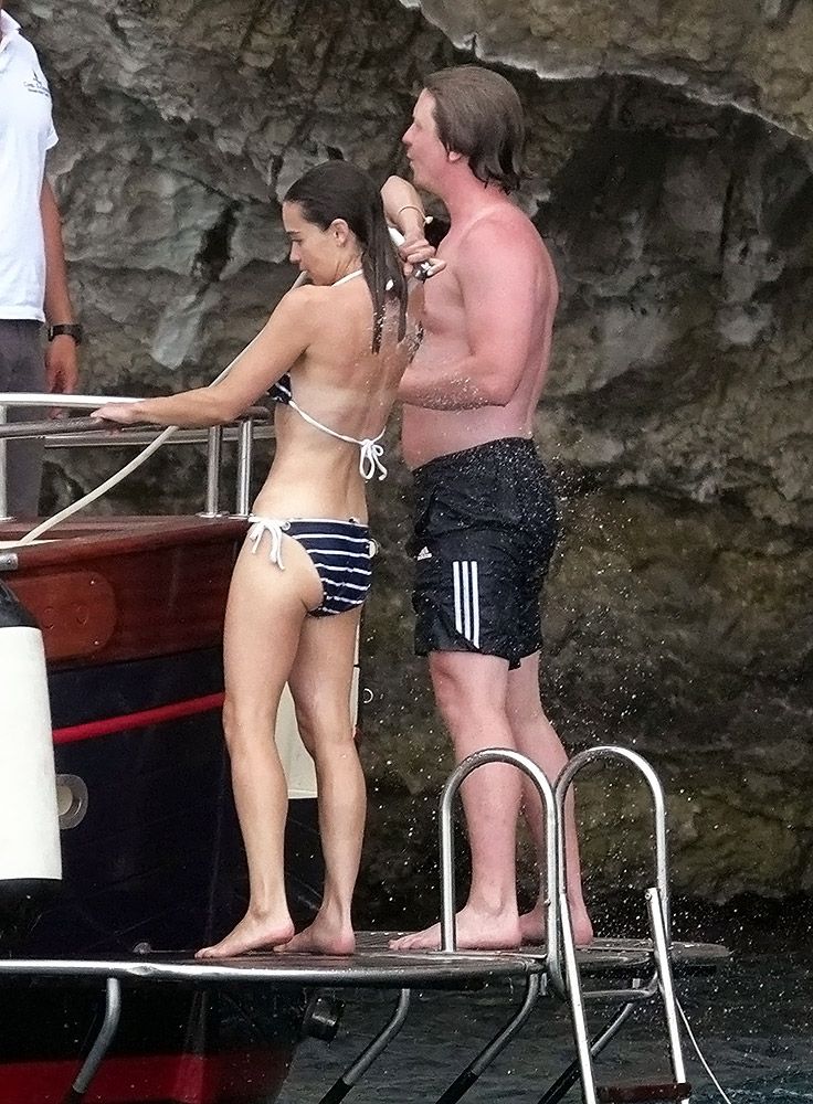 The actress Emilia Clarke is seen with her friends during the summer holiday in Italy. The English beau enjoyed a boat trip with the male friends and went for a swim in a striped bikini. The group visited some caves while out on their boat enjoying the summer in Italy! Emilia Clarke wore a sexy bikini and showed a lot of skin!