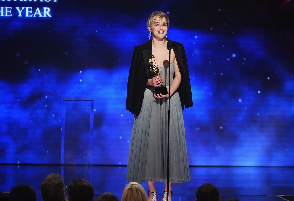 Emilia Clarke partecipa ai British Academy Britannia Awards 2018 a Beverly Hills, 26/10/2018. A questo evento, l’attrice di 32 anni è apparsa con un semplice vestito azzurro chiaro.