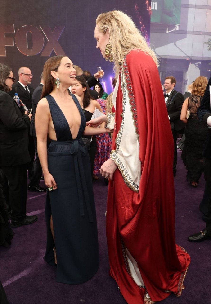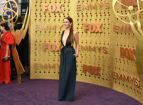 Questo tappeto degli Emmy 2019 è speciale per Emilia. L’attrice è presente per l’ultima volta ai prestigiosi premi. Un evento storico richiede un abito iconico! Emilia è apparsa con un outfit provocante di Valentino Haute Couture, mostrando il suo seno naturale a tutti gli ospiti.