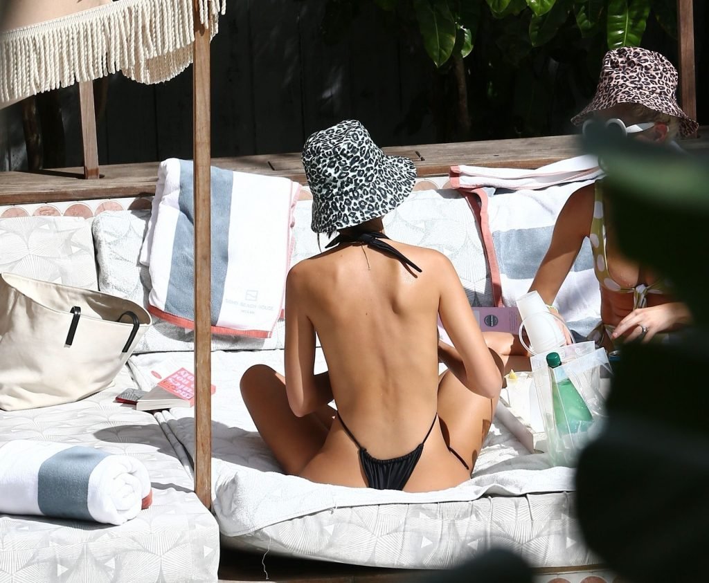 Emily Ratajkowski non lascia molto all’immaginazione mentre si tuffa in un monokini molto rivelatore. Emily è vista con un’amica a bordo piscina durante una vacanza a Miami. Emily e la sua amica indossano cappelli a secchiello con stampa leopardata della linea di abbigliamento di Emily, Inamorata.