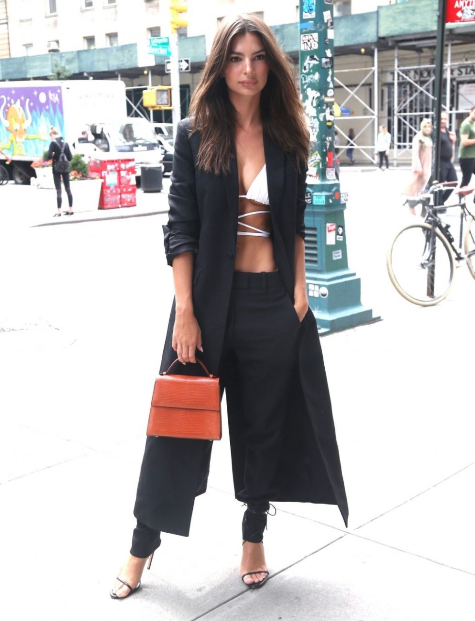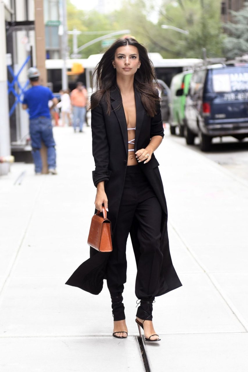 Modella/attrice Emily Ratajkowski appare oggi particolarmente chic con un trench lungo sopra un top quasi inesistente che mostra il suo ventre, abbinato a pantaloni neri e tacchi durante una passeggiata a New York, 09/05/2019.