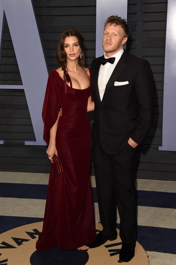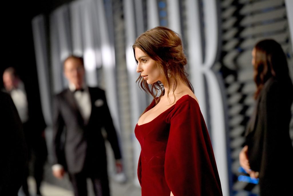 Modella e attrice Emily Ratajkowski mostra il suo décolleté alla Vanity Fair Oscar Party 2018 a Beverly Hills, 03/04/2018.