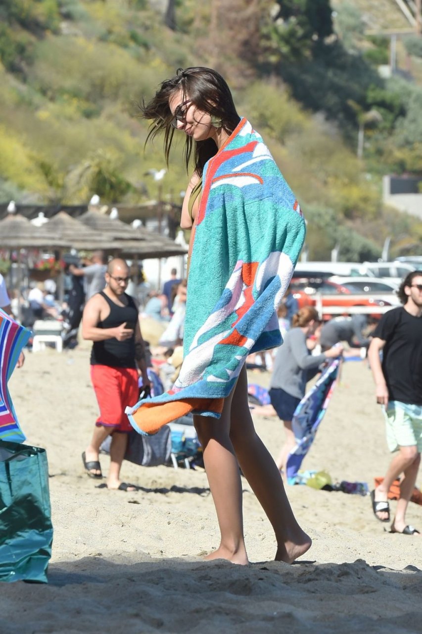 Emily Ratajkowski si gode la spiaggia con la sua amica a Malibu, 23/04/2019. La modella di 27 anni indossava un bikini verde della sua marca Inamorata. La coppia ha trascorso 3 ore prendendo il sole e a un certo punto, un giovane si è fermato solo per fare due chiacchiere con Emily e la sua amica.