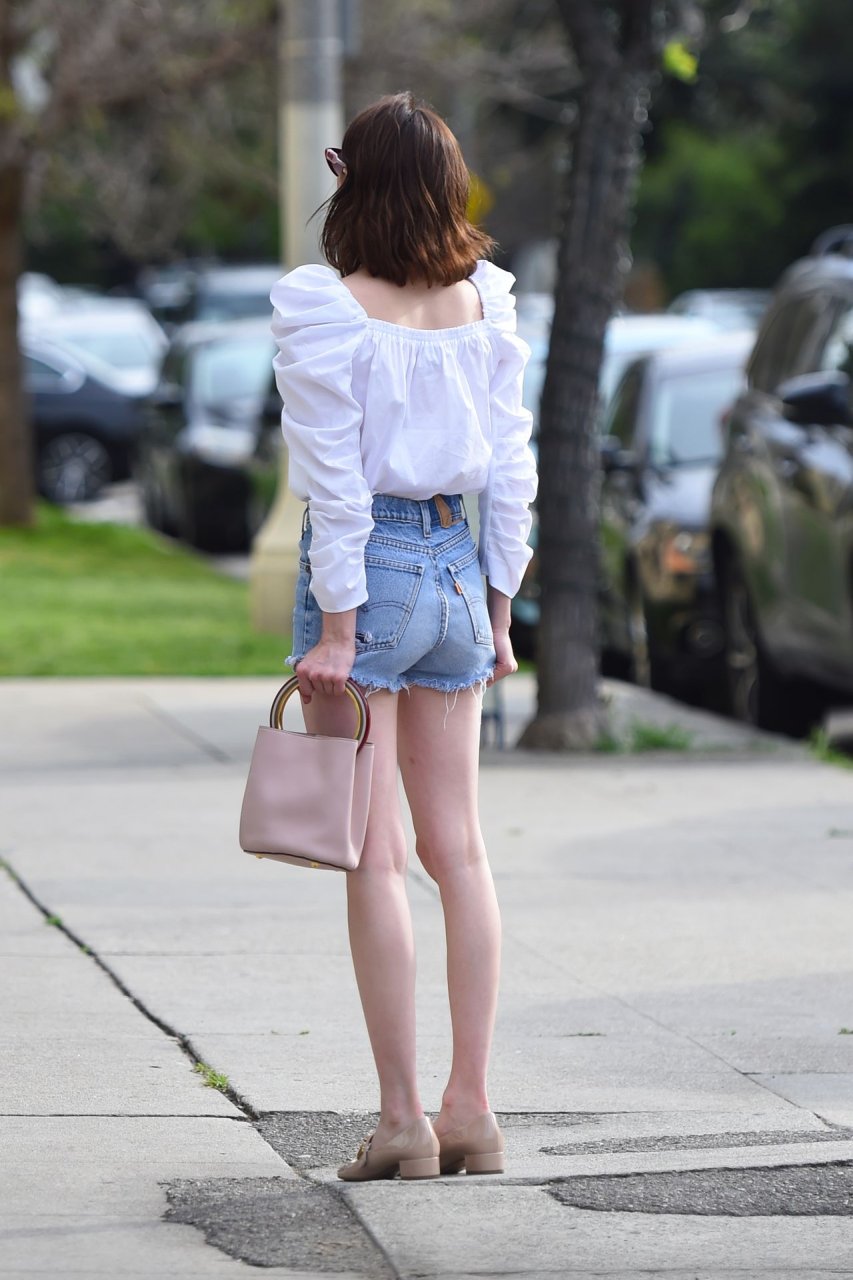 Attrice Emma Roberts (28) è stata vista per strada, indossando pantaloncini di jeans e mostrando le sue gambe sexy ai fotografi – Los Angeles, 14/04/2019.