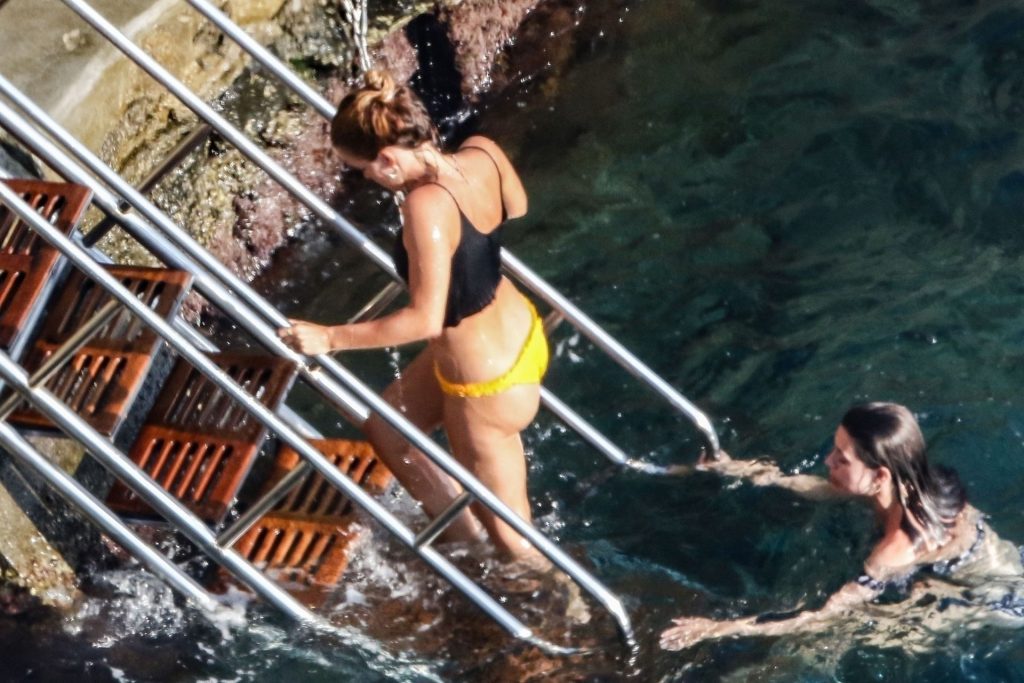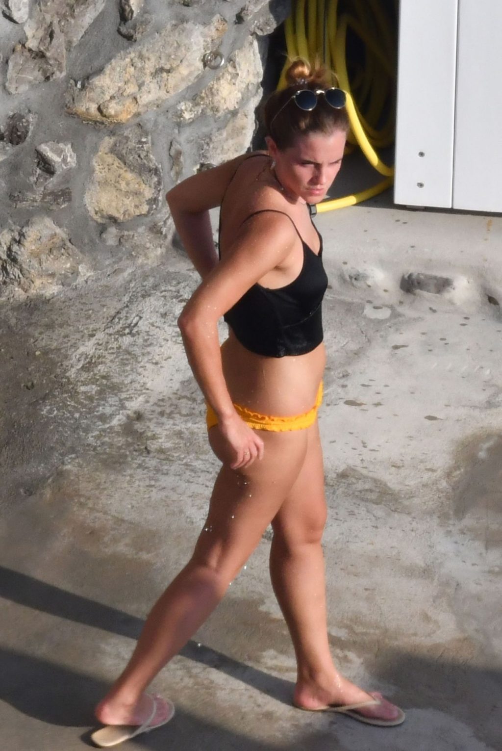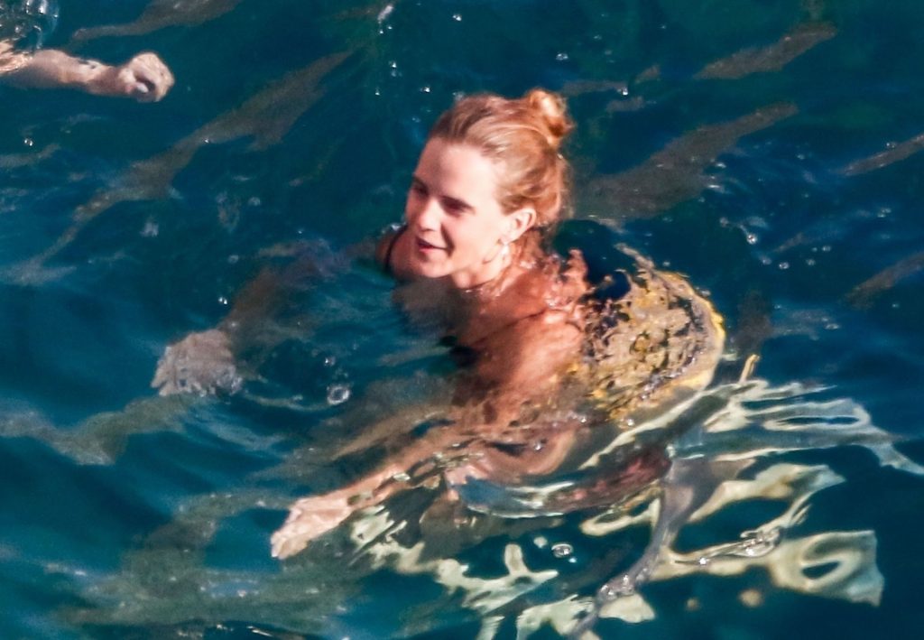 In compagnia di un’amica, l’attrice si è abbronzata con il suo piccolo e succinto outfit mentre si rilassava sul lettino prendisole cercando di rinfrescarsi dal caldo, ma ha incontrato un cane eccitato ma amichevole nell’area della doccia, mentre l’ex star di Harry Potter aspettava pazientemente che il cane lasciasse la scena.