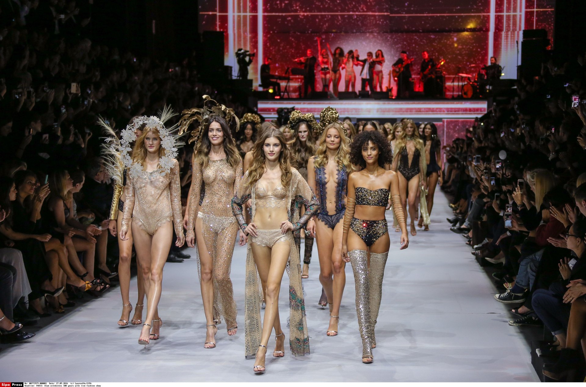 Eniko Mihalik sfila durante lo spettacolo Etam come parte della Paris Fashion Week Womenswear Primavera/Estate 2017 a Parigi, Francia, 27/09/2016. Eniko Mihalik è una modella ungherese. Età 29 (11 maggio 1987). Altezza 179 cm.