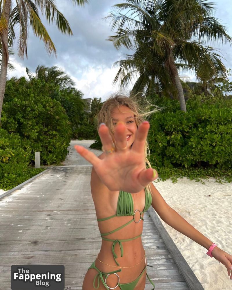 La collezione di Ergi Bardhollari comprende foto bollenti e seducenti che mostrano il suo seno nudo, la scollatura senza reggiseno, un sedere mozzafiato, gambe da urlo e un corpo da modella in bikini a perizoma e lingerie.