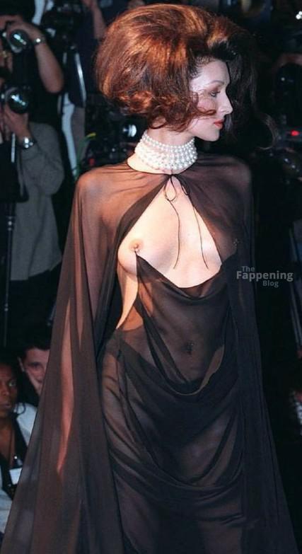 Dai un’occhiata ai seni nudi di Erica Van Briel alla sfilata Mugler Couture Primavera 1998.