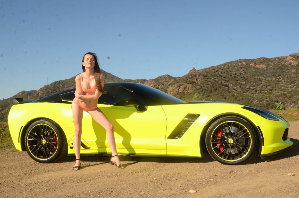 Erika Jordan e Alicia Arden posano in un servizio fotografico con una Corvette C7 Z06 Supercar da $150.000 a Malibu, 13/03/2017.
