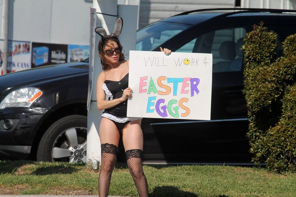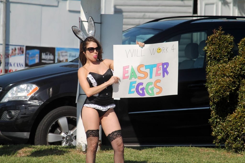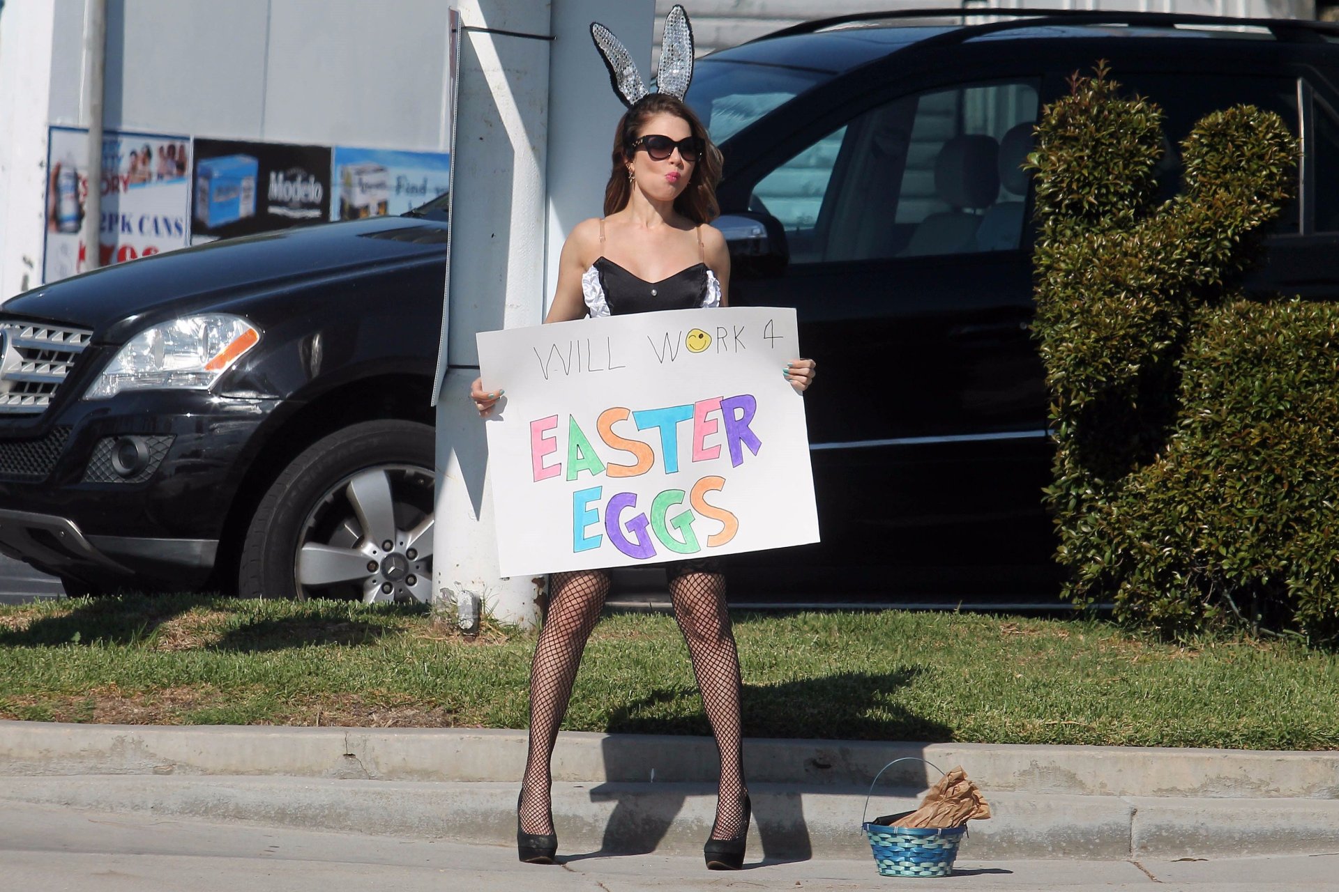 Erika Jordan avvistata mentre girava uno sketch sexy da Coniglietta di Pasqua a Los Angeles, 11/04/2017. Erika Jordan è un’attrice tedesca (Swinging – 2015), wrestler, conduttrice di Playboy TV. Età – 34 anni (nata il 18 maggio 1982).