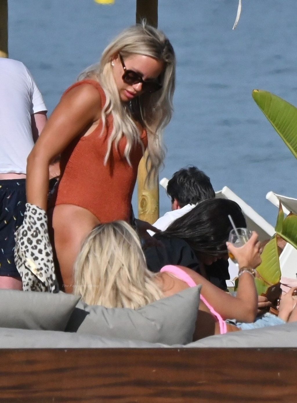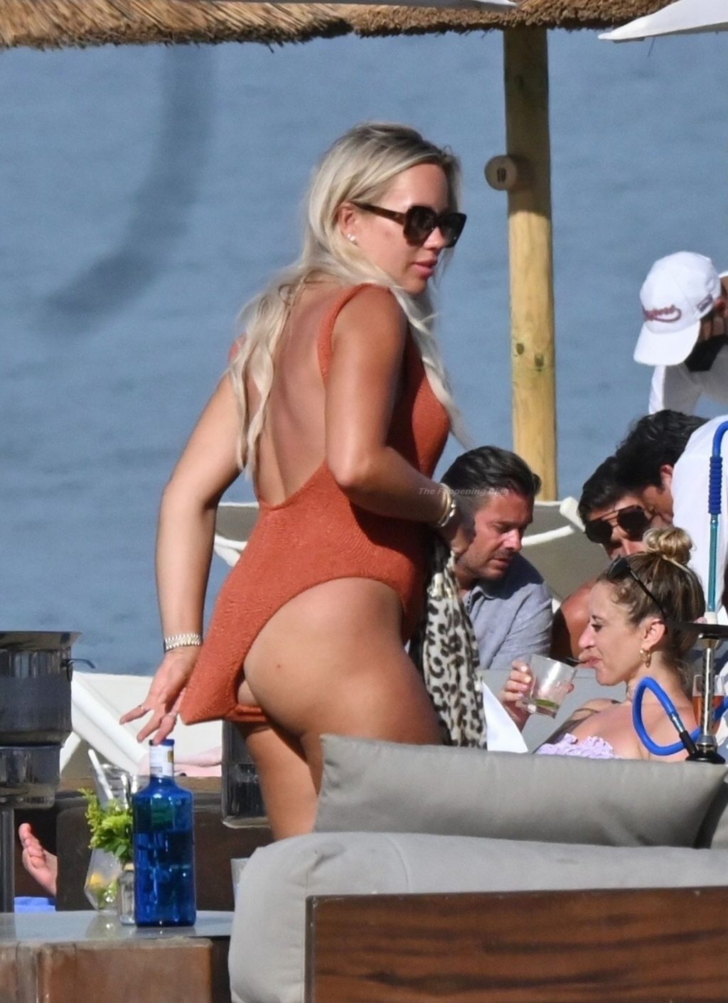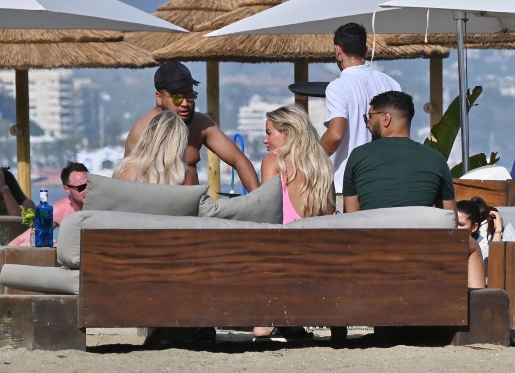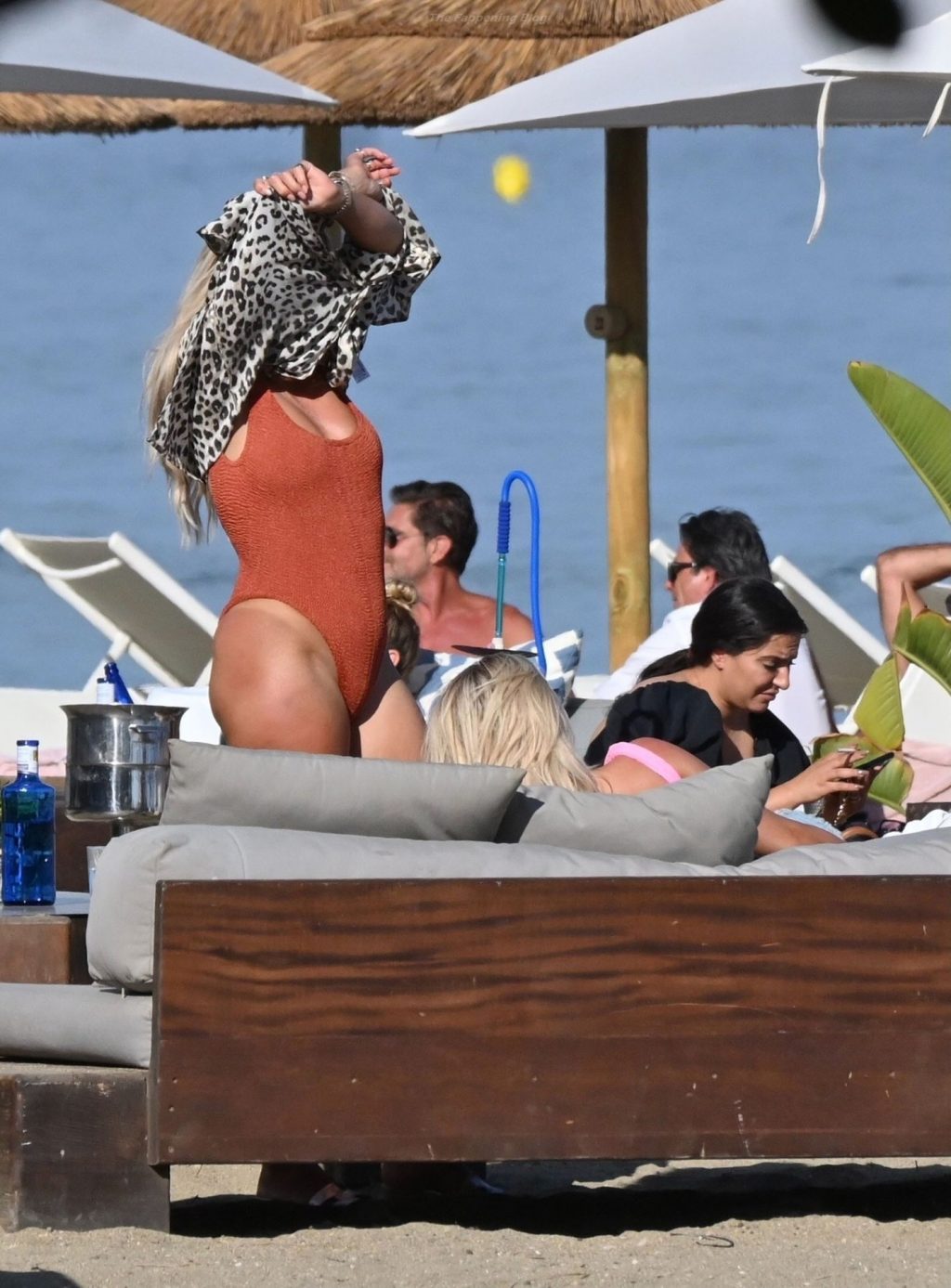 Le sorelle gemelle Esther e Anne Vedder mostrano i loro corpi in costumi da bagno alla moda mentre si divertono bevendo al sole e incontrando nuovi amici a Marbella, 06/06/2021.