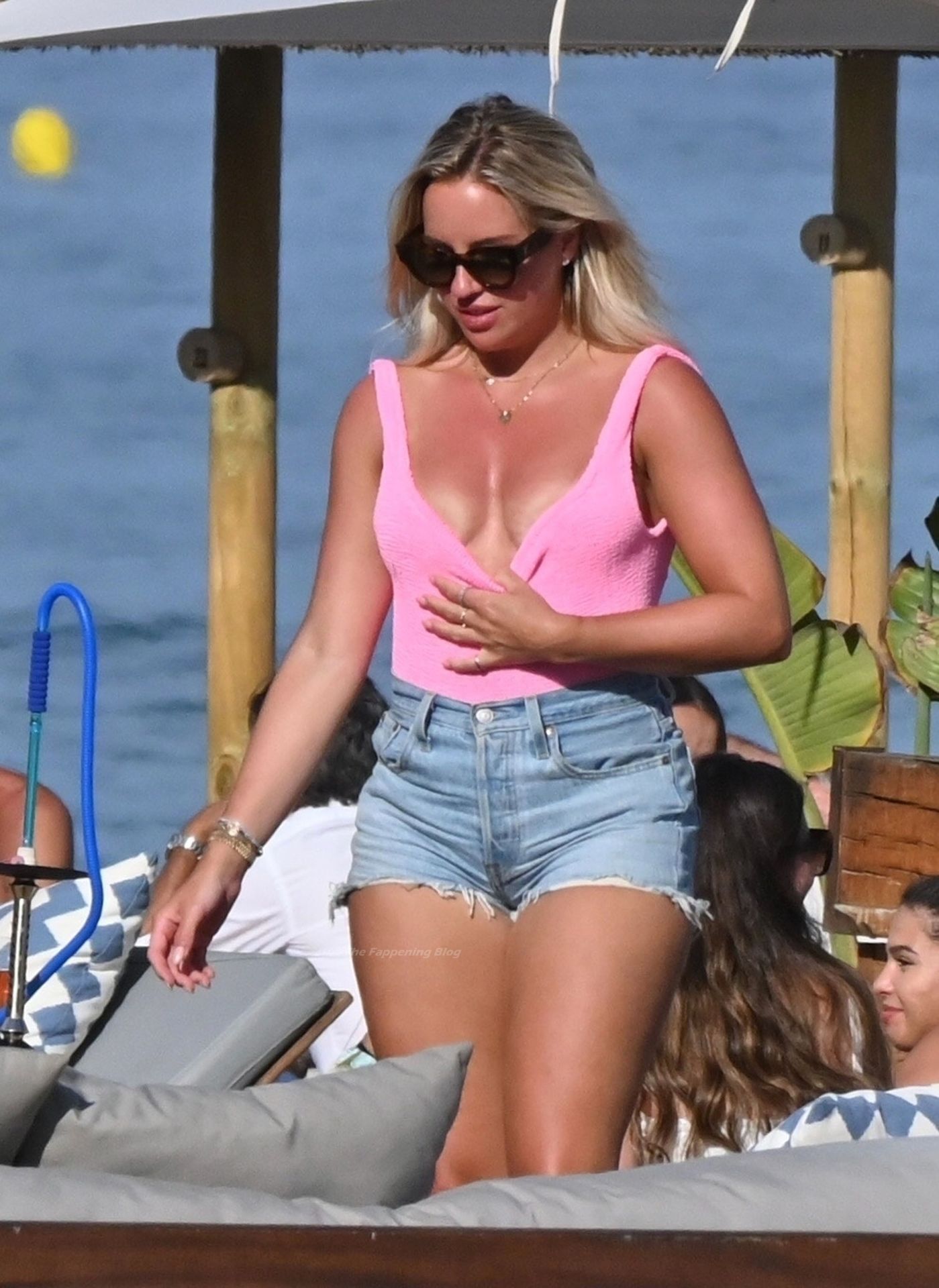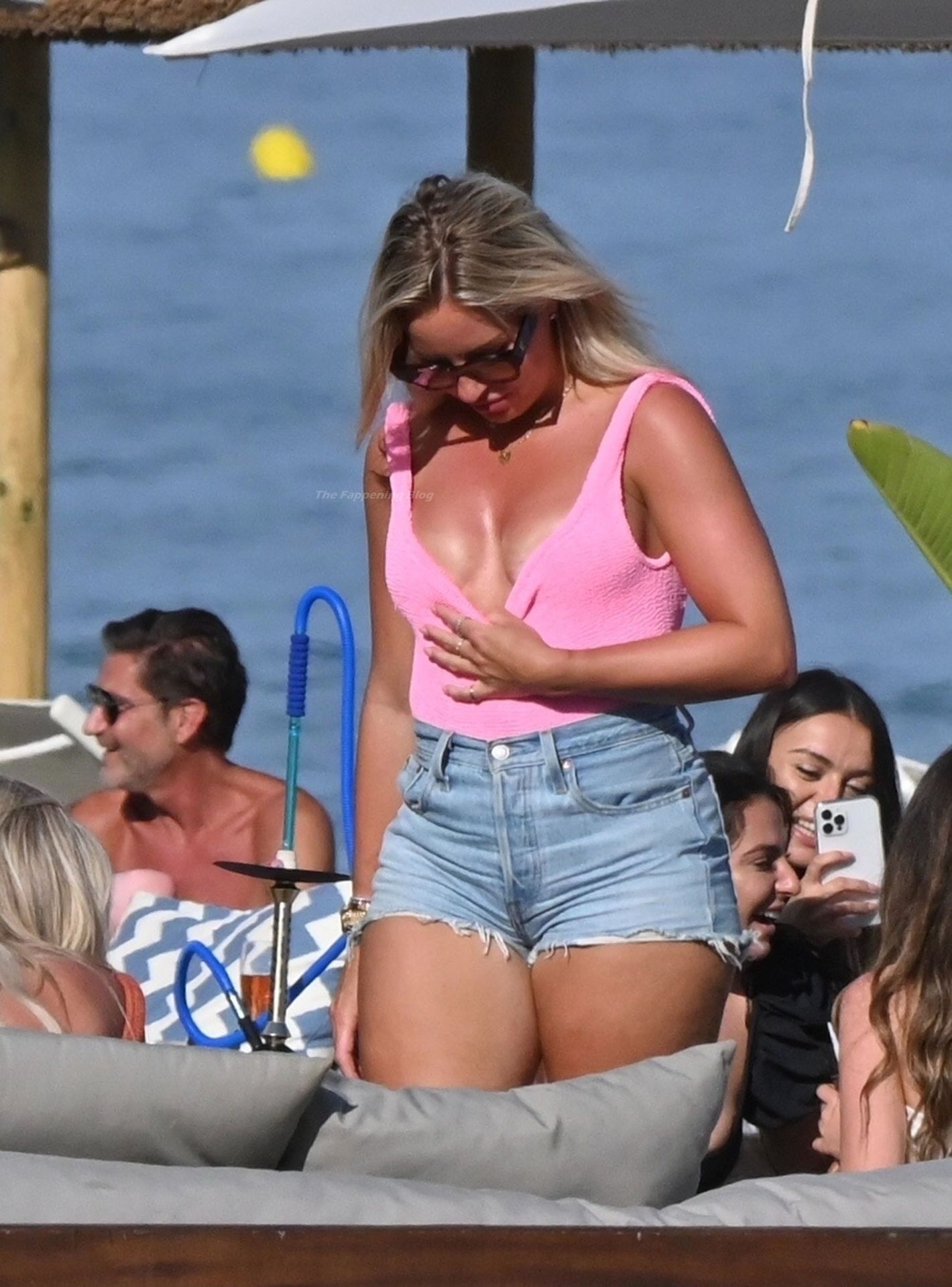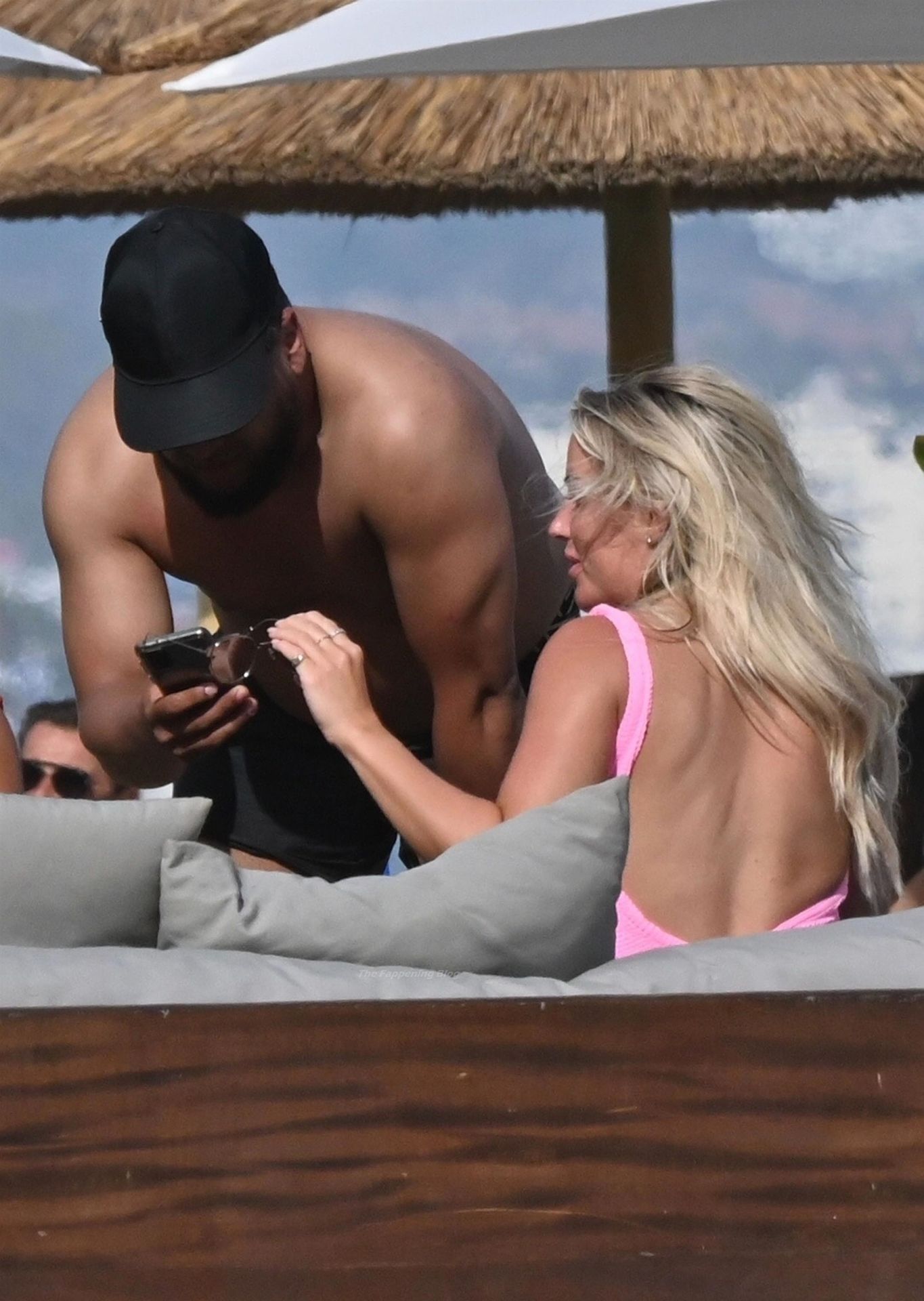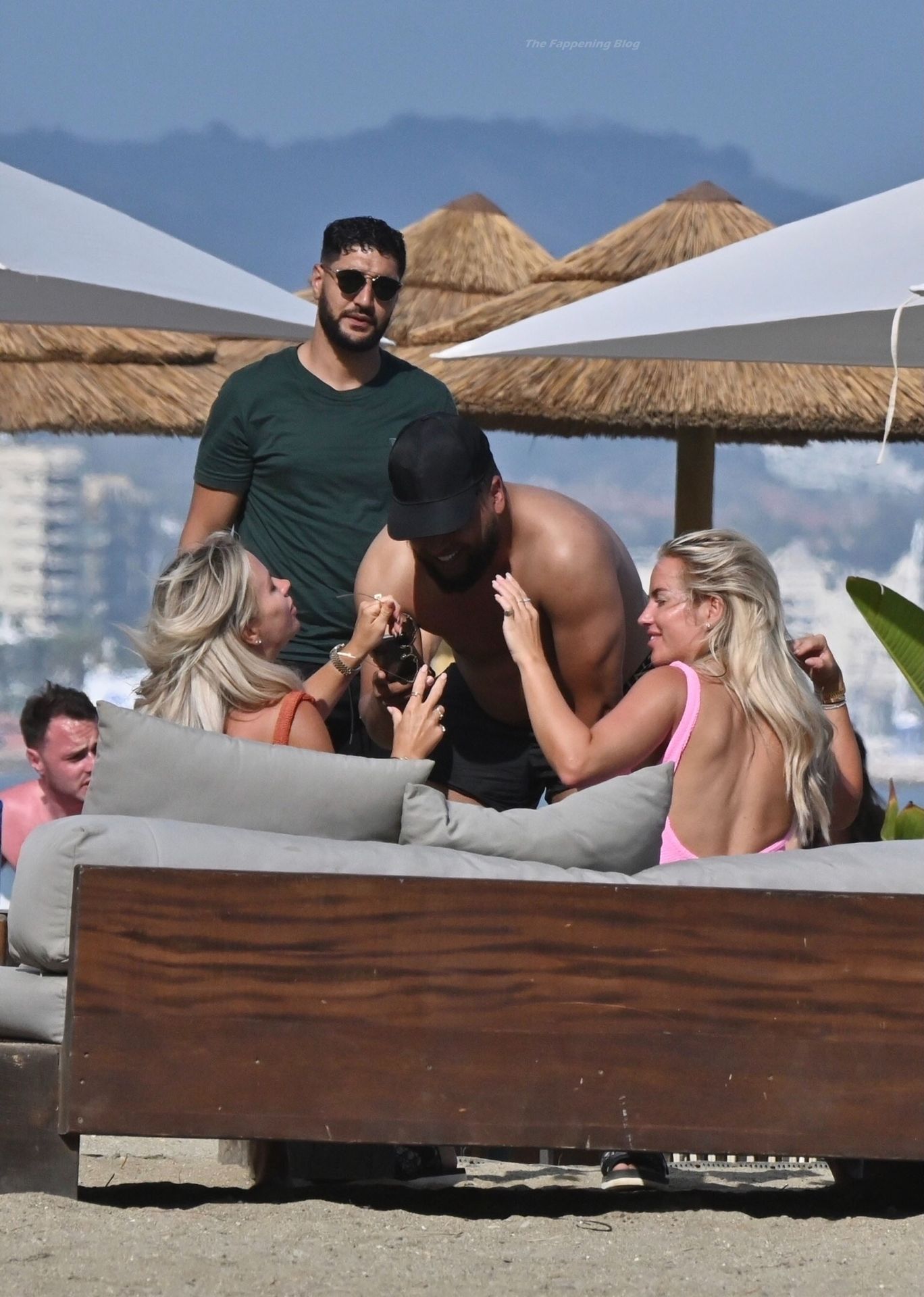Le sorelle gemelle Esther e Anne Vedder mostrano i loro corpi in costumi da bagno alla moda mentre si divertono bevendo al sole e incontrando nuovi amici a Marbella, 06/06/2021.