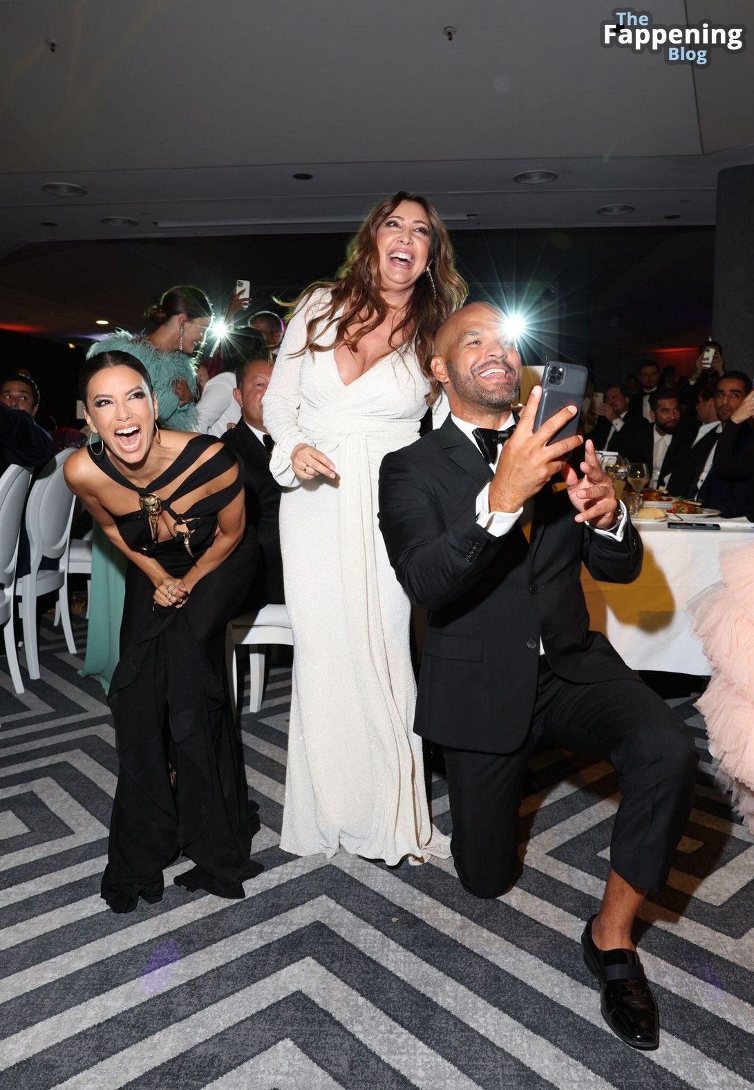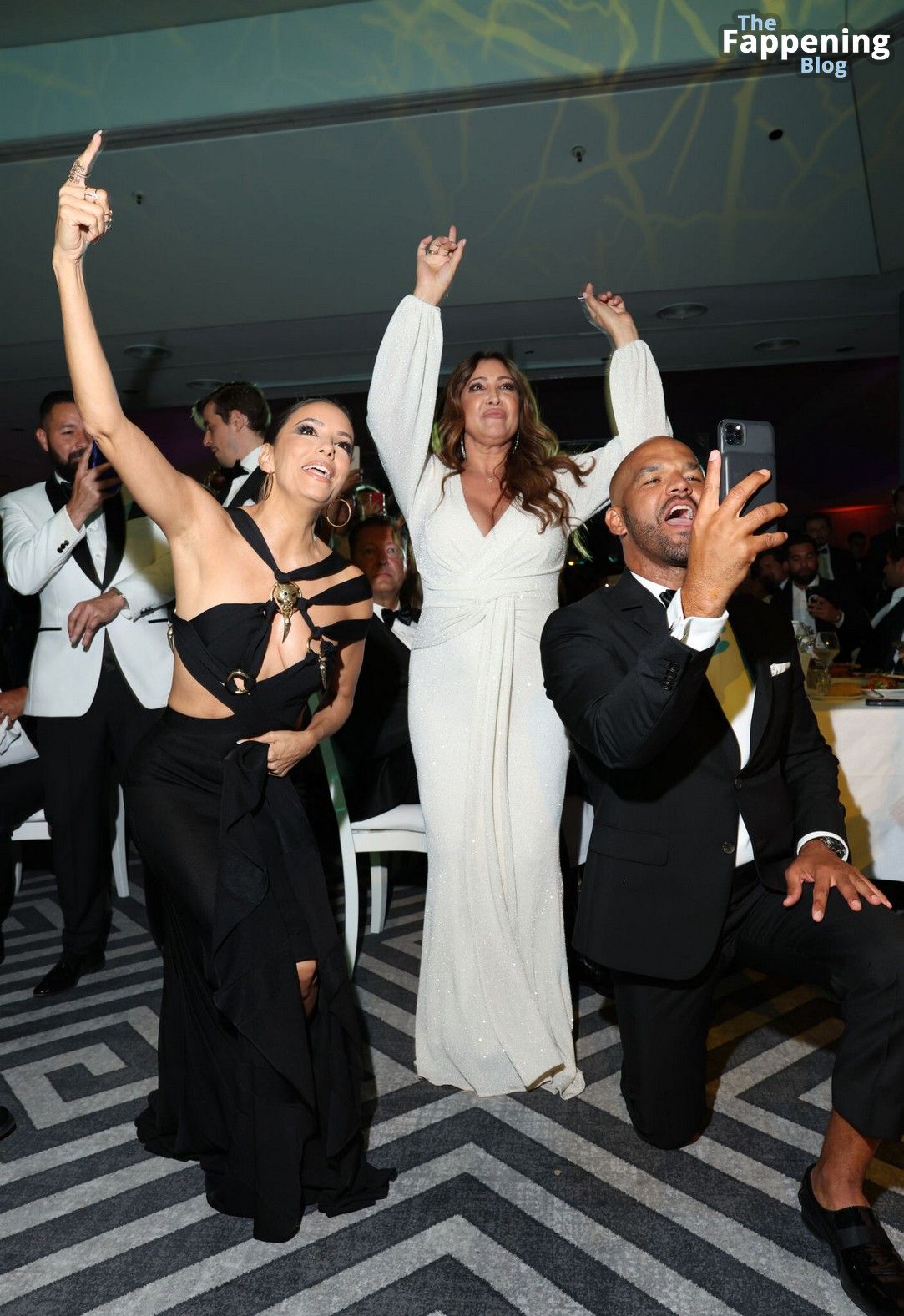 È arrivata con un abito nero con molte aperture, nodi e legacci, creando un’atmosfera giocosa – ha riso tutta la notte e ha condiviso storie dai festival passati. Un racconto: il suo primo tappeto rosso sulla Croisette, con un abito dorato scintillante che aveva preso per 50 dollari, e ha comunque attirato l’attenzione. E onestamente, ogni apparizione di Longoria a queste feste è un momento.