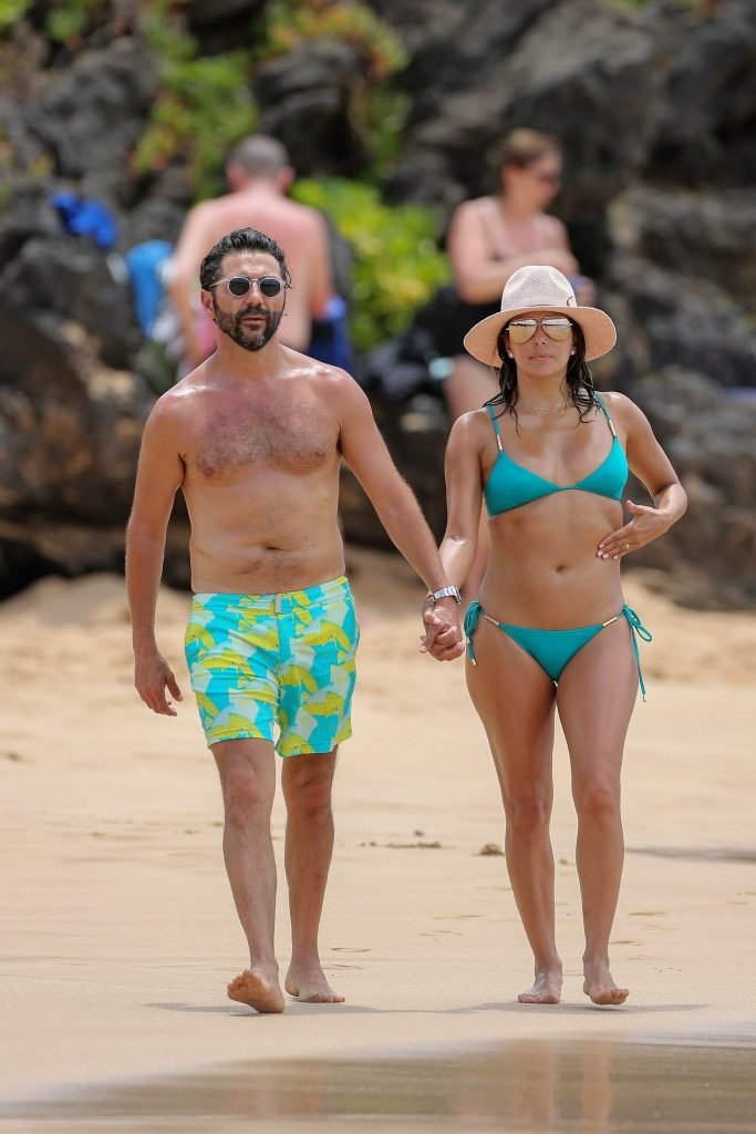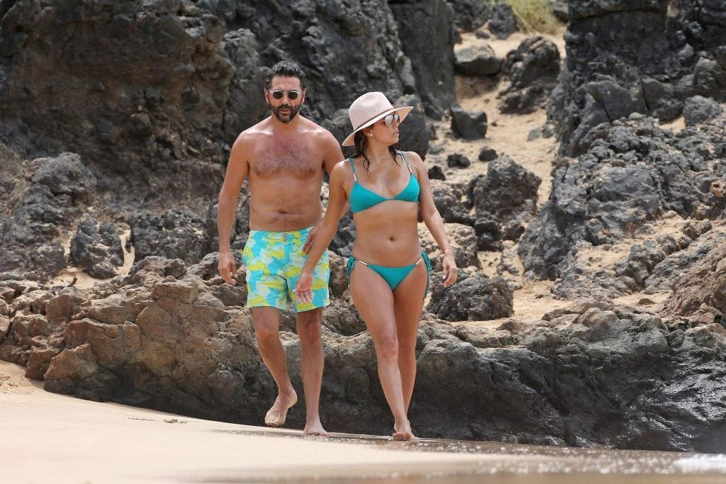 Eva Longoria indossa un bikini turchese sulla spiaggia di Miami, 20/04/2017. Eva Longoria è un’attrice americana (Decline and Fall, 2017), regista, produttrice, attivista, imprenditrice. Età – 42 anni (nata il 15 marzo 1975).
