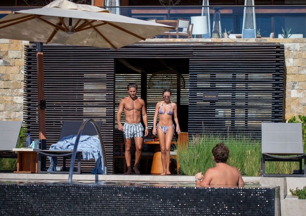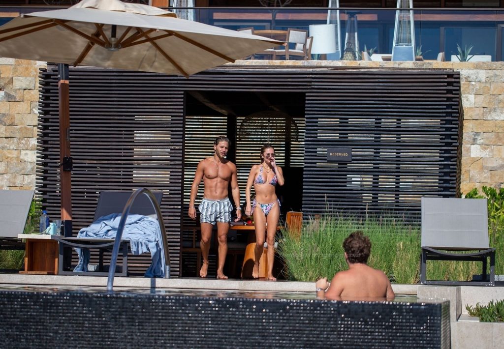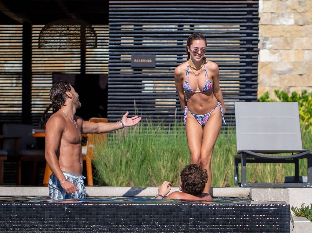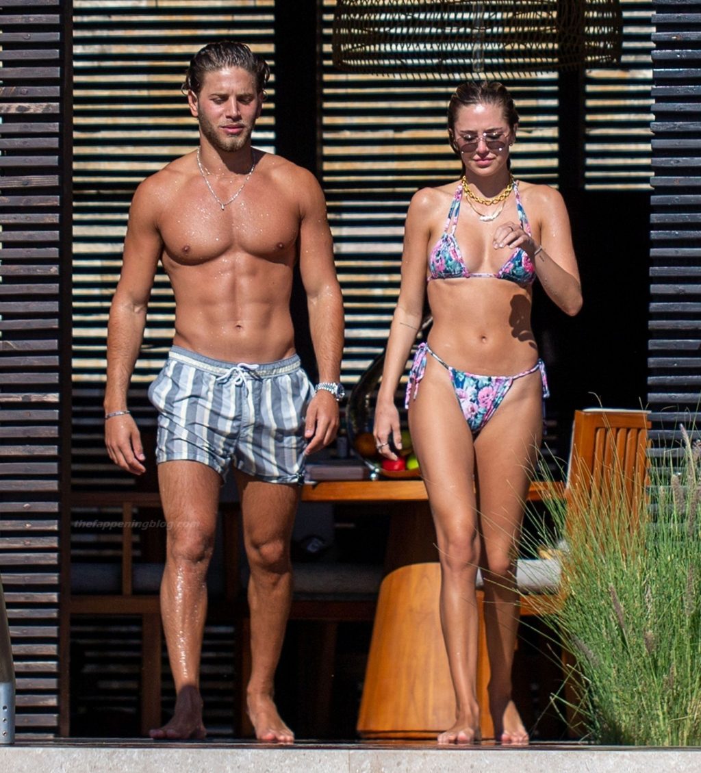 La figlia dell’attore Harry Hamlin, Delilah, ha mostrato la sua figura sexy e sensuale in un bikini multicolore a fantasia, mentre Eyal indossava i suoi pantaloncini a righe. La coppia ha condiviso un po’ di PDA insieme a bordo piscina.