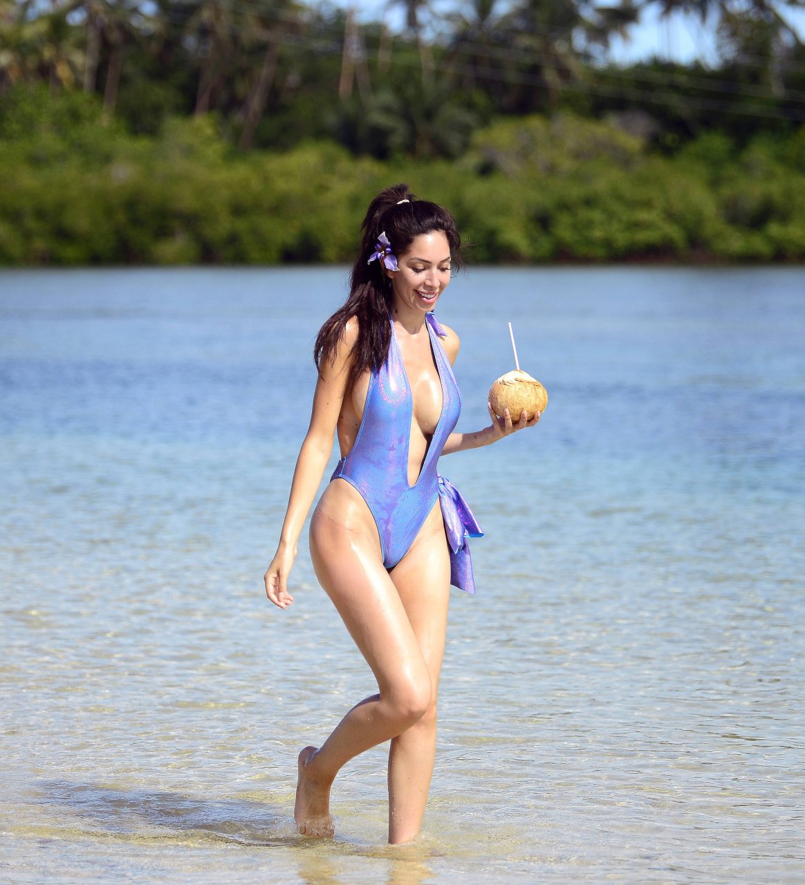 La star del reality Farrah Abraham sfoggia il suo incredibile corpo in bikini rinfrescandosi con una noce di cocco fresca sull’isola privata Wavi nelle Fiji, 02/05/2018.