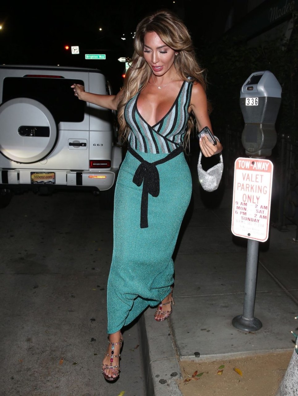 Ex “Teen Mom” e star del porno Farrah Abraham mostra la sua splendida figura in un abito blu lucido mentre viene vista uscire da Madeo dopo cena a Beverly Hills, 12/07/2019.