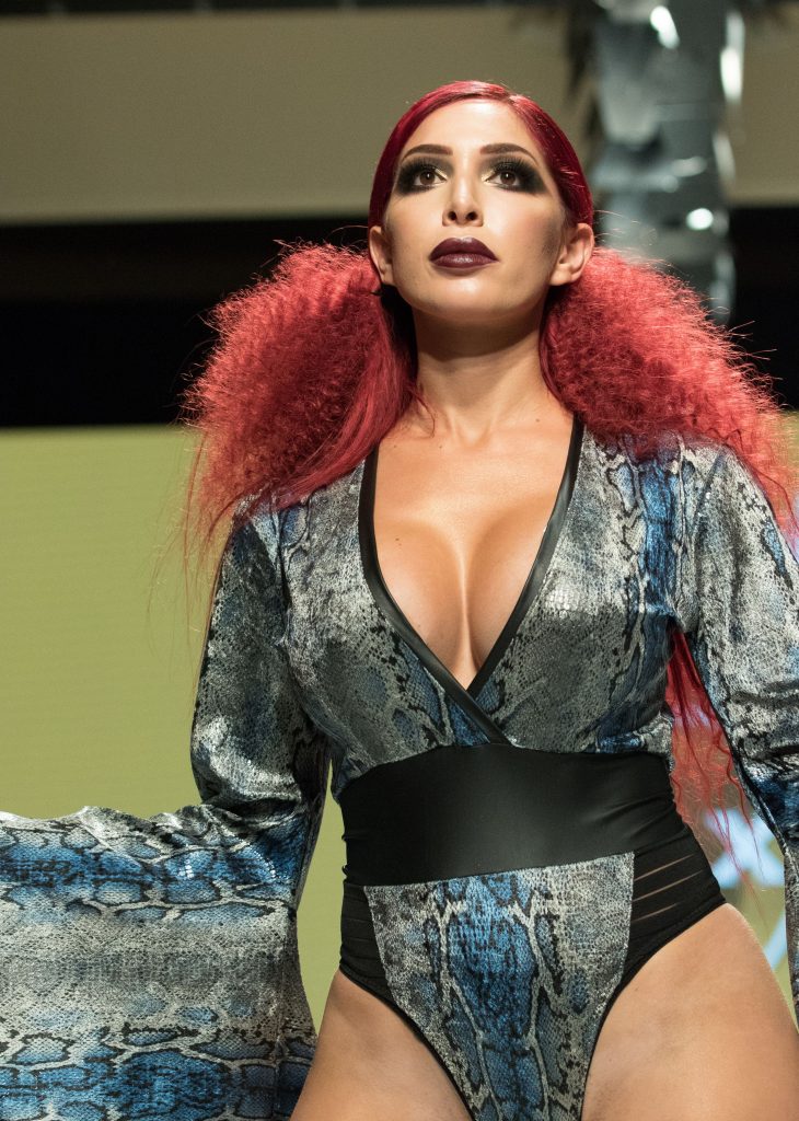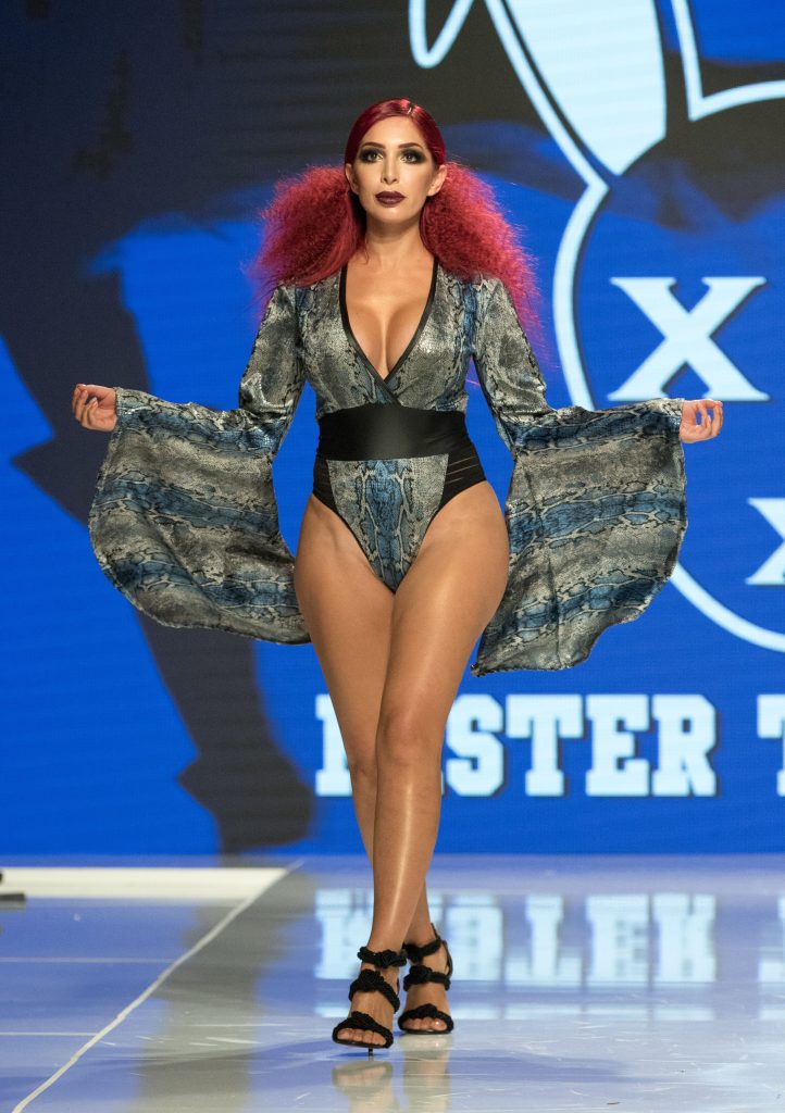 Farrah Abraham sfila indossando Mister Triple x alla Los Angeles Fashion Week Primavera/Estate 2018, 07/10/2017. Farrah Abraham è una star americana della TV reality, modella, attrice porno. Età: 26 anni (31 maggio 1991).