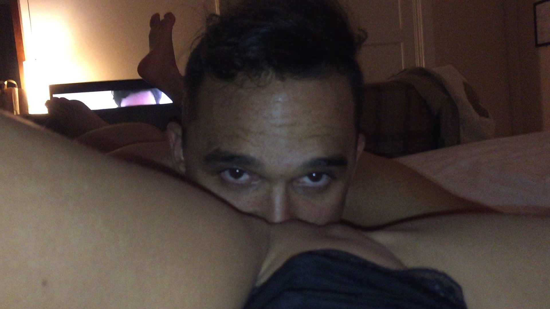 Questa è esattamente la prospettiva che ho quando guardo Raul mentre mi succhia il cazzo, alias il mio terzo capezzolo.