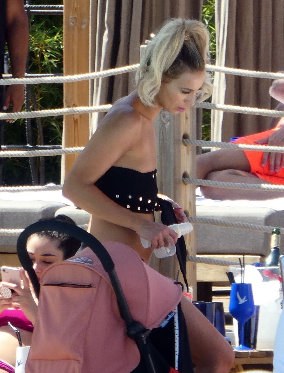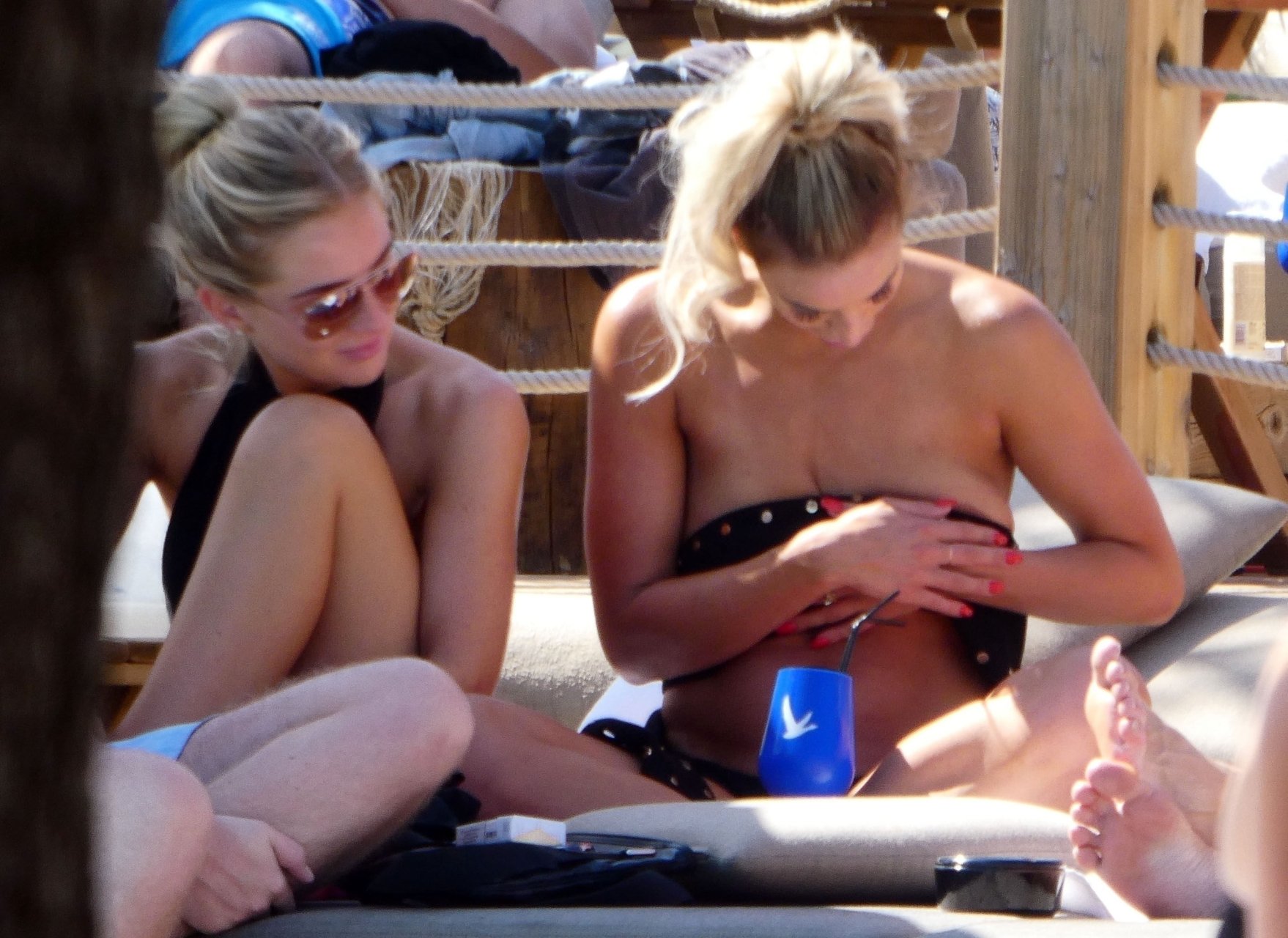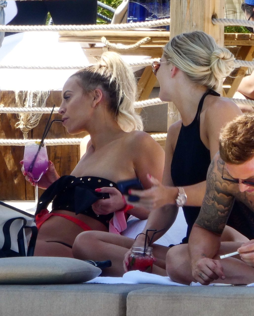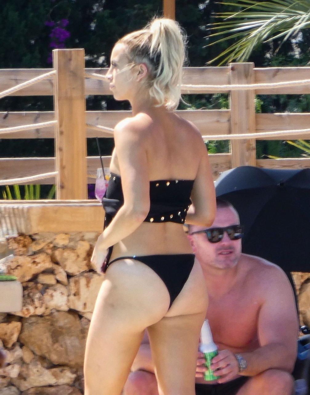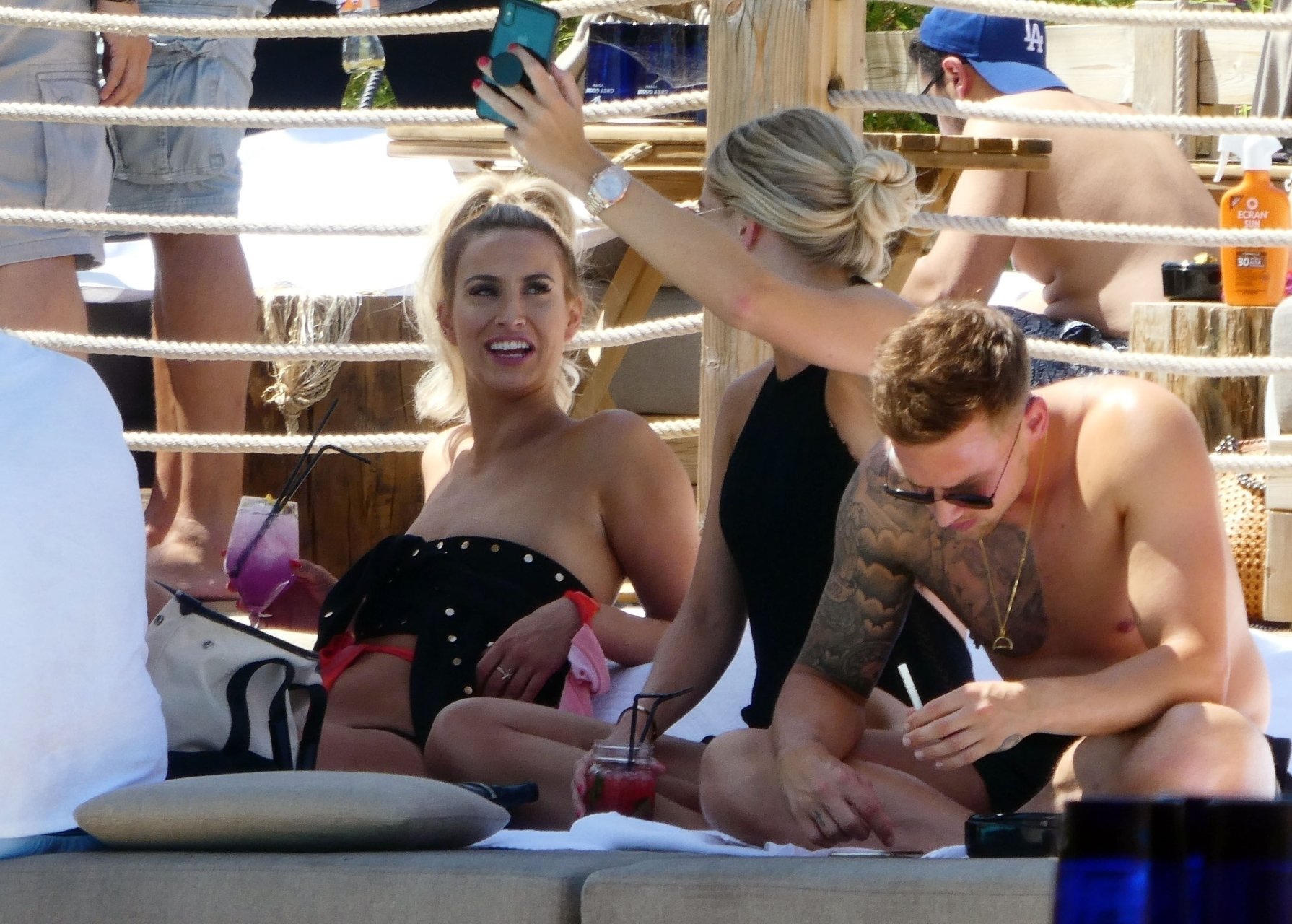 Star di TOWIE Ferne McCann fotografata con un misterioso uomo muscoloso mentre si rilassa al trendy Nao Pool Club a Marbella, 22/06/2018. Ferne è stata fotografata mentre sembrava rilassata mentre prendeva il sole e si godeva drink con le sue amiche sdraiata a bordo piscina in un bikini nero che metteva in mostra il suo fisico da spiaggia e il seno nudo.