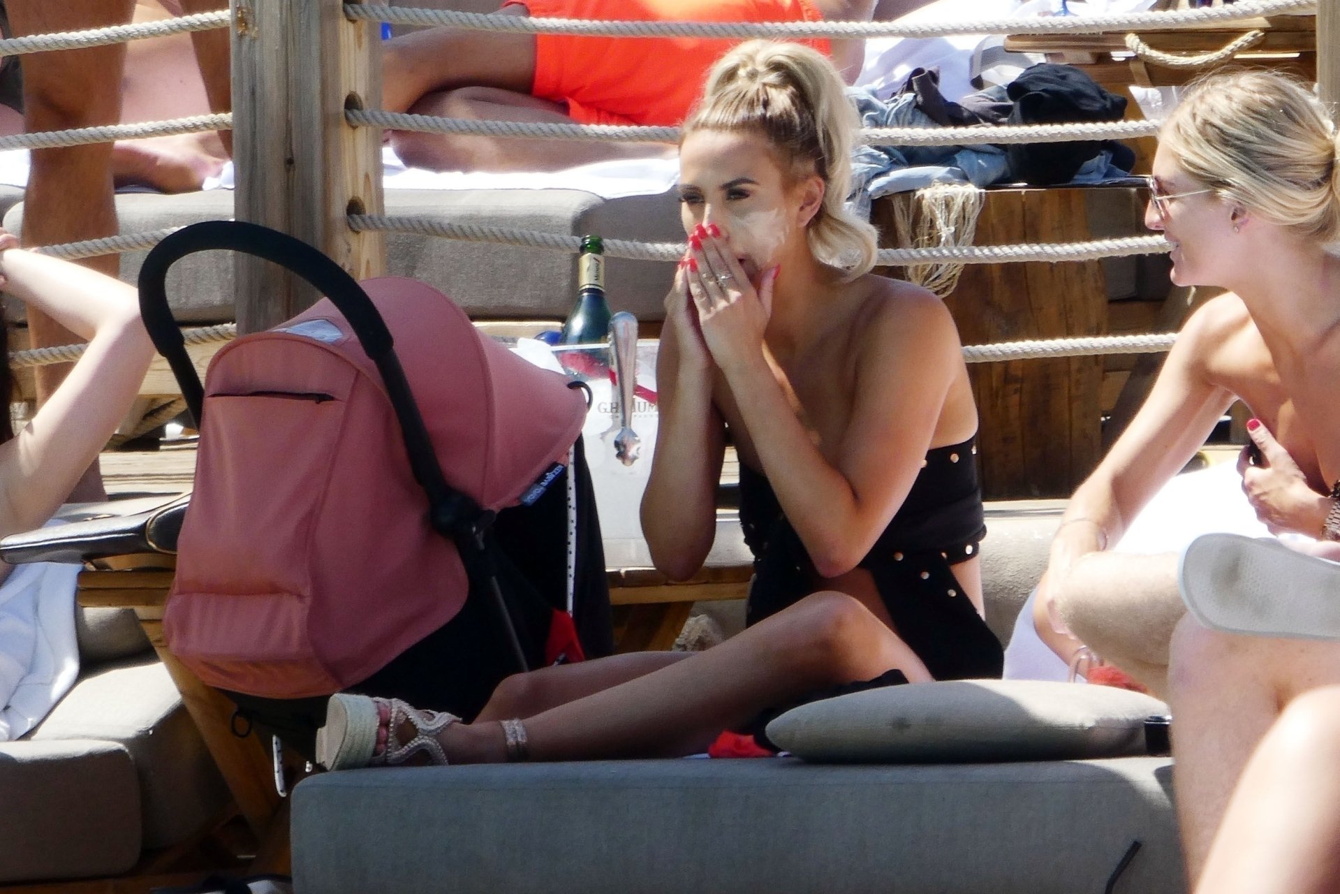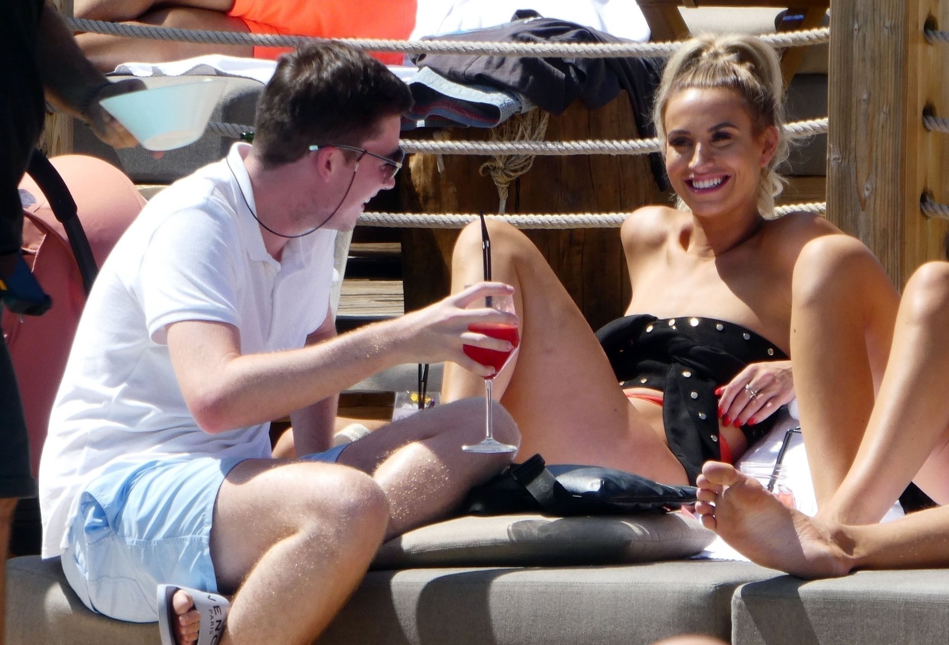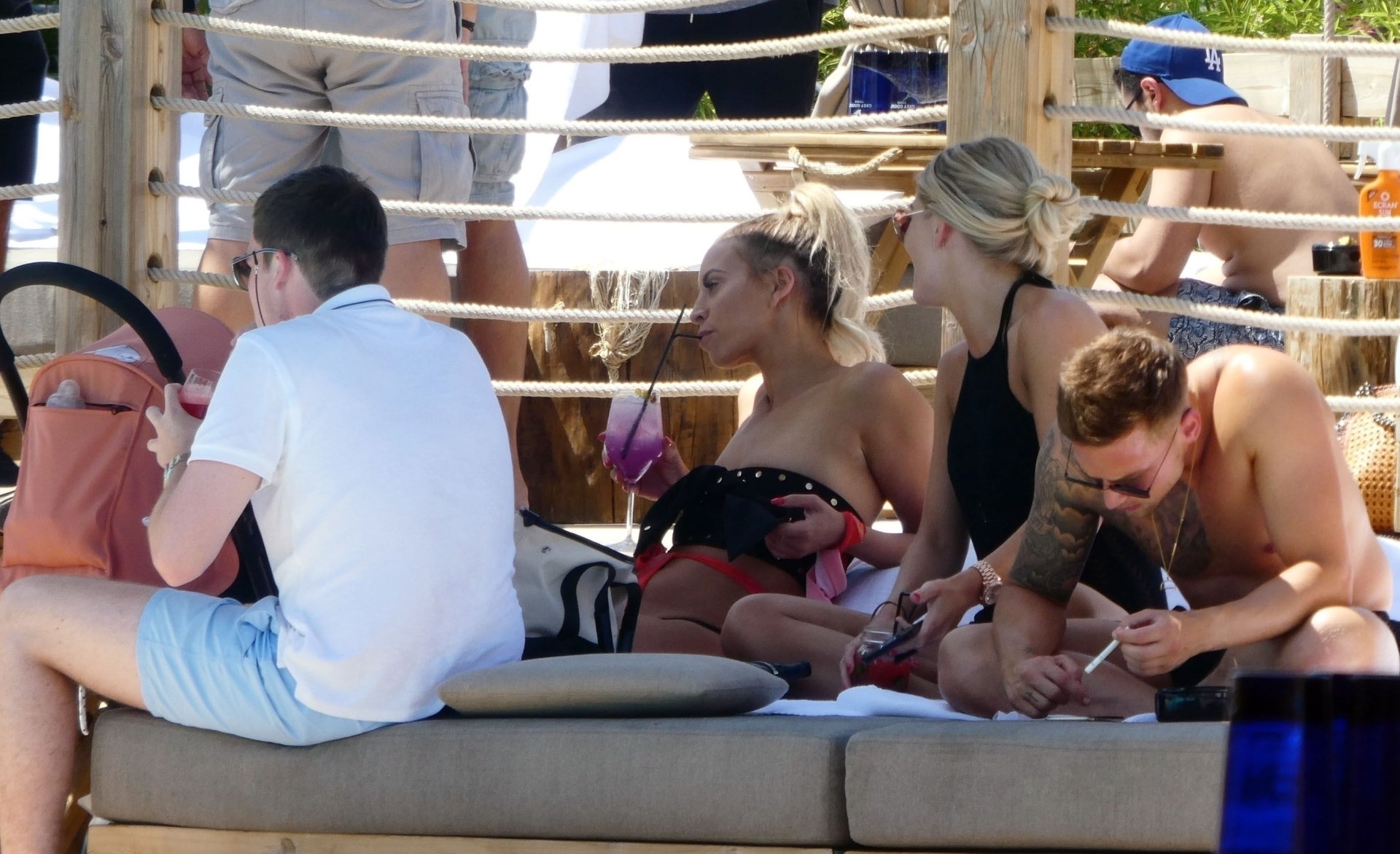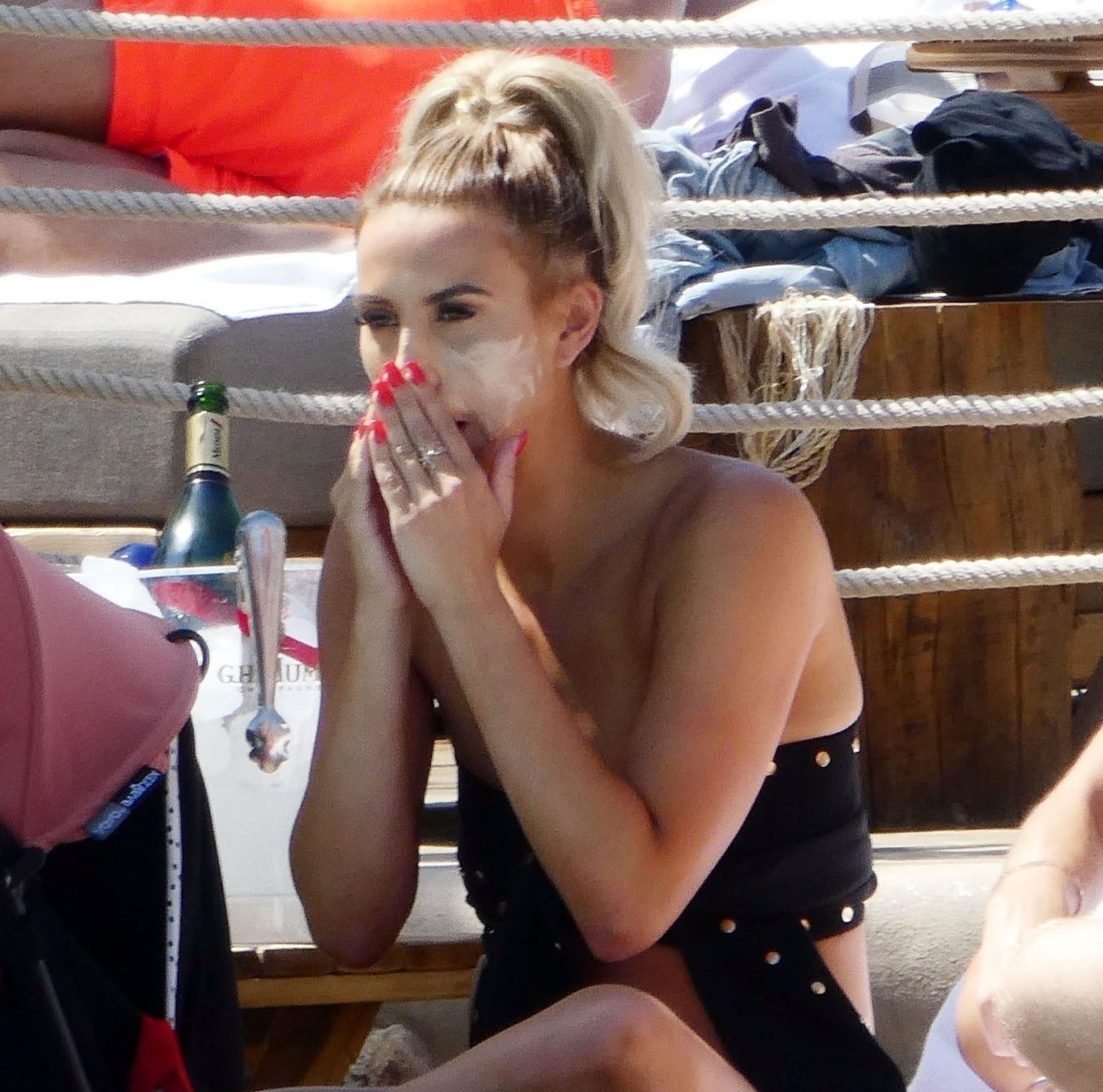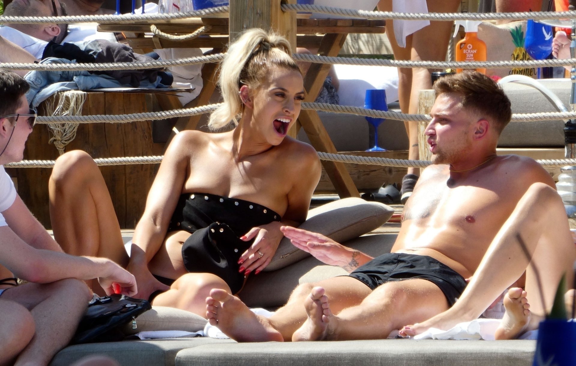 Star di TOWIE Ferne McCann fotografata con un misterioso uomo muscoloso mentre si rilassa al trendy Nao Pool Club a Marbella, 22/06/2018. Ferne è stata fotografata mentre sembrava rilassata mentre prendeva il sole e si godeva drink con le sue amiche sdraiata a bordo piscina in un bikini nero che metteva in mostra il suo fisico da spiaggia e il seno nudo.