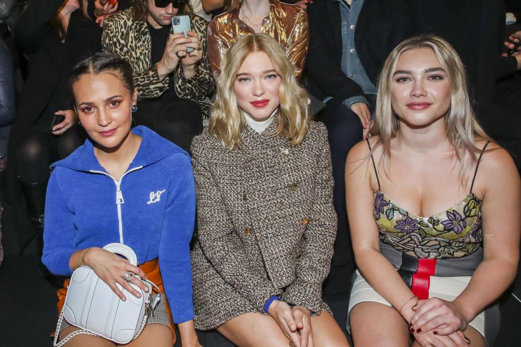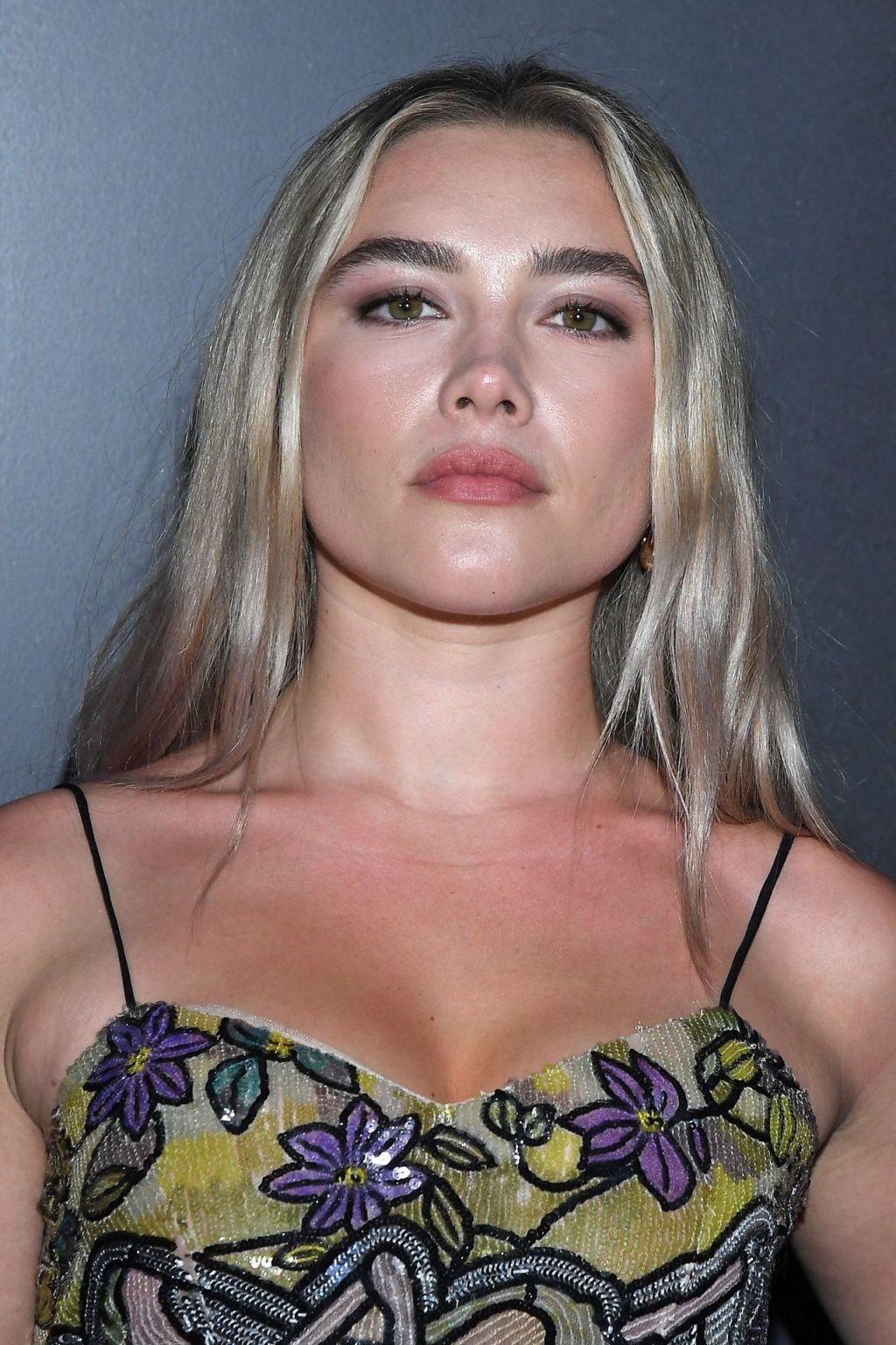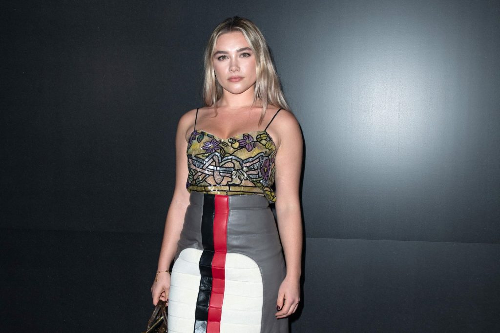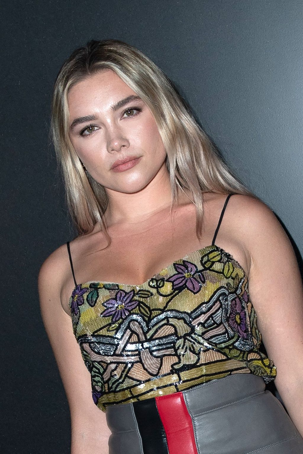 L’attrice britannica Florence Pugh è stata fotografata alla Louis Vuitton Front Row Womenswear Autunno/Inverno 2020/2021 durante la Paris Fashion Week, 03/03/2020. Ha sorpreso con le sue gambe sexy, il décolleté e la biancheria intima.