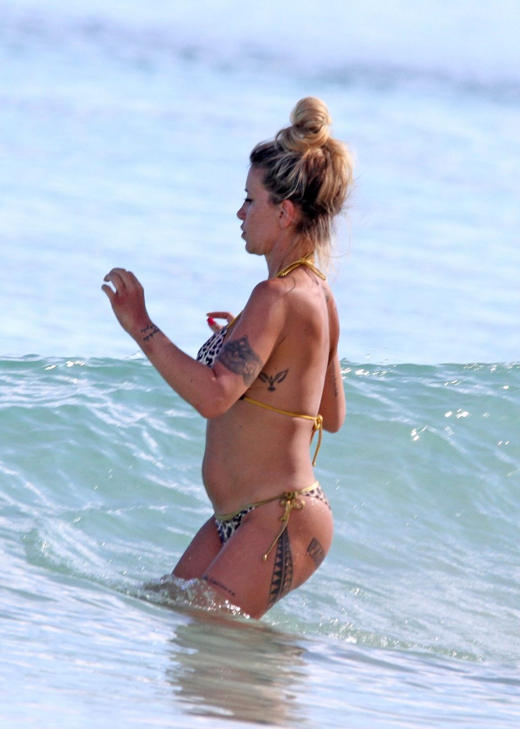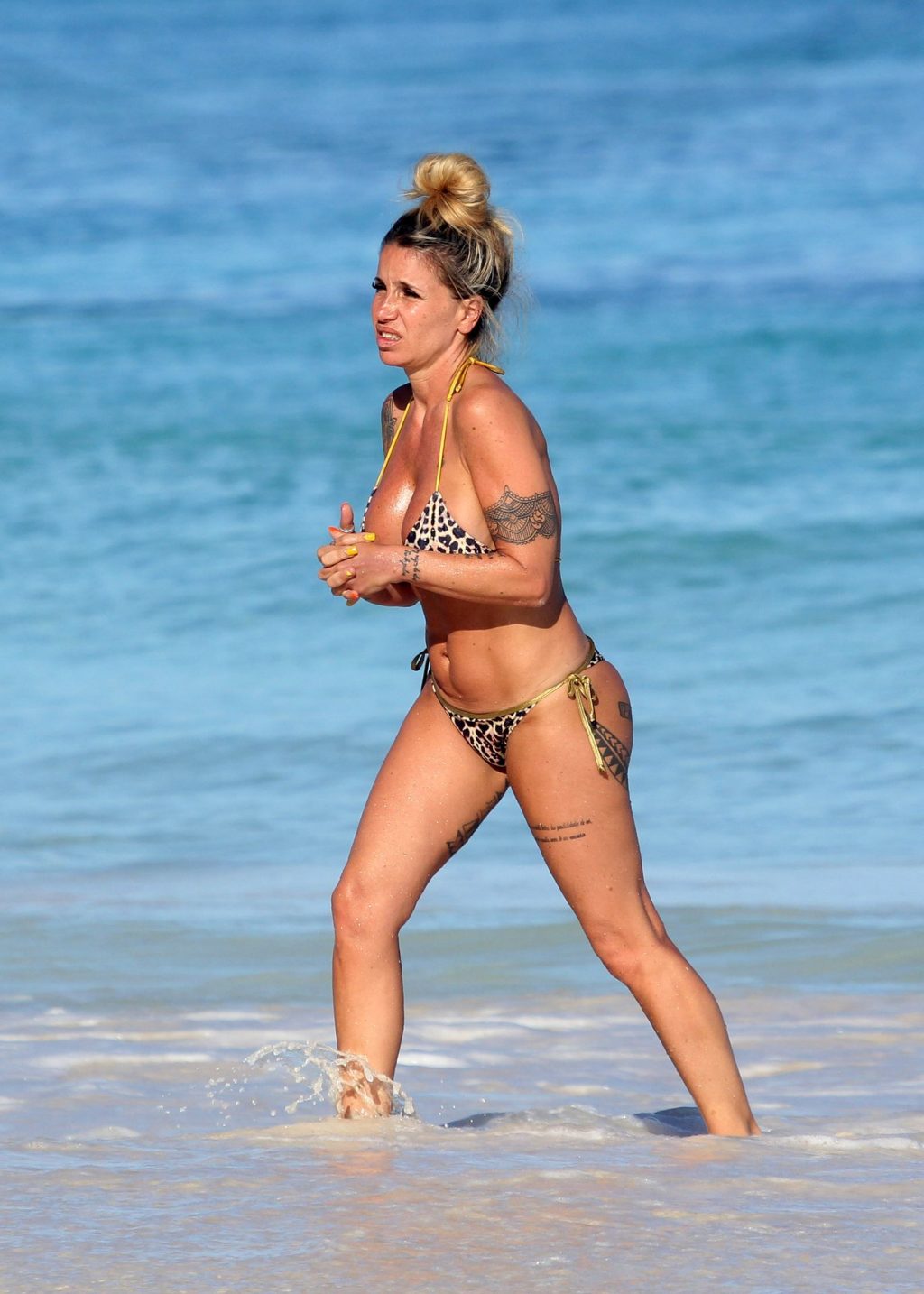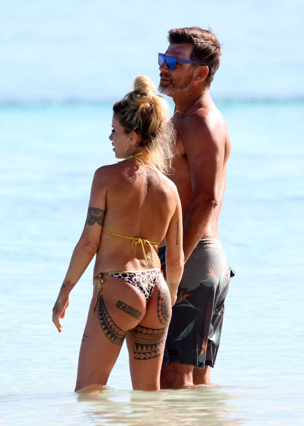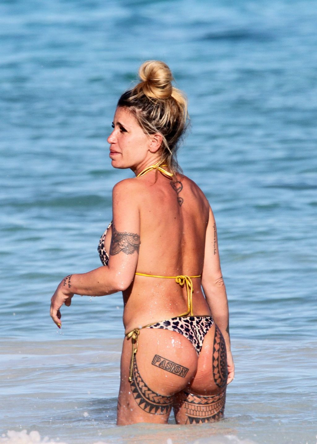L’attrice argentina Florencia Peña indossa un bikini stampato leopardato mentre viene vista mentre si gode la spiaggia durante una vacanza in Messico, 31/12/2019.