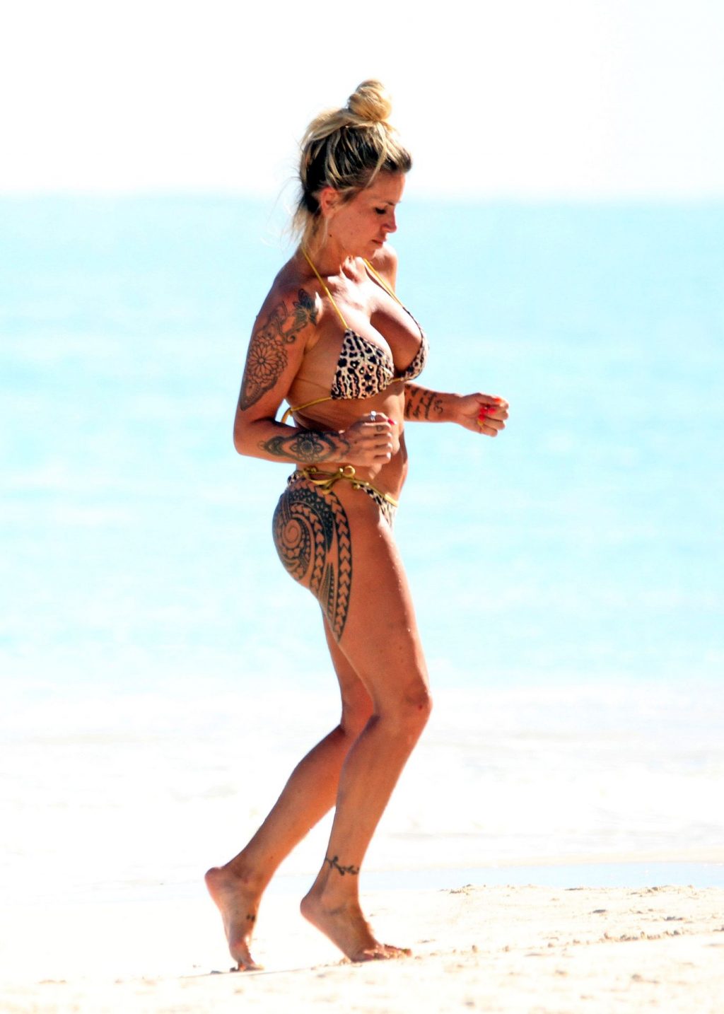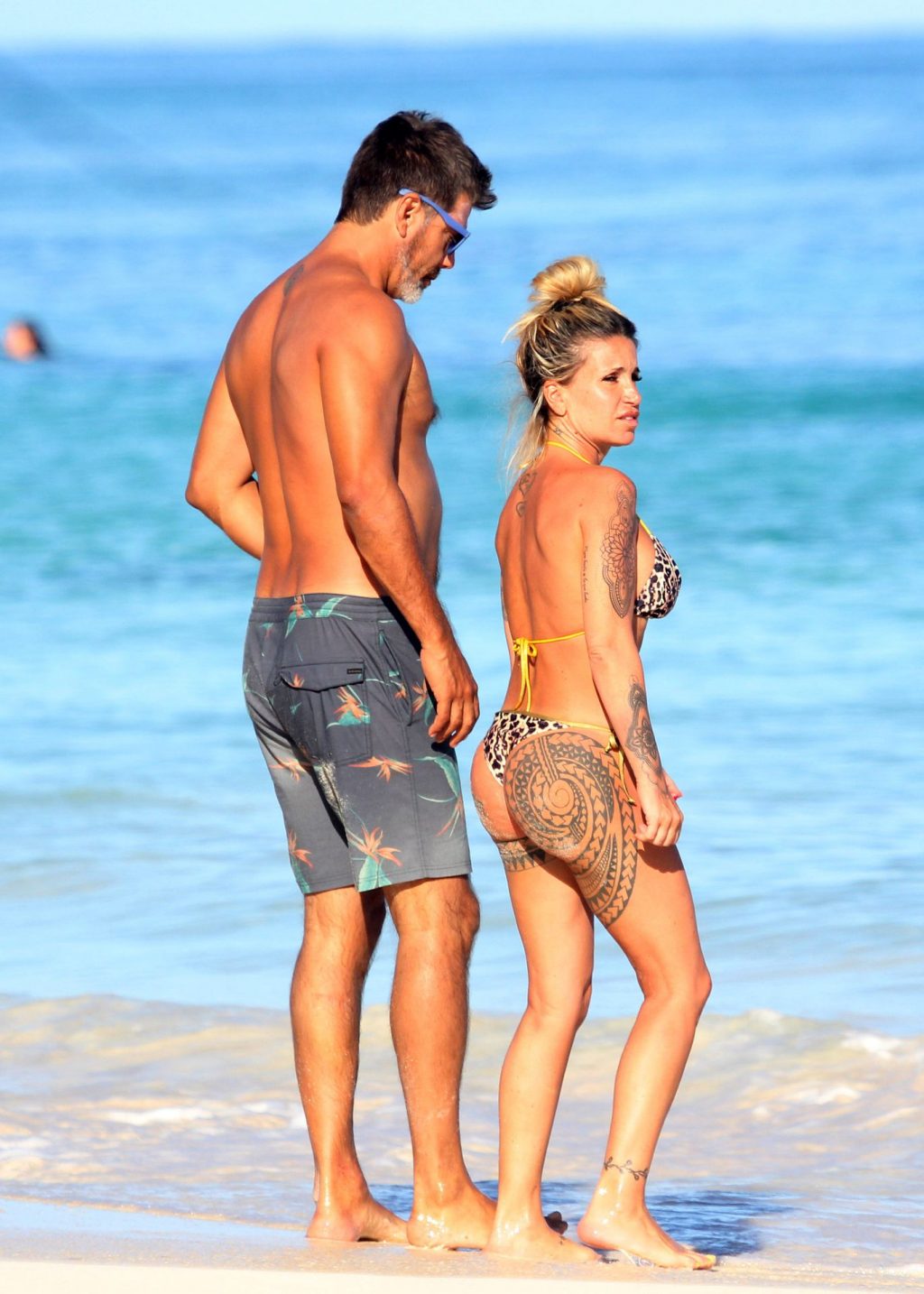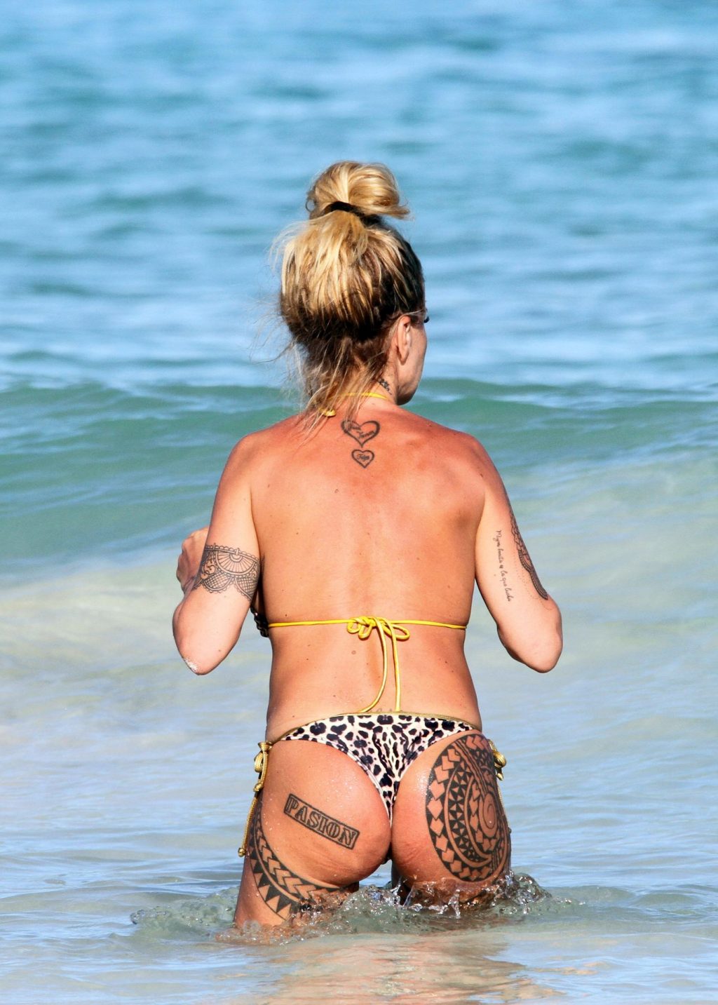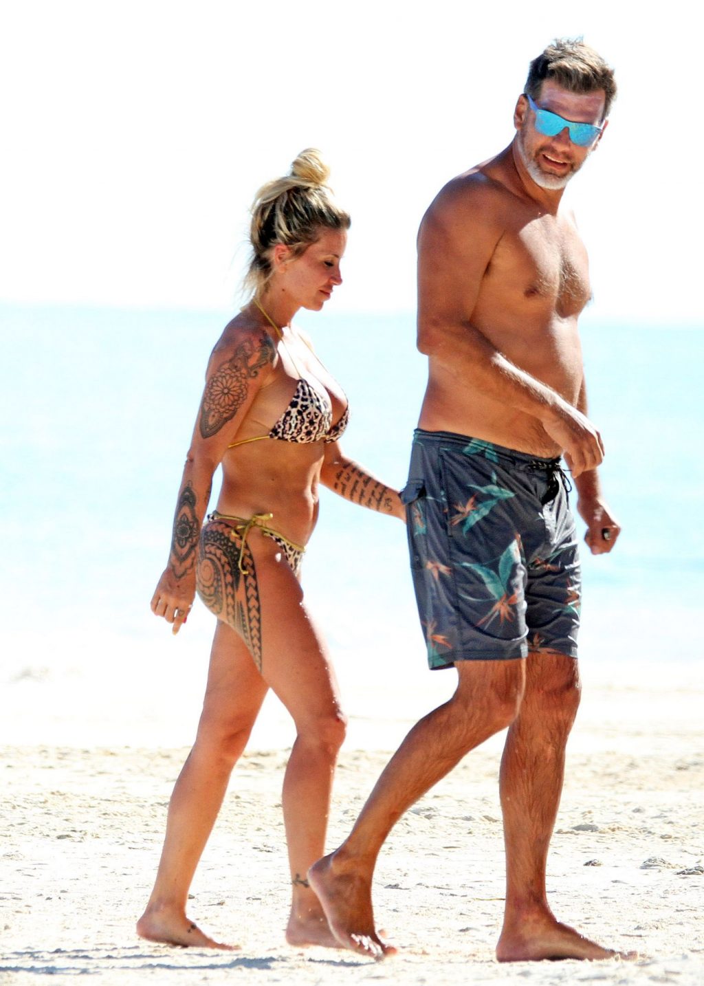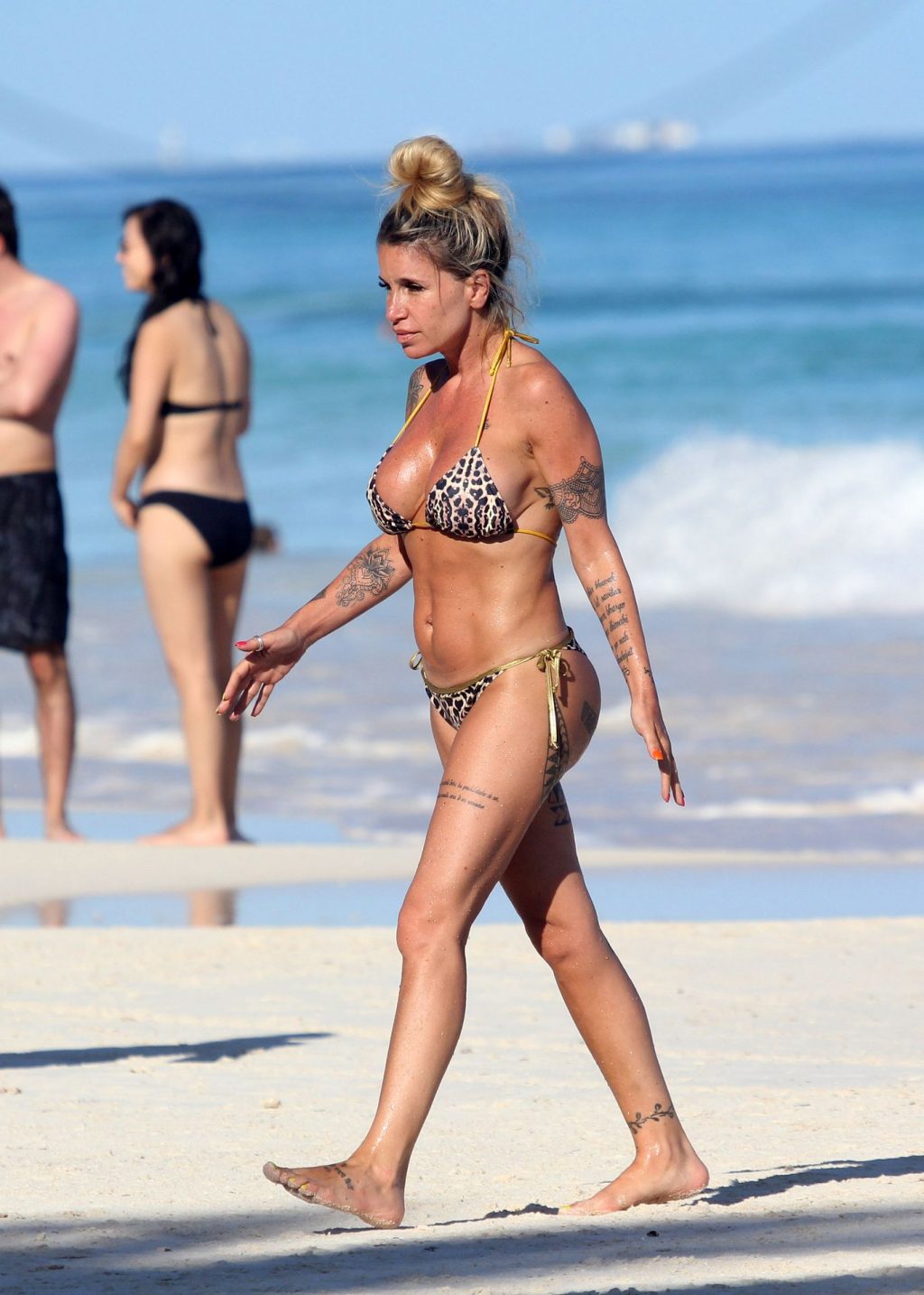 L’attrice argentina Florencia Peña indossa un bikini stampato leopardato mentre viene vista mentre si gode la spiaggia durante una vacanza in Messico, 31/12/2019.