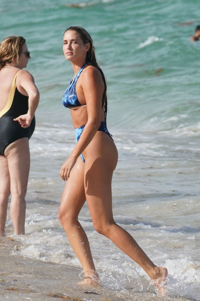 L’ex fidanzata della star NBA Blake Griffin, modella e designer Francesca Aiello, mostra il suo corpo in bikini con un bikini stampato blu di Frankie’s Bikinis sulla spiaggia di Miami Beach, 16/07/2019.