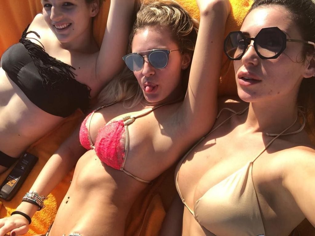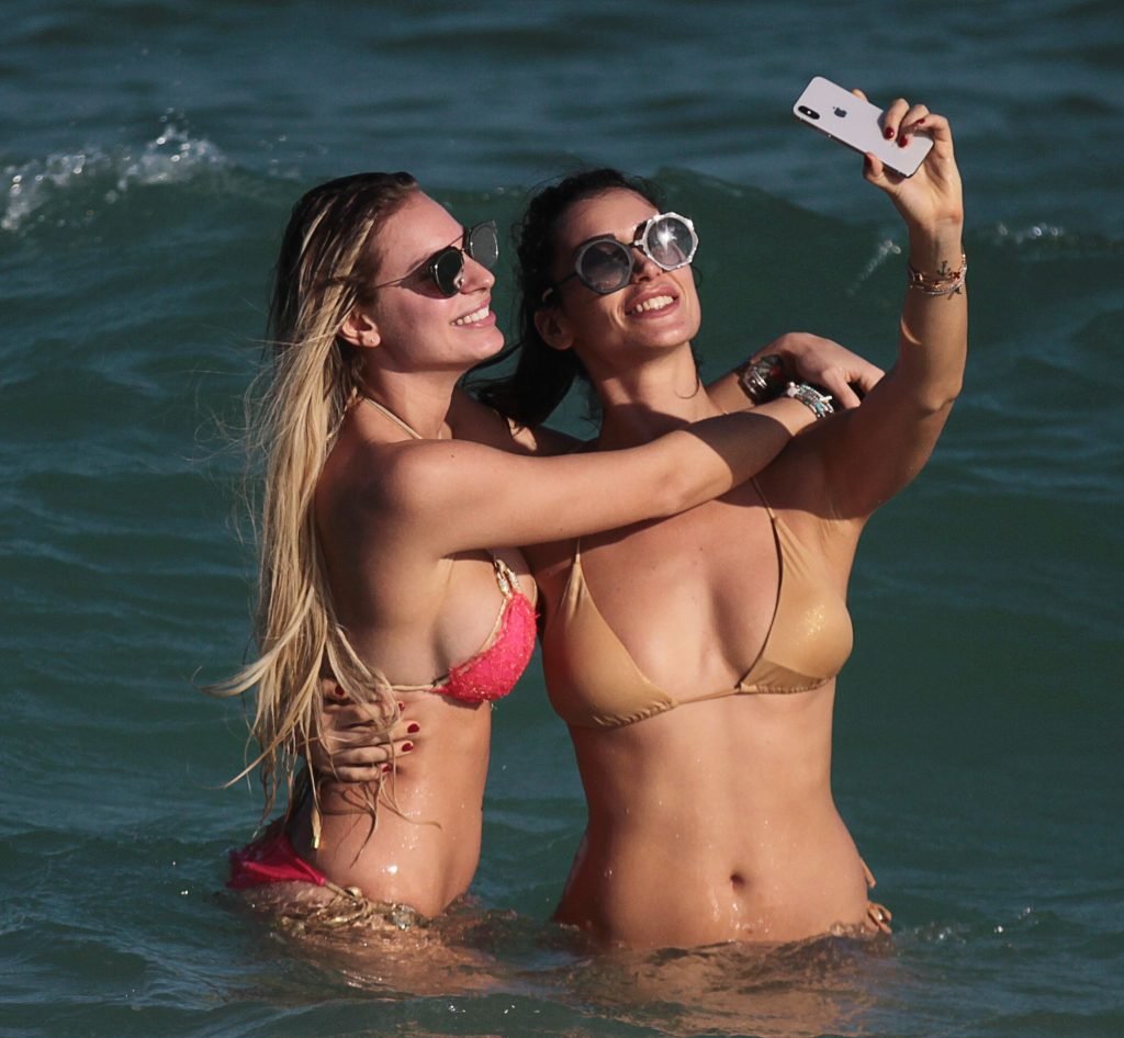 Models Francesca Brambilla and Livia Canalis mostrano i loro corpi in bikini sulla spiaggia di Miami, 12/08/2017.