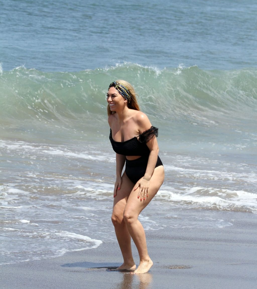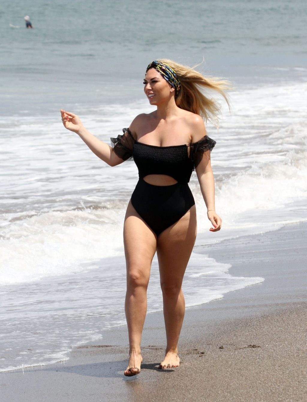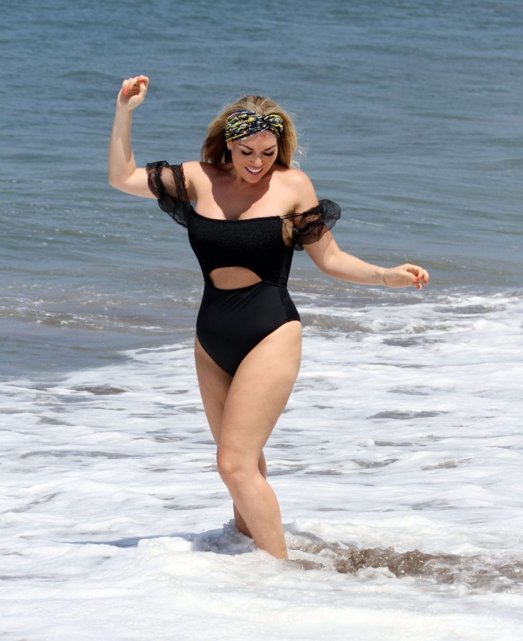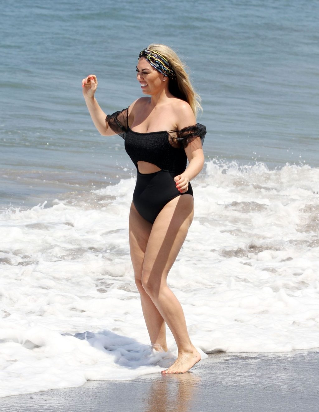 Reality star Frankie Essex mostra la sua recente perdita di peso in vacanza a Tenerife, 01/03/2020. Frankie è vista in un costume da bagno nero mentre salta dentro e fuori dal mare sull’isola spagnola.