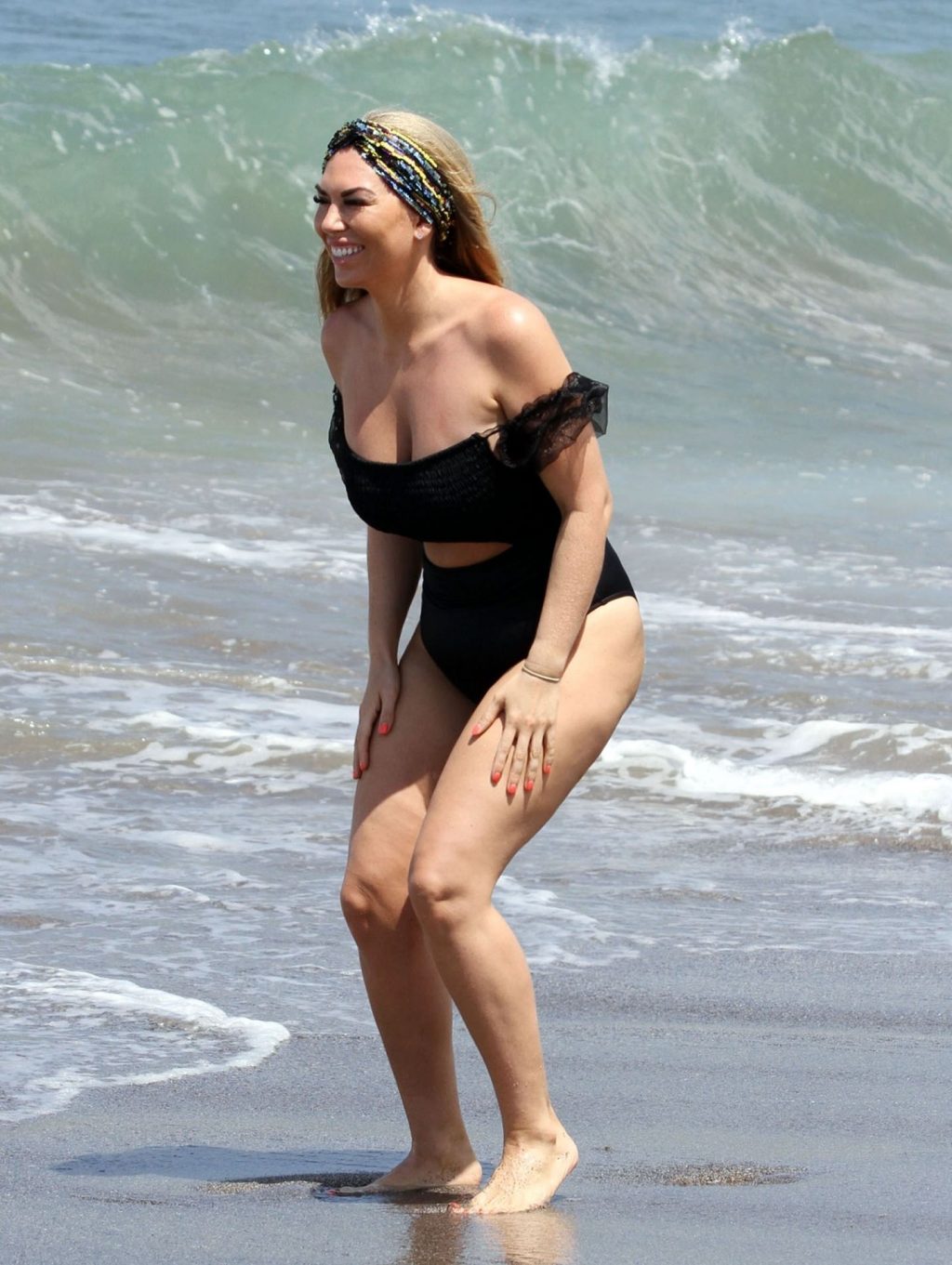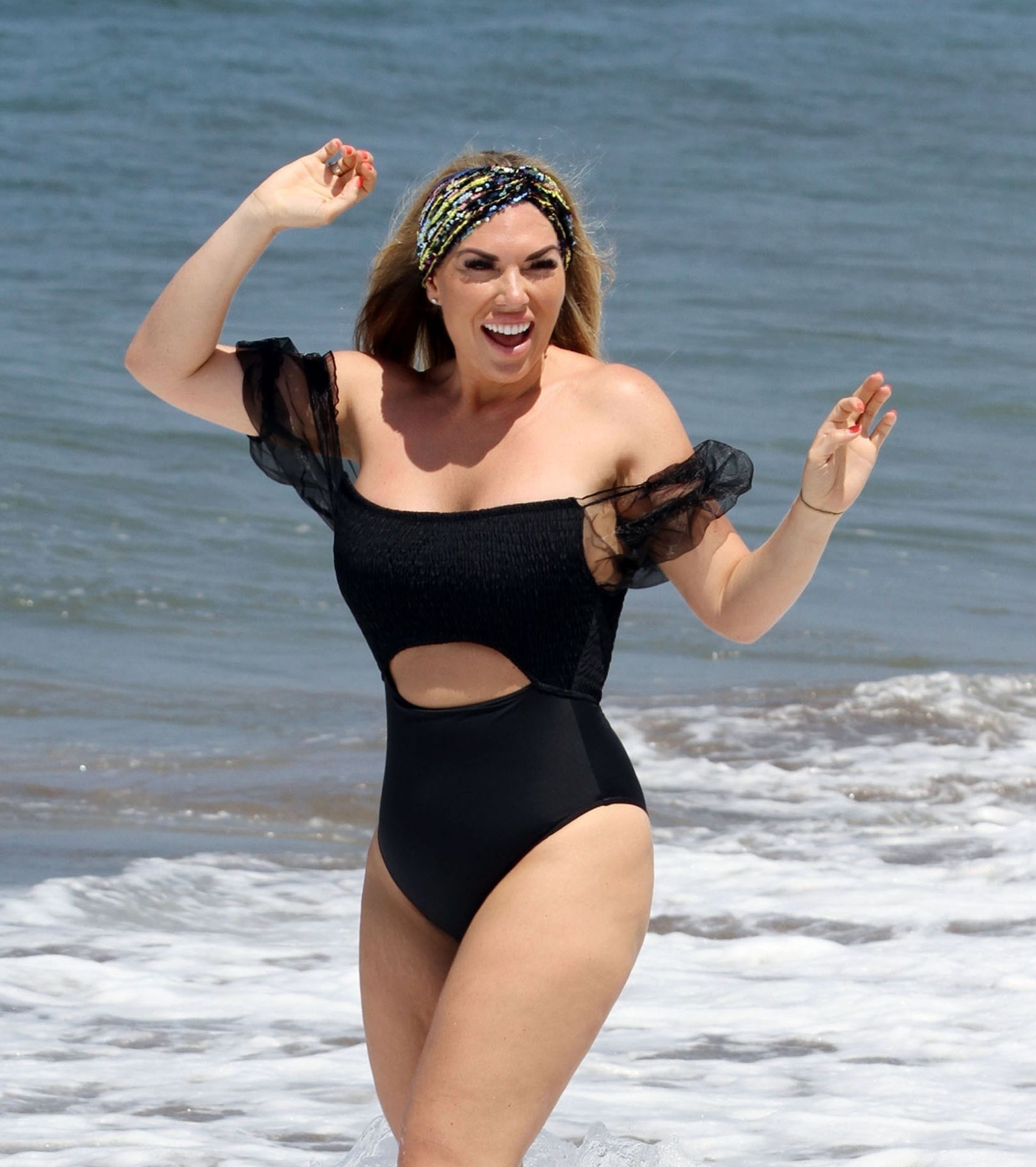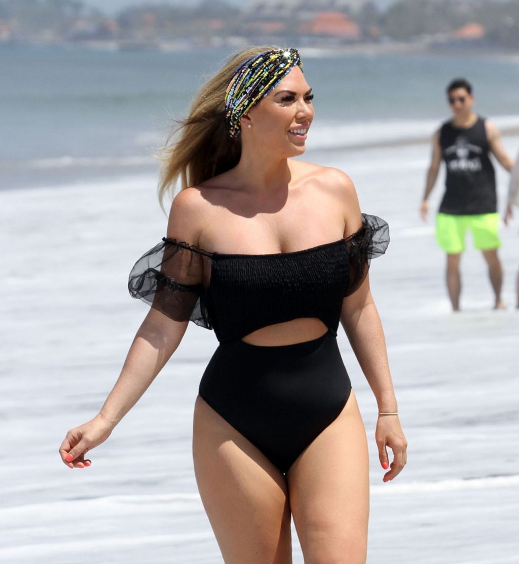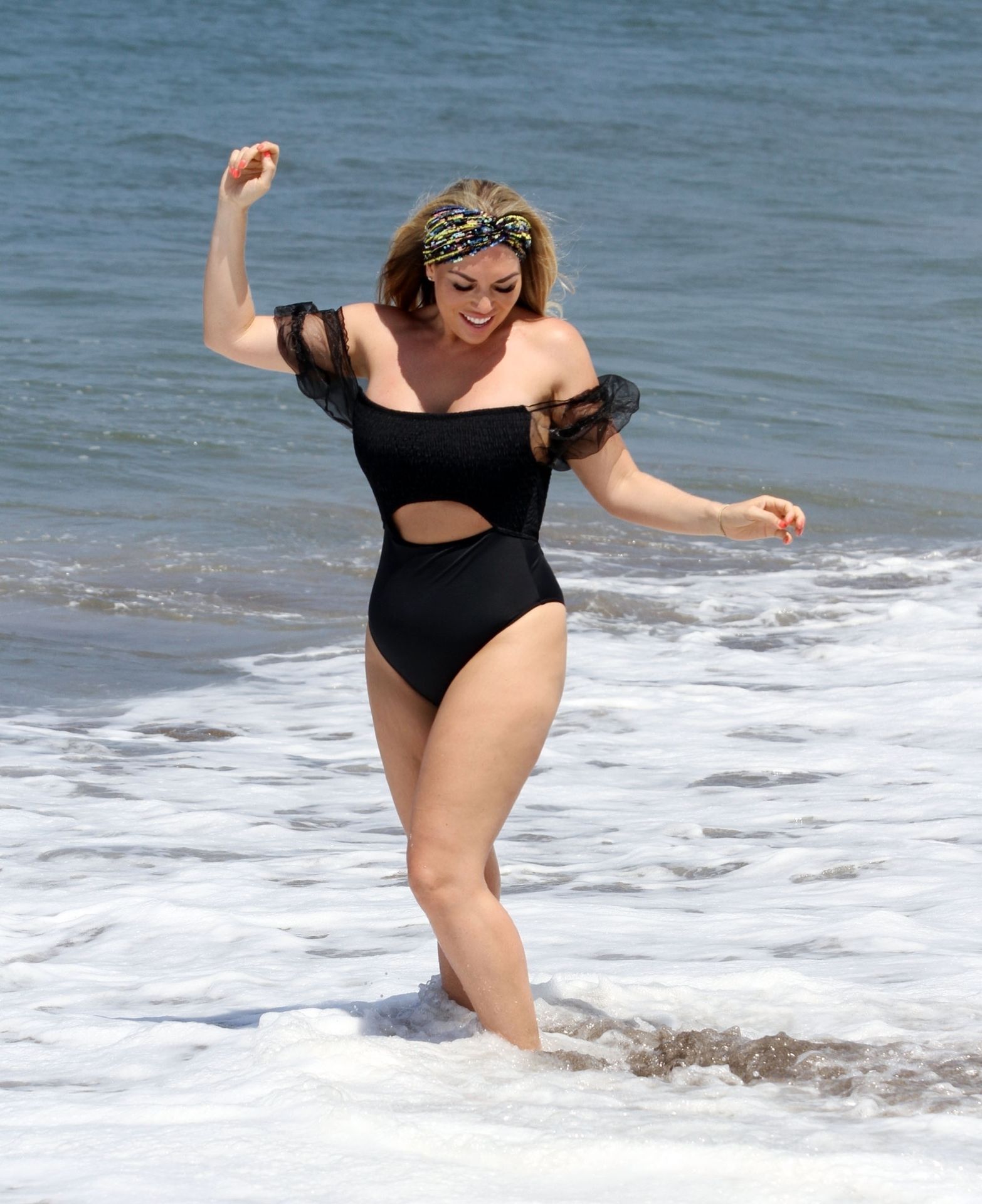 Reality star Frankie Essex mostra la sua recente perdita di peso in vacanza a Tenerife, 01/03/2020. Frankie è vista in un costume da bagno nero mentre salta dentro e fuori dal mare sull’isola spagnola.