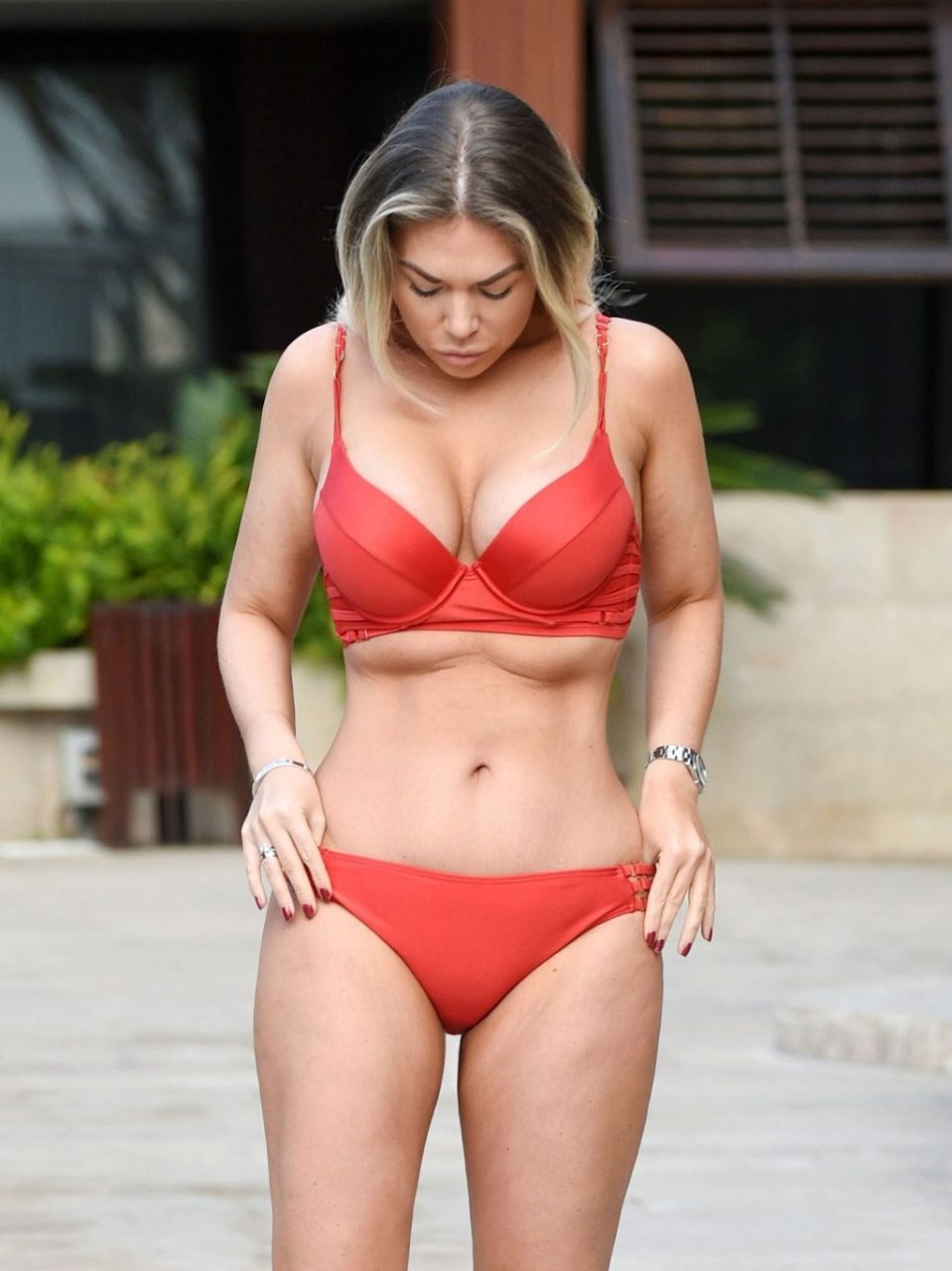 Frankie è vista a bordo piscina con un bikini rosso mentre la yo-yo dietista Frankie appare in forma migliore che mai mentre si gode il sole sull’isola spagnola.