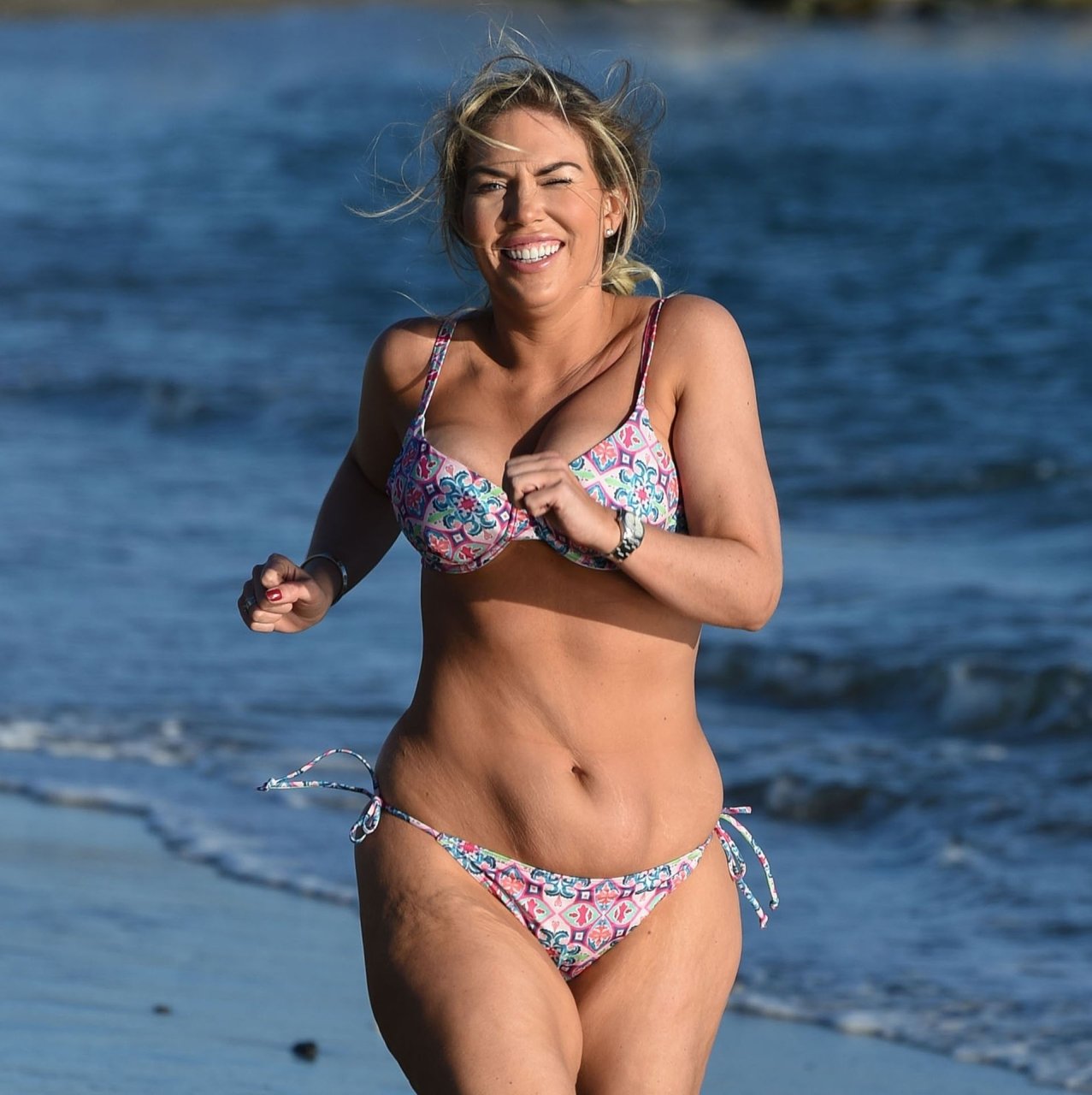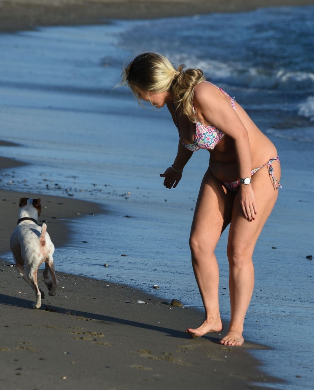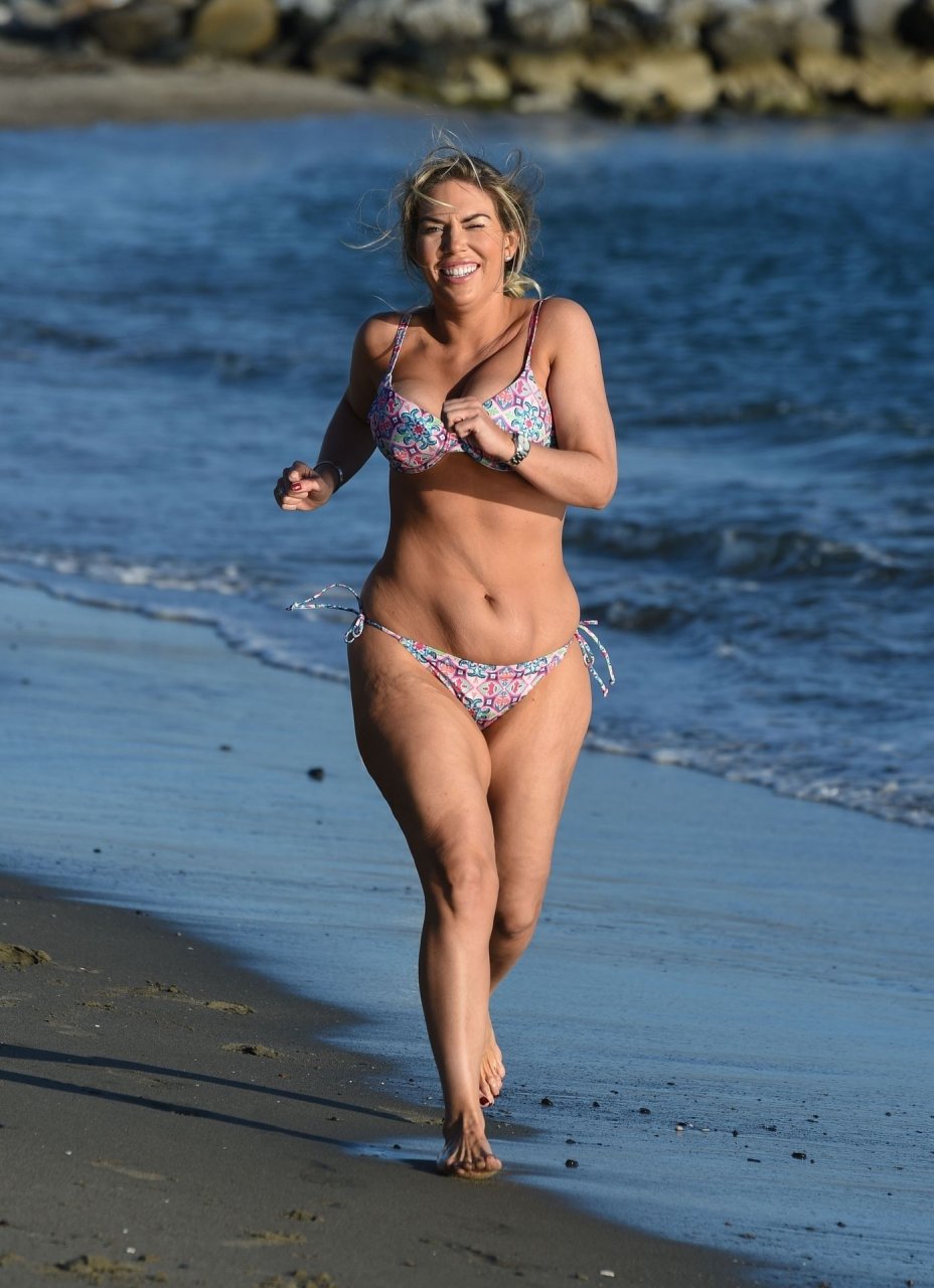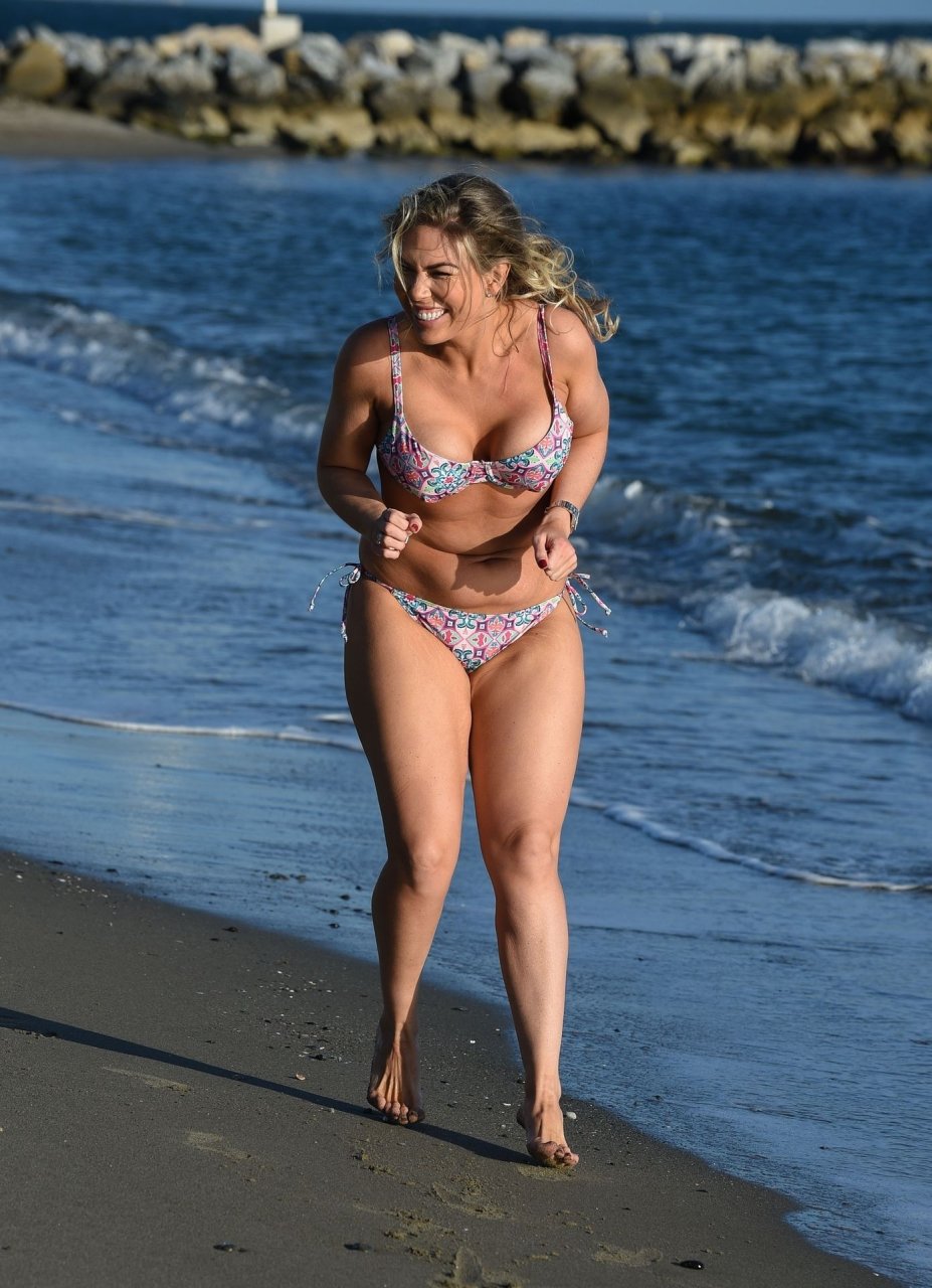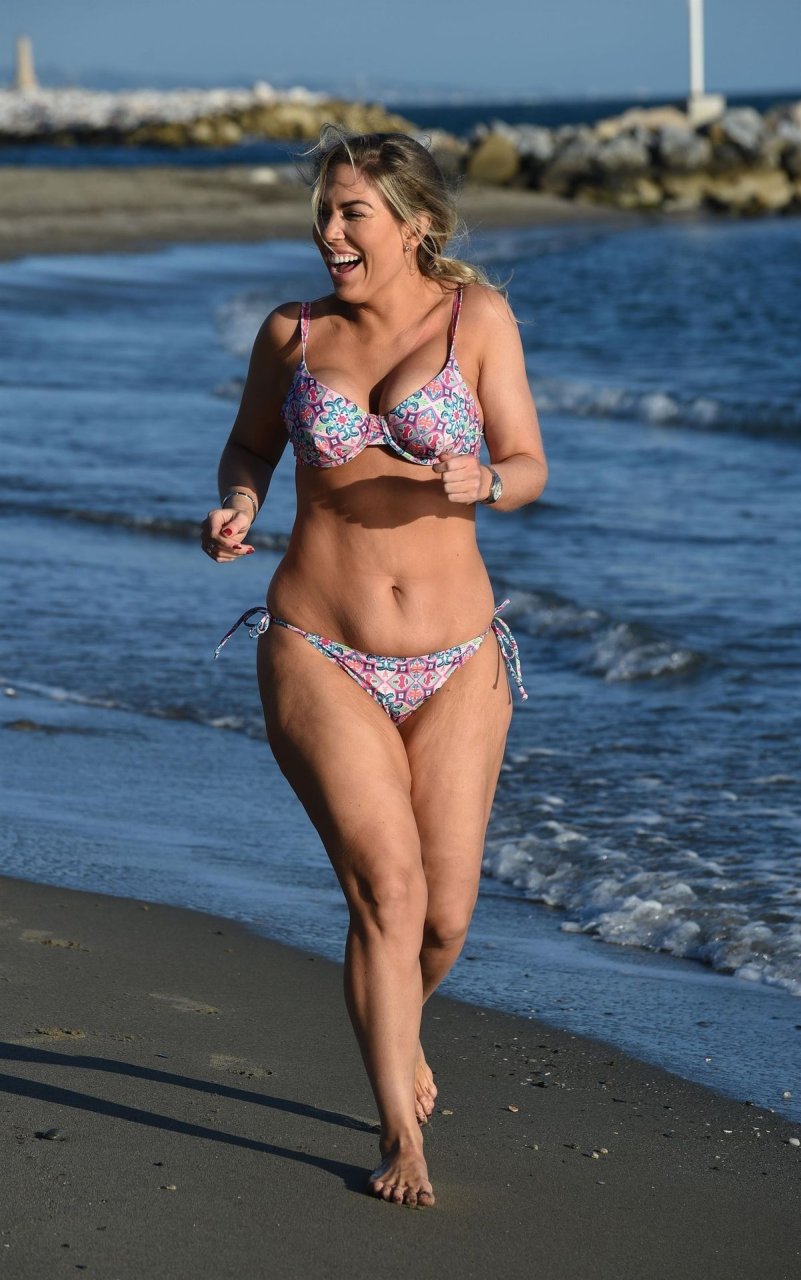 L’ex star dei reality Frankie Essex (30) mostra le sue curve e mette in forma il suo corpo mentre fa jogging sulle spiagge di Tenerife con il suo bikini multicolore succinto durante le vacanze in Spagna (2018).
