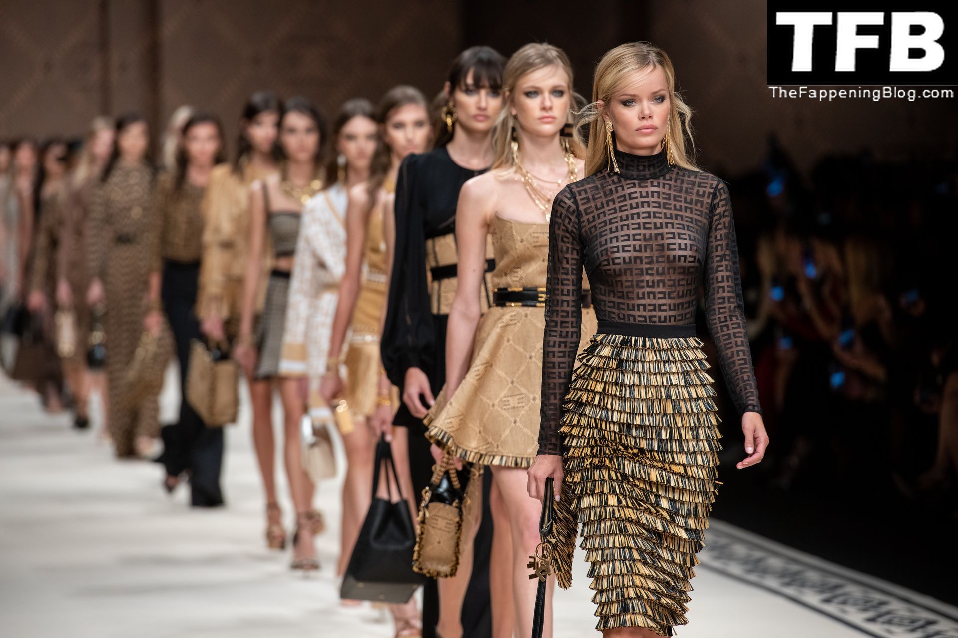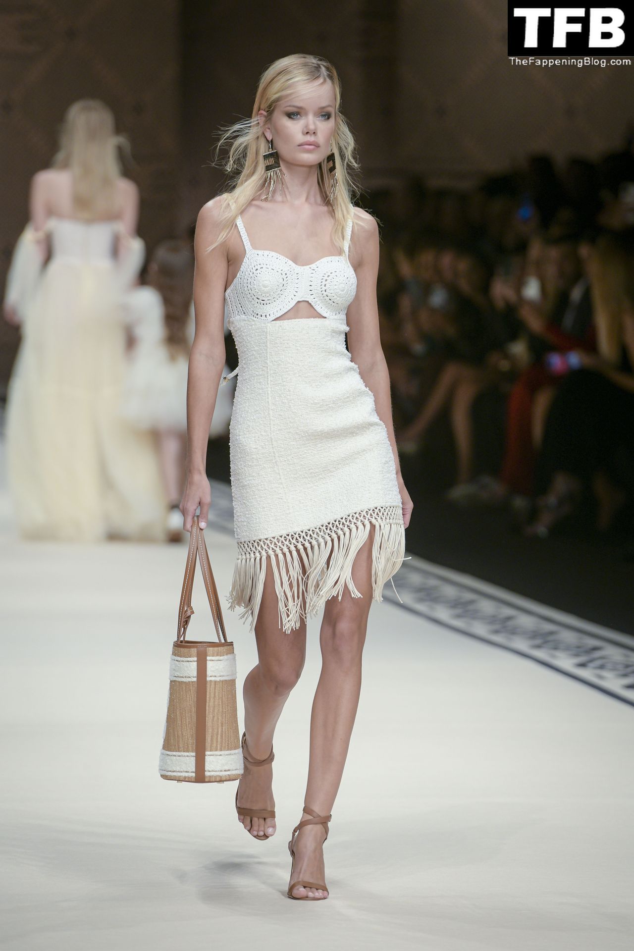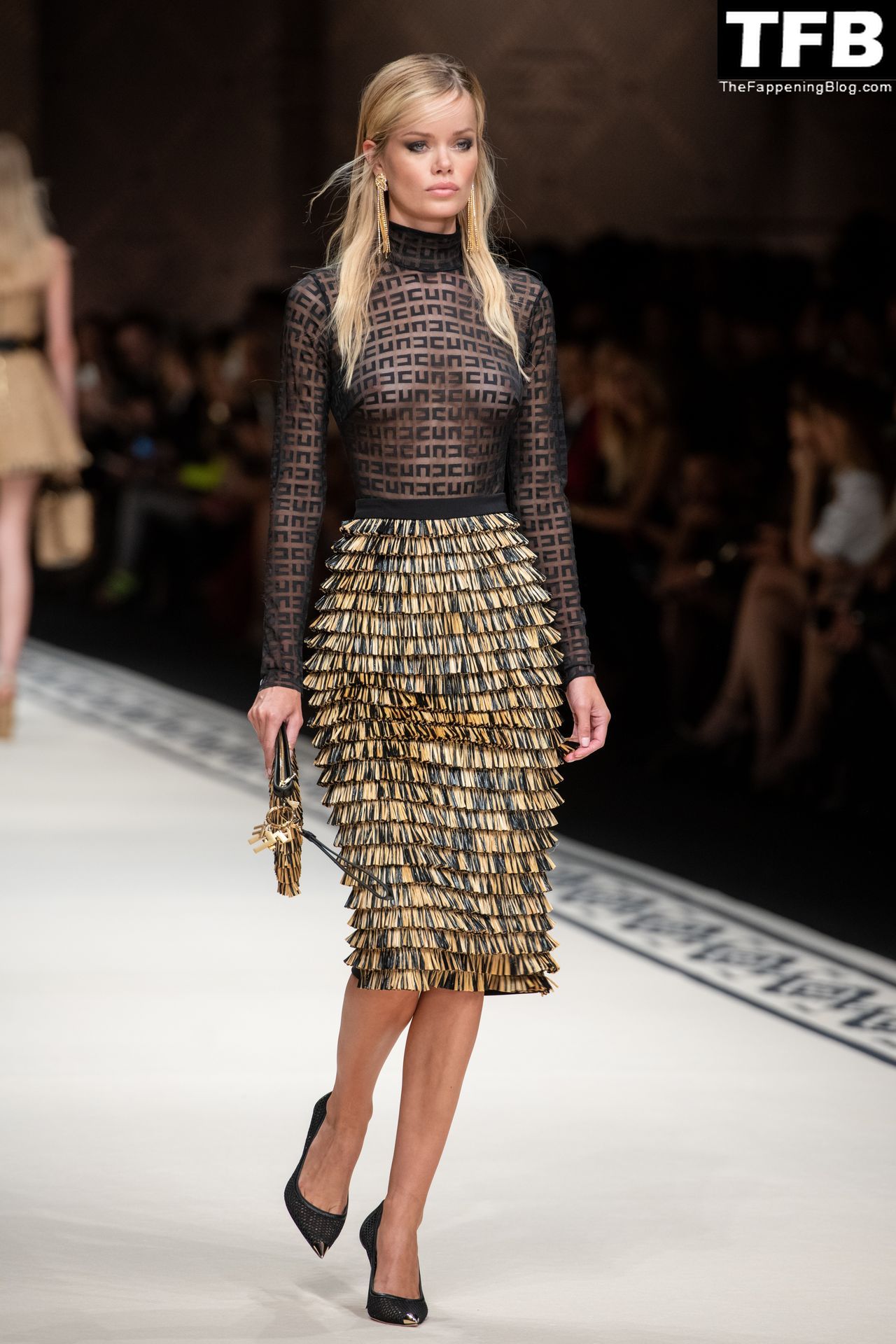 Frida Aasen Mostra i Suoi Seno Nudo e Gambe Sexy alla Sfilata di Elisabetta Franchi a Milano (8 Foto)