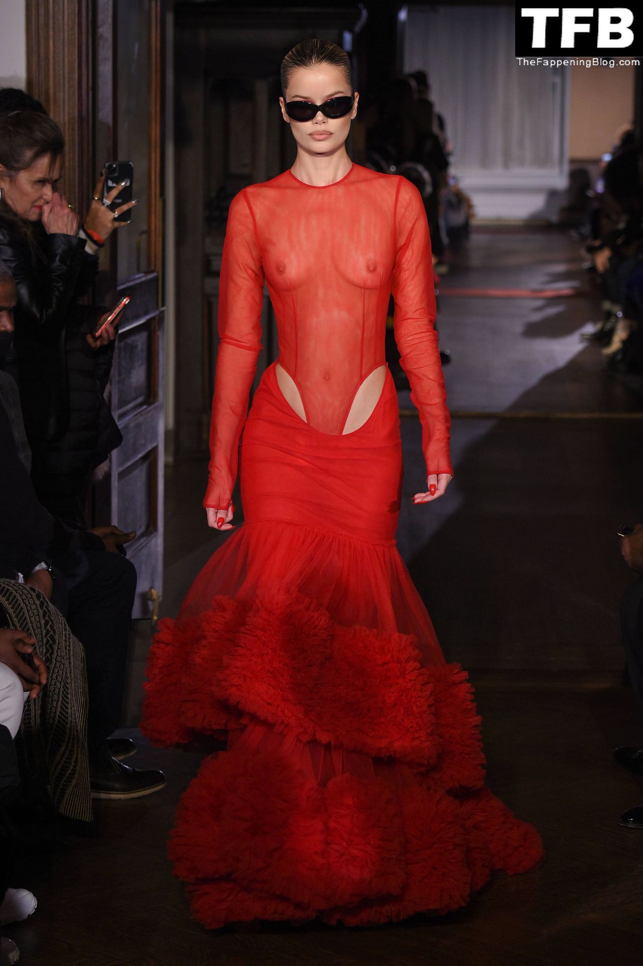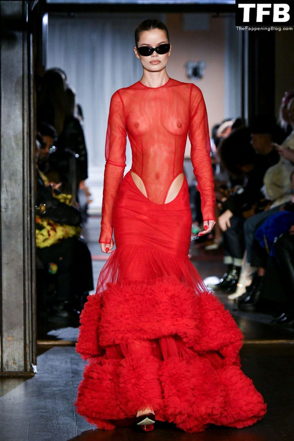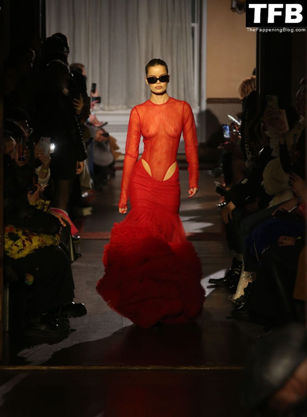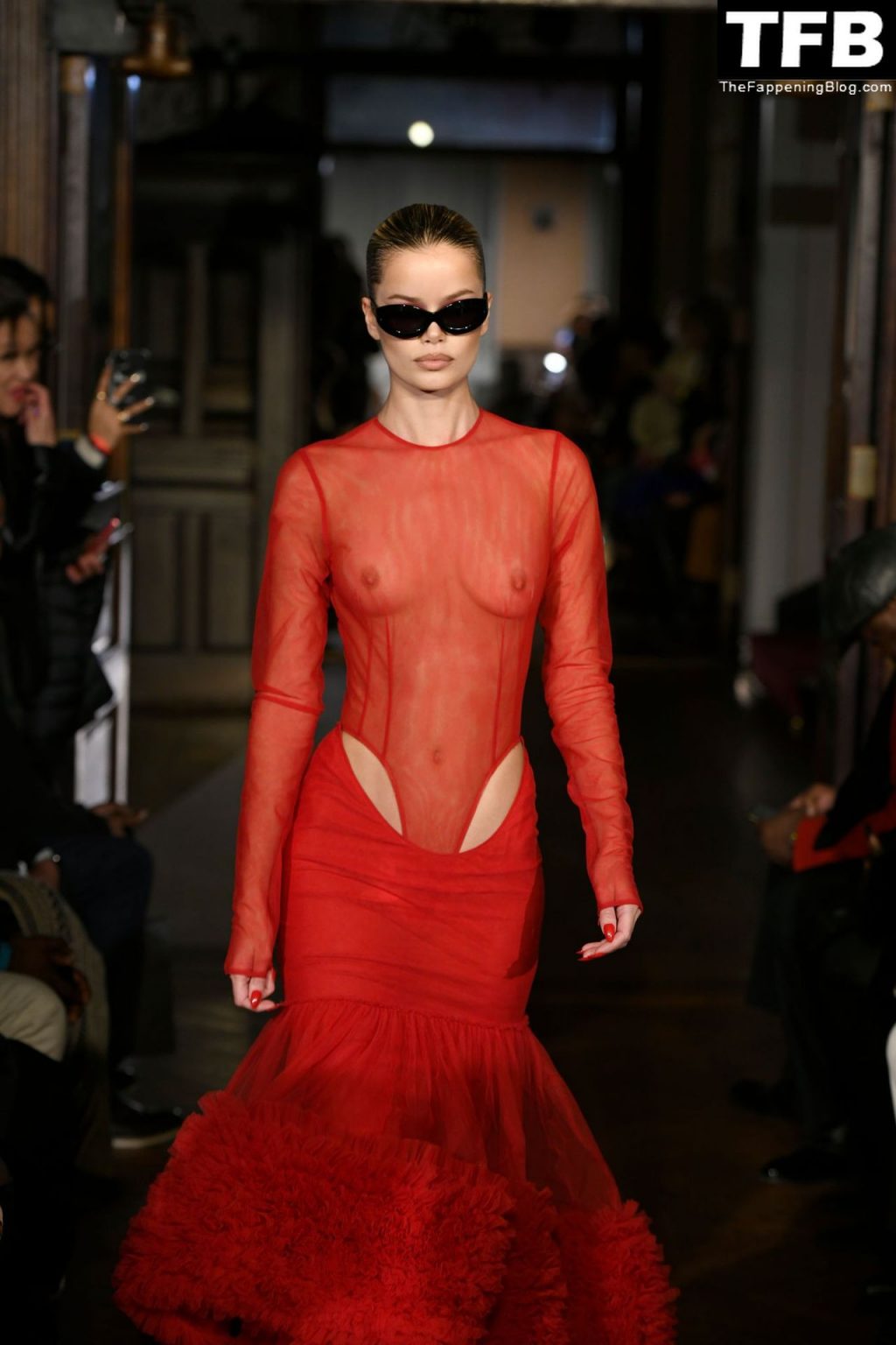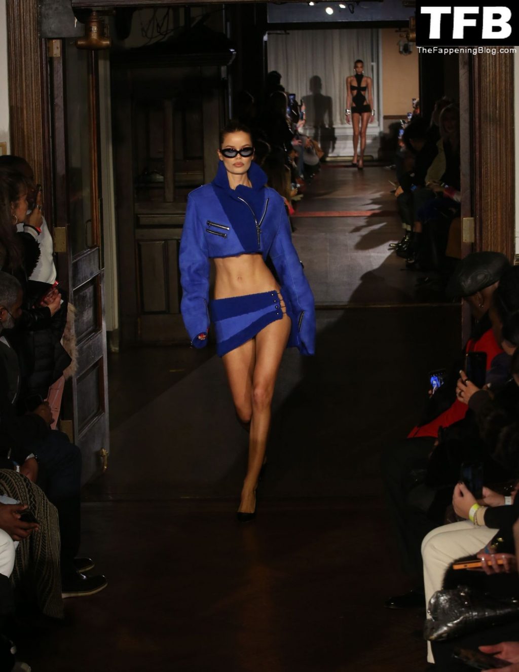 Modella Frida Aasen presenta le creazioni dell’ultima collezione di LaQuan Smith durante la settimana della moda a New York City, 14/02/2022.