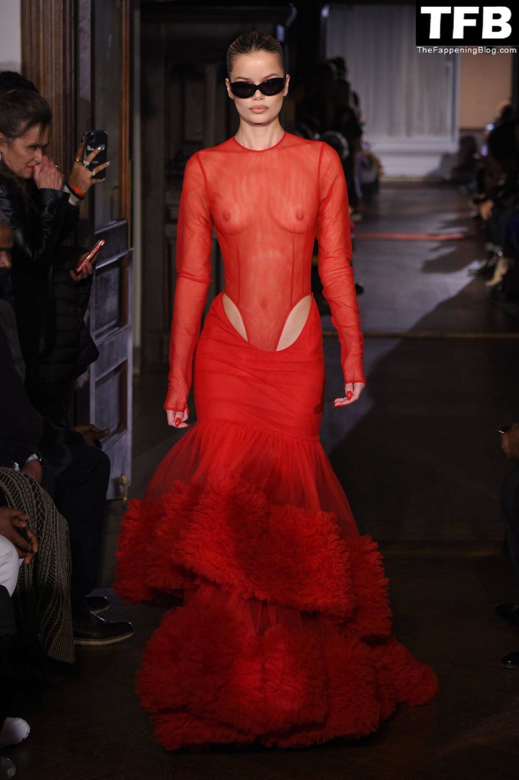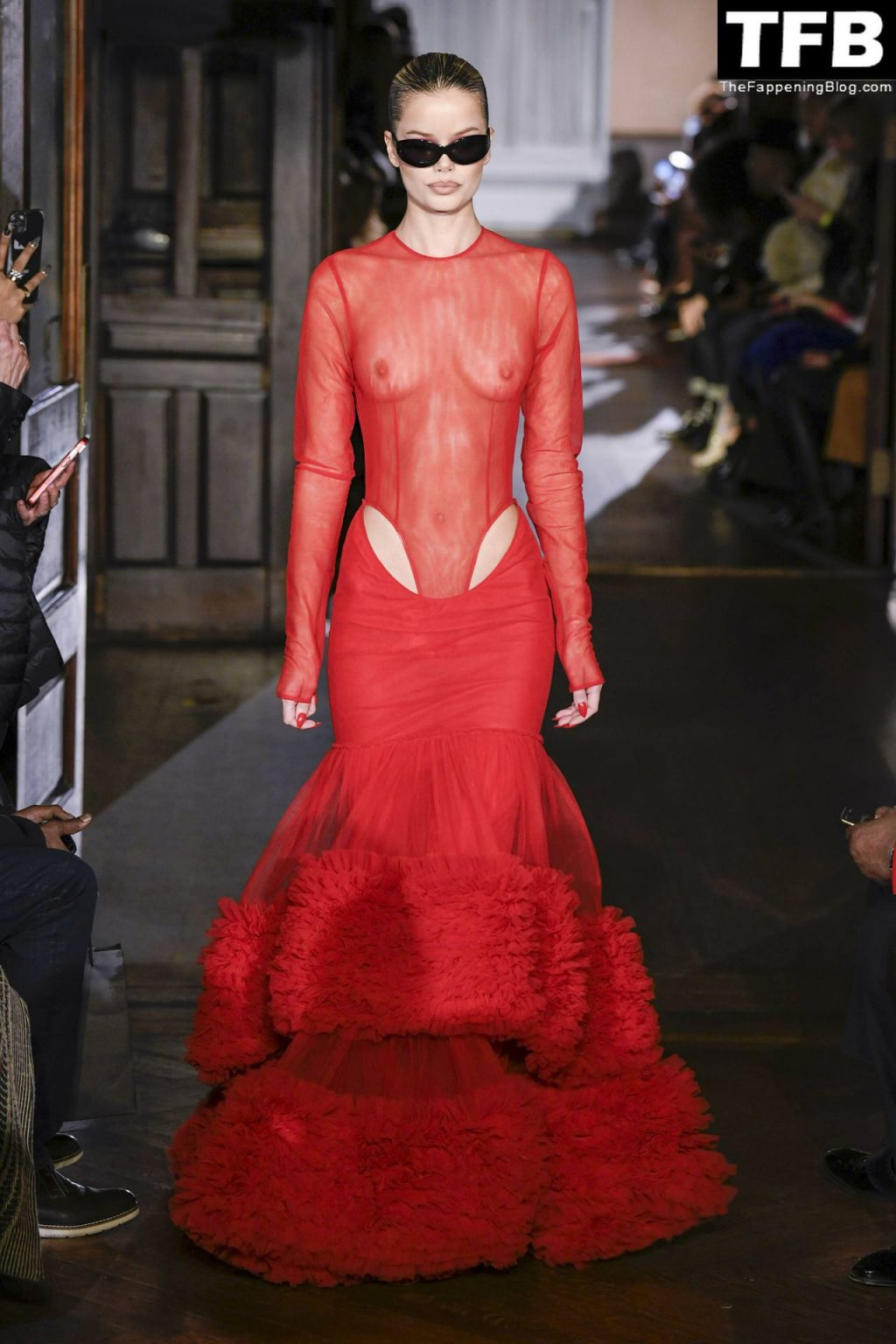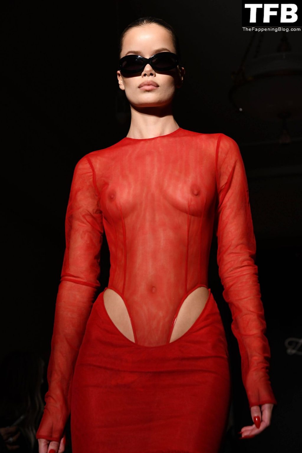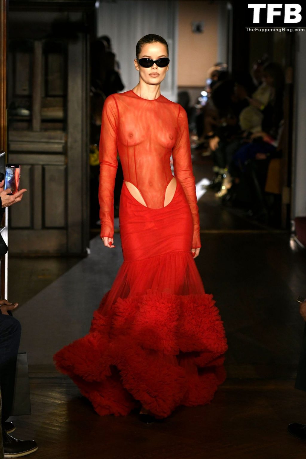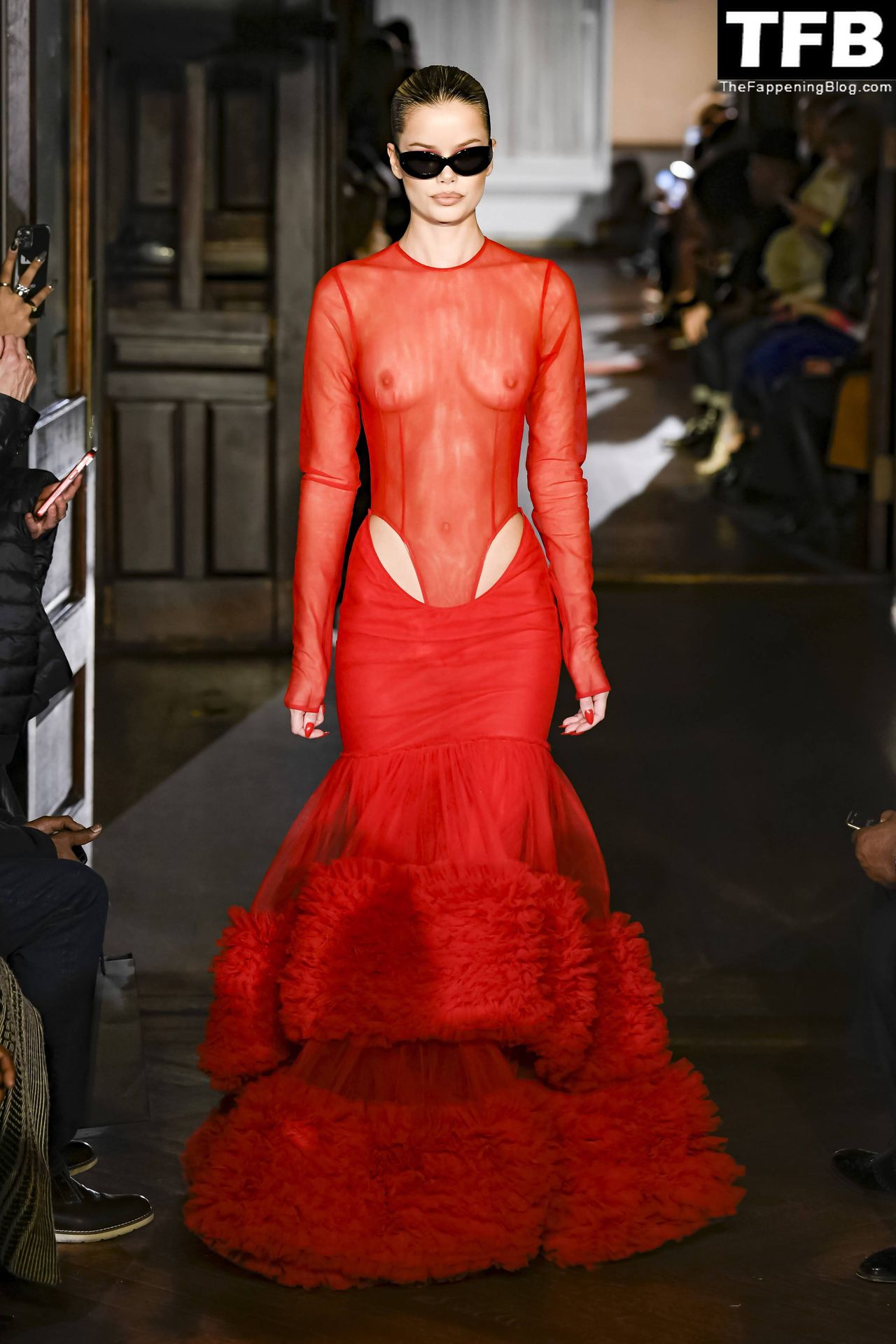 Modella Frida Aasen presenta le creazioni dell’ultima collezione di LaQuan Smith durante la settimana della moda a New York City, 14/02/2022.
