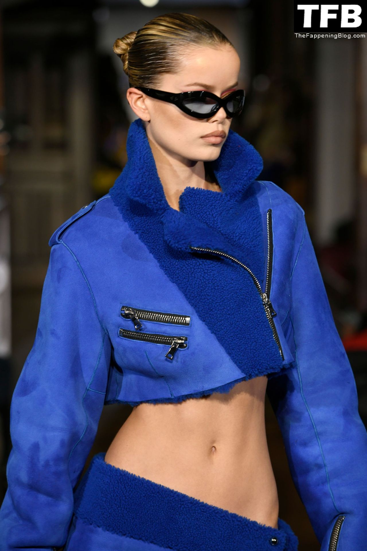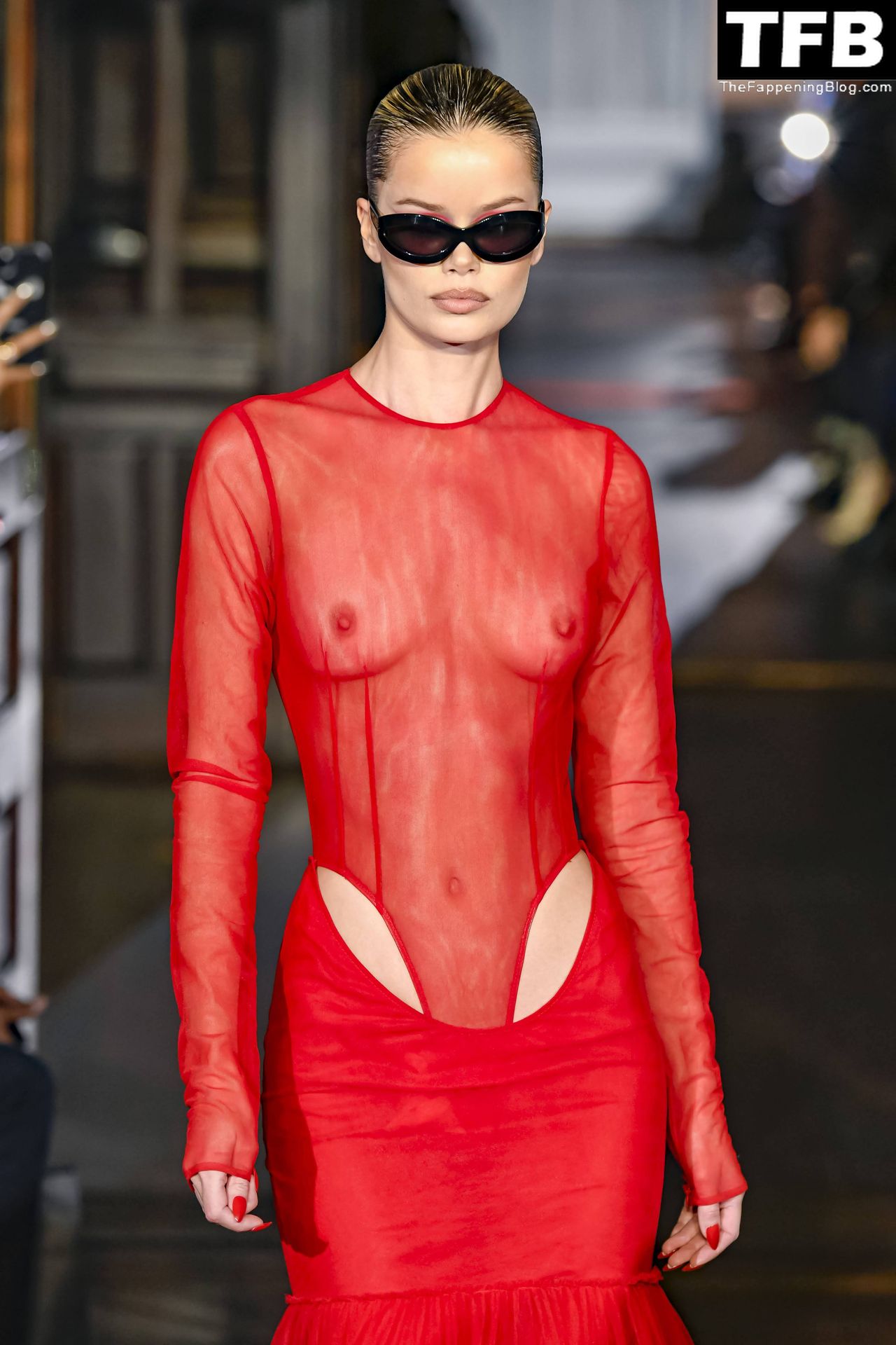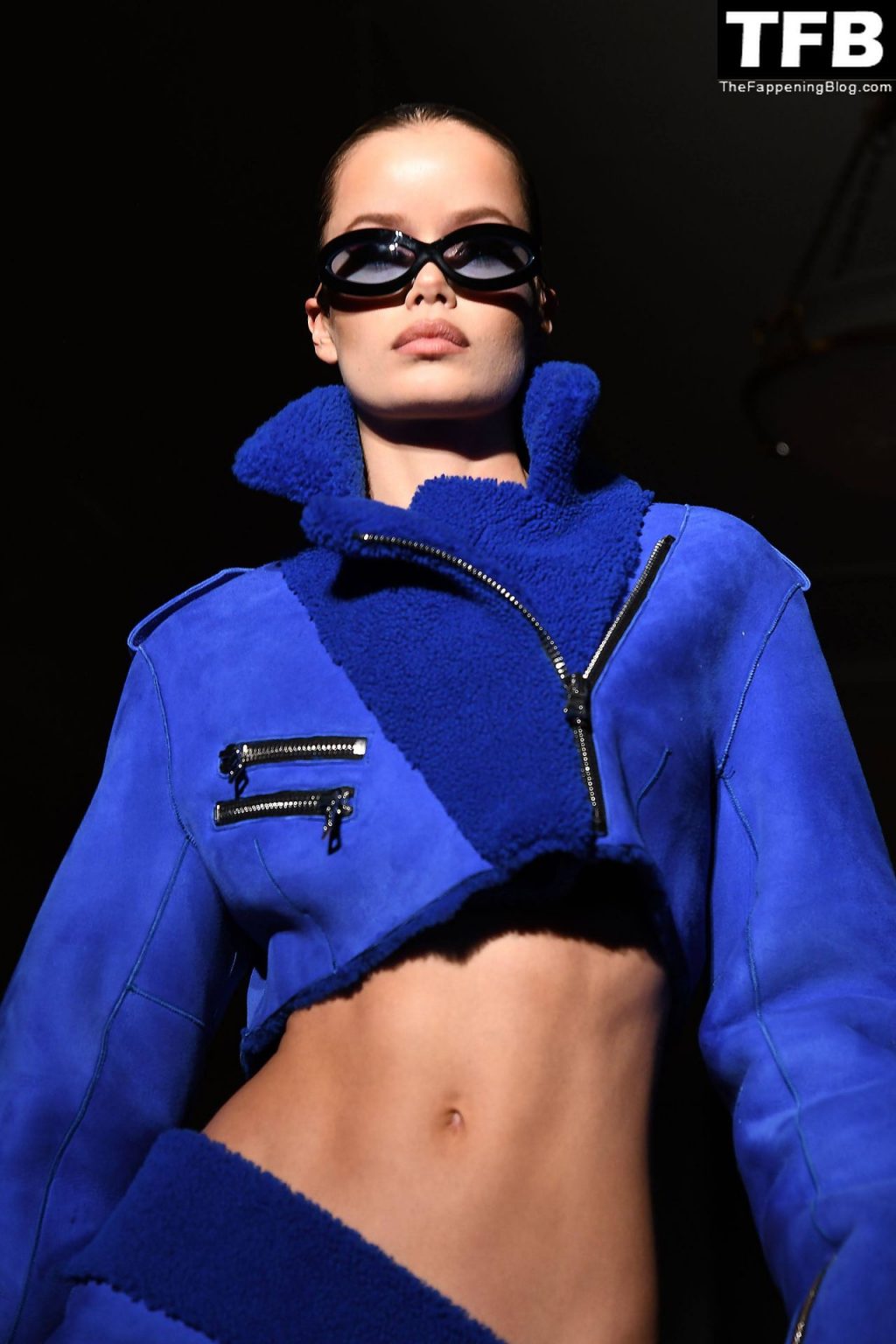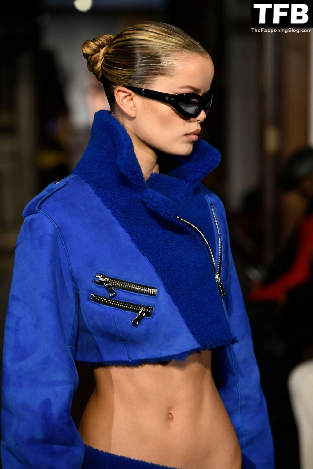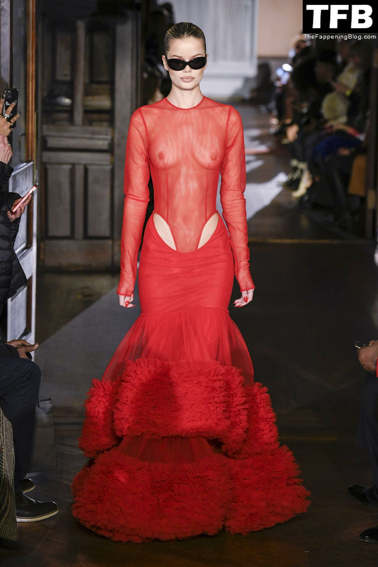 Modella Frida Aasen presenta le creazioni dell’ultima collezione di LaQuan Smith durante la settimana della moda a New York City, 14/02/2022.