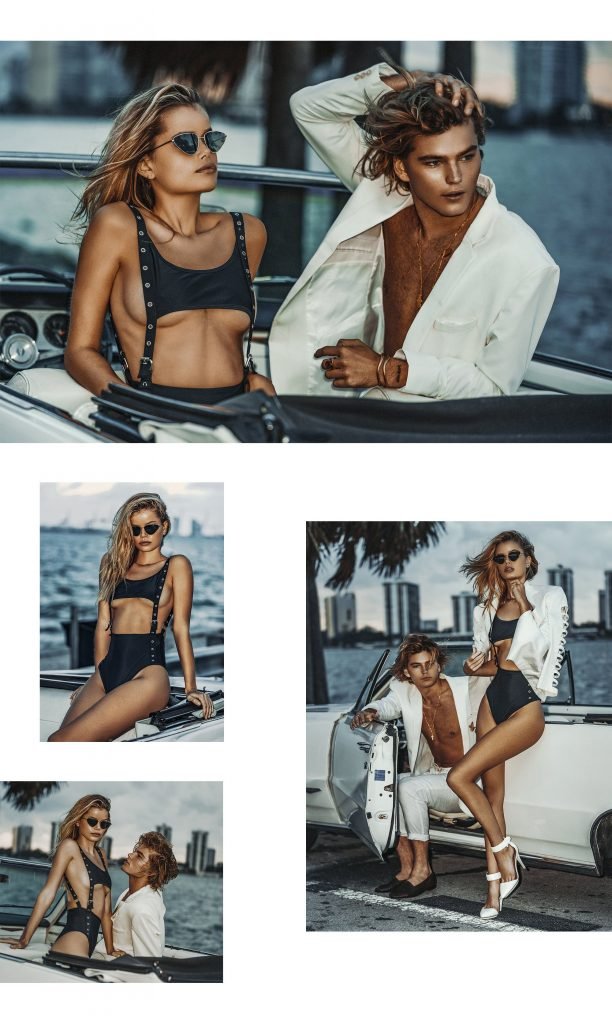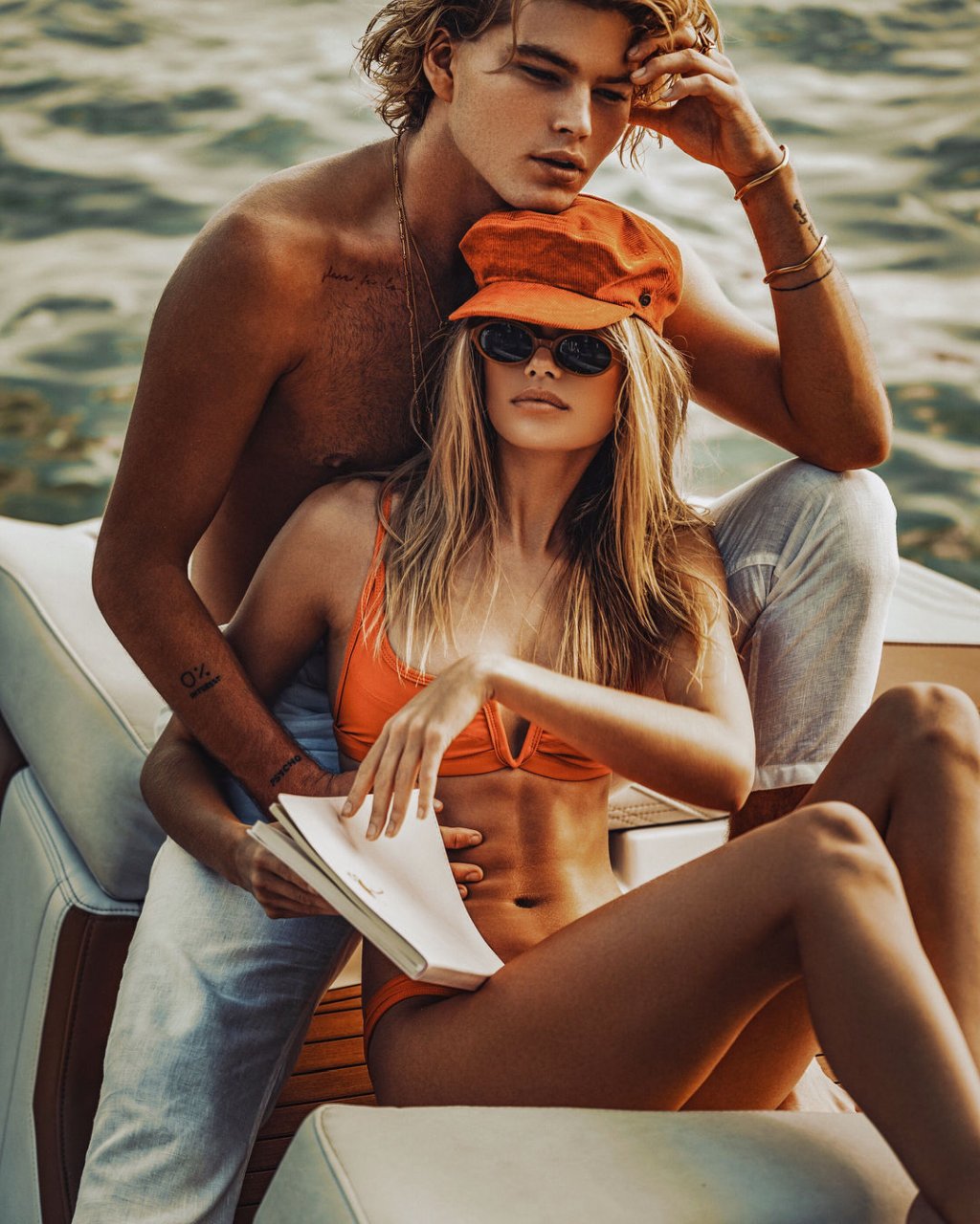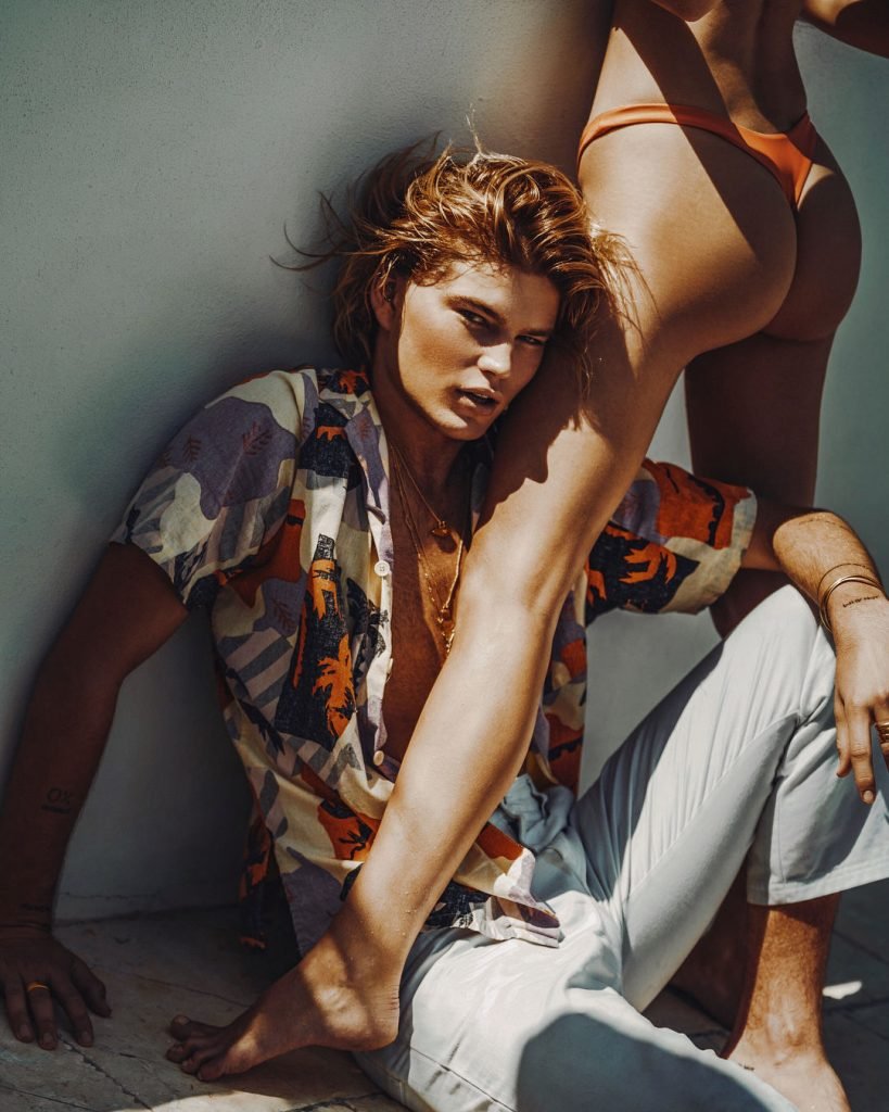 Models Frida Aasen e Jordan Barrett fotografati da Kesler Tran per la campagna Fristelser di Fae Swim (Primavera/Estate 2018). Frida Aasen è una top model di 23 anni di Kristiansand, Norvegia.
