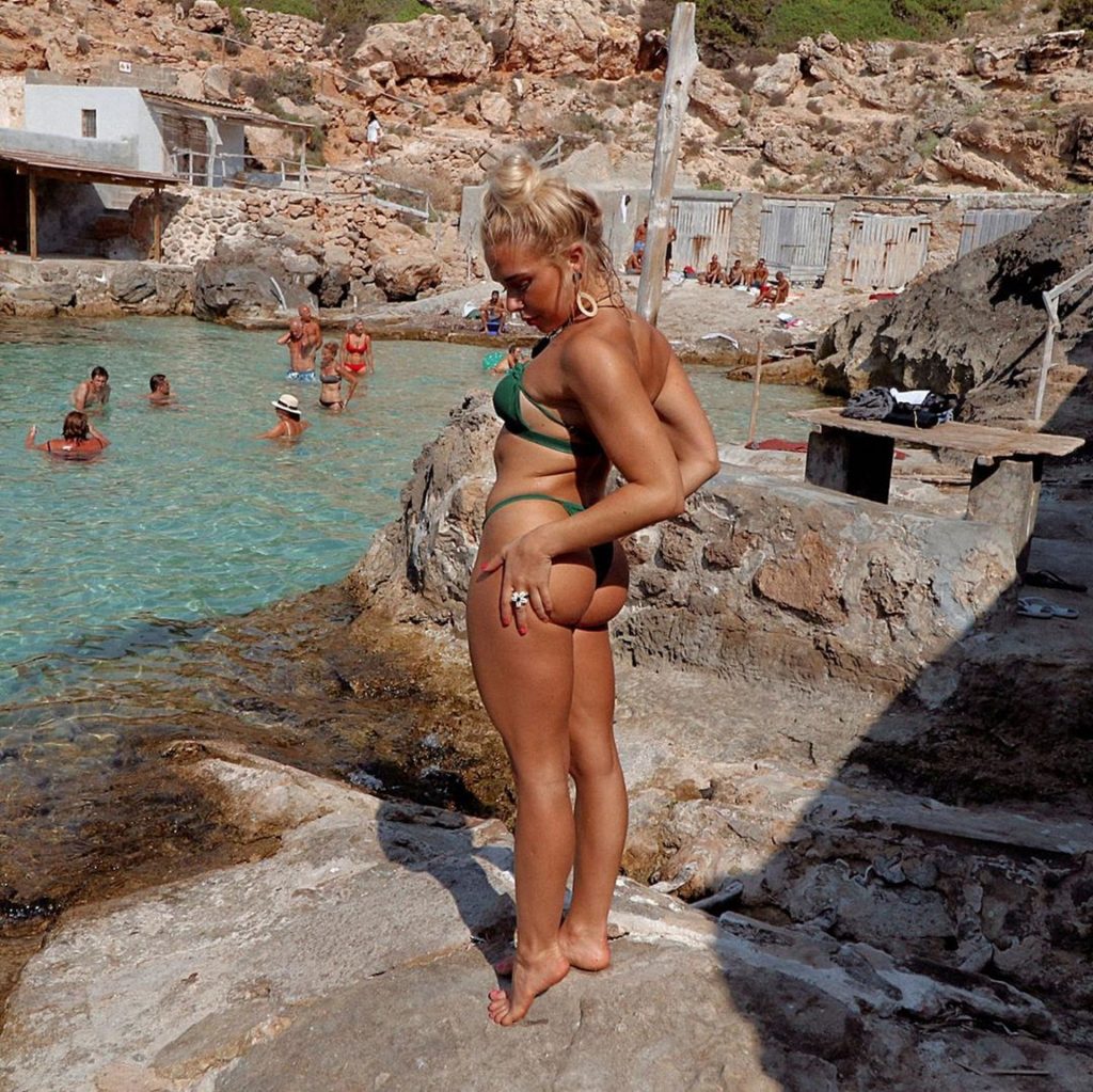L’ex Love Island è stata vista mentre si godeva la sua pausa al sole spagnolo con amici all’Ocean Beach di Ibiza, 21/07/2020.