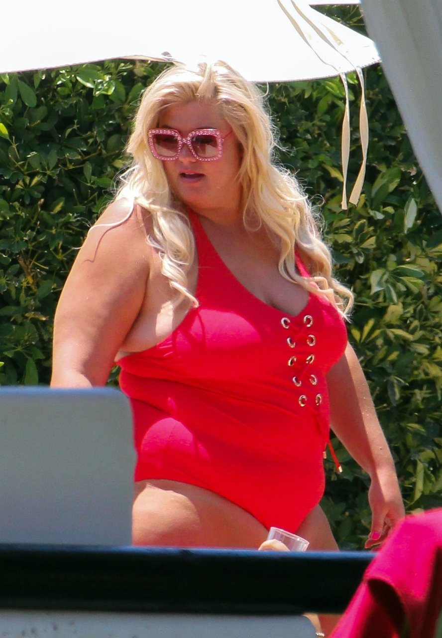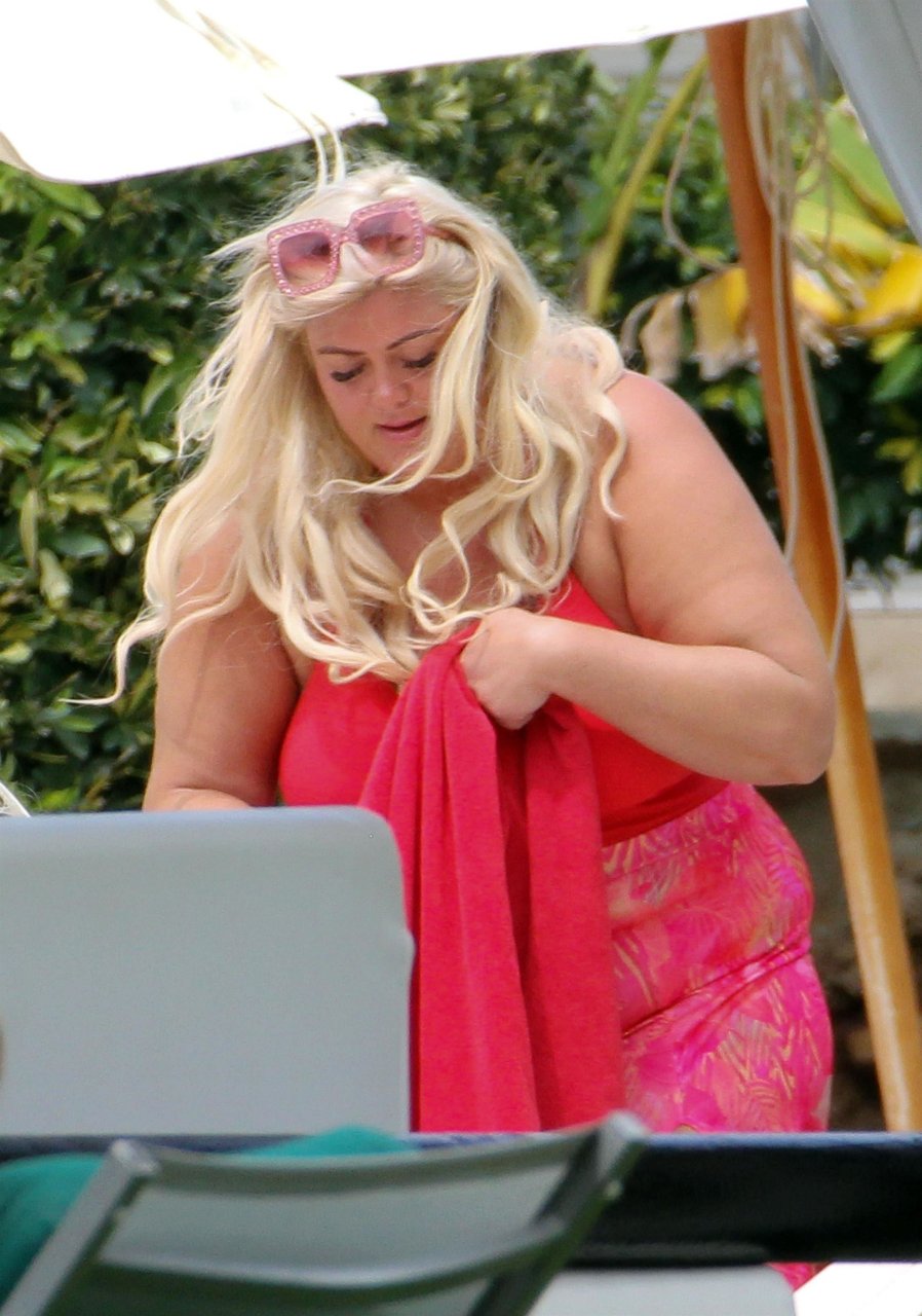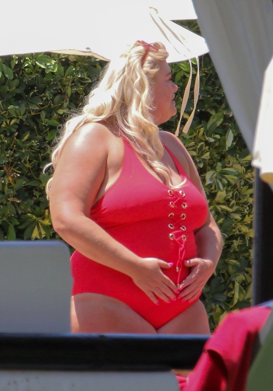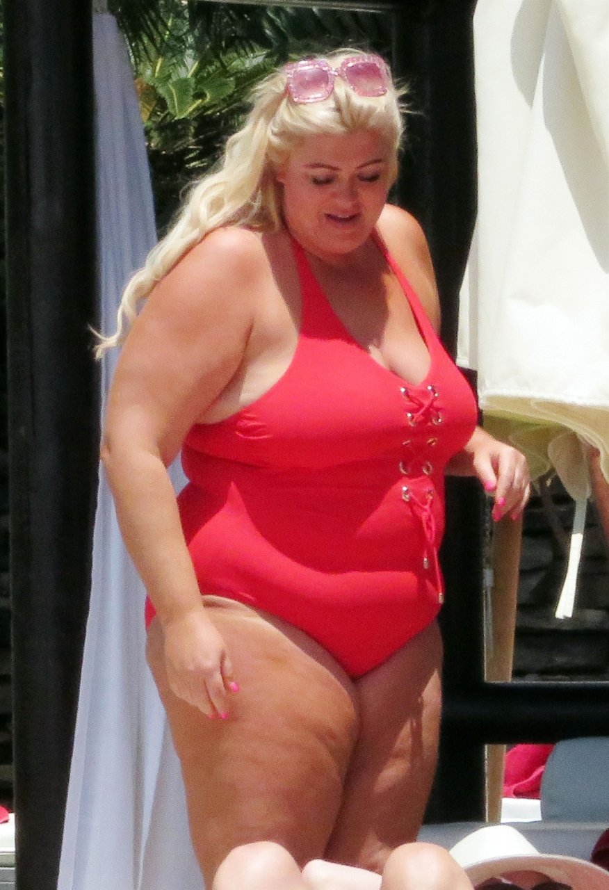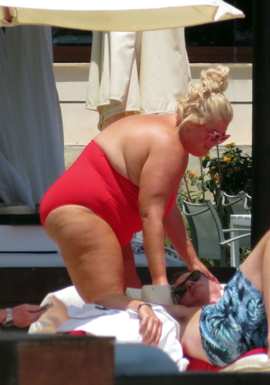 Star di TOWIE Gemma Collins (37) ritratta mentre si rilassa a bordo piscina durante una vacanza in Spagna, 27/05/2018. L’ex star di CBB è stata vista rilassarsi con gli amici a bordo piscina con un costume da bagno rosa acceso e occhiali da sole mentre gustava bevande e ha persino fatto un selfie con alcuni fan prima di godersi un rilassante massaggio al corpo presso l’hotel alla moda di Marbella.
