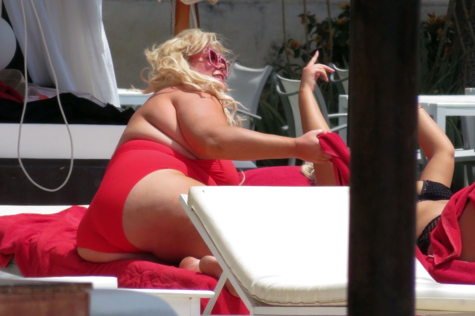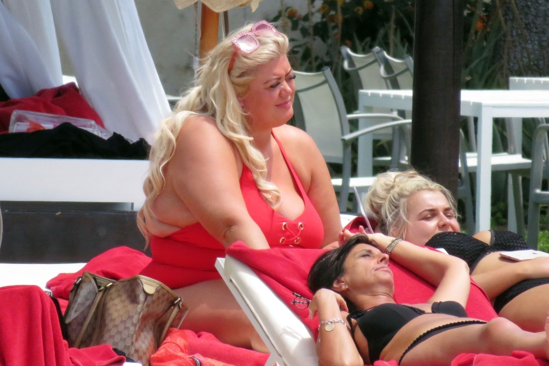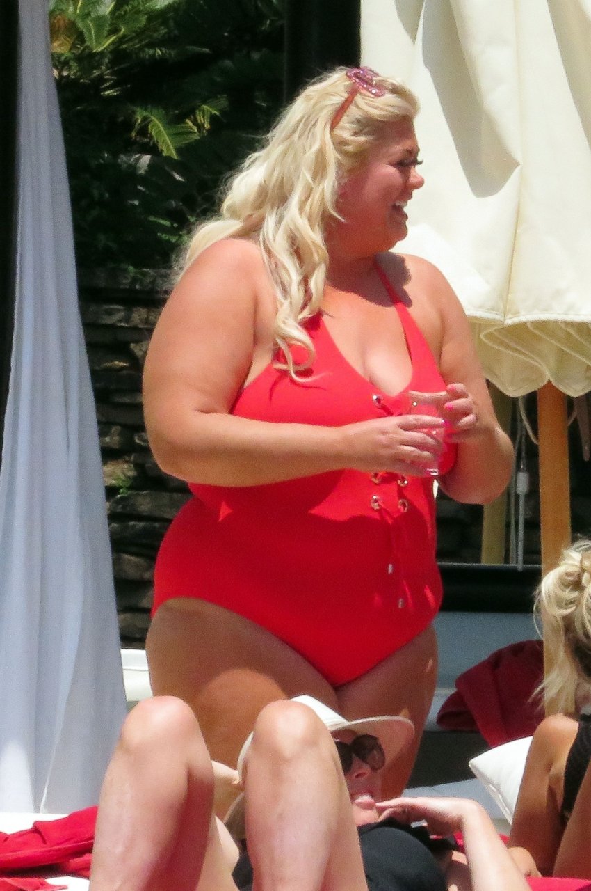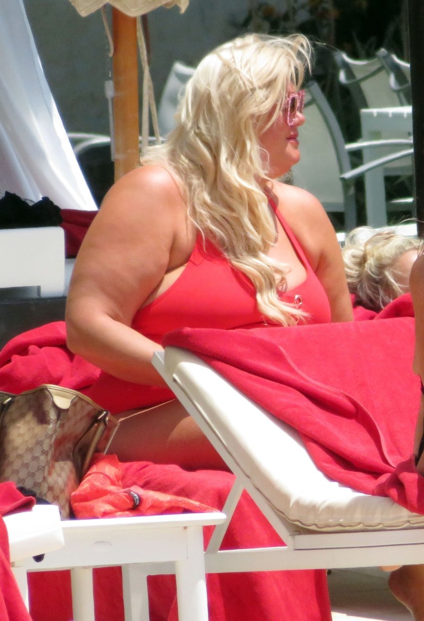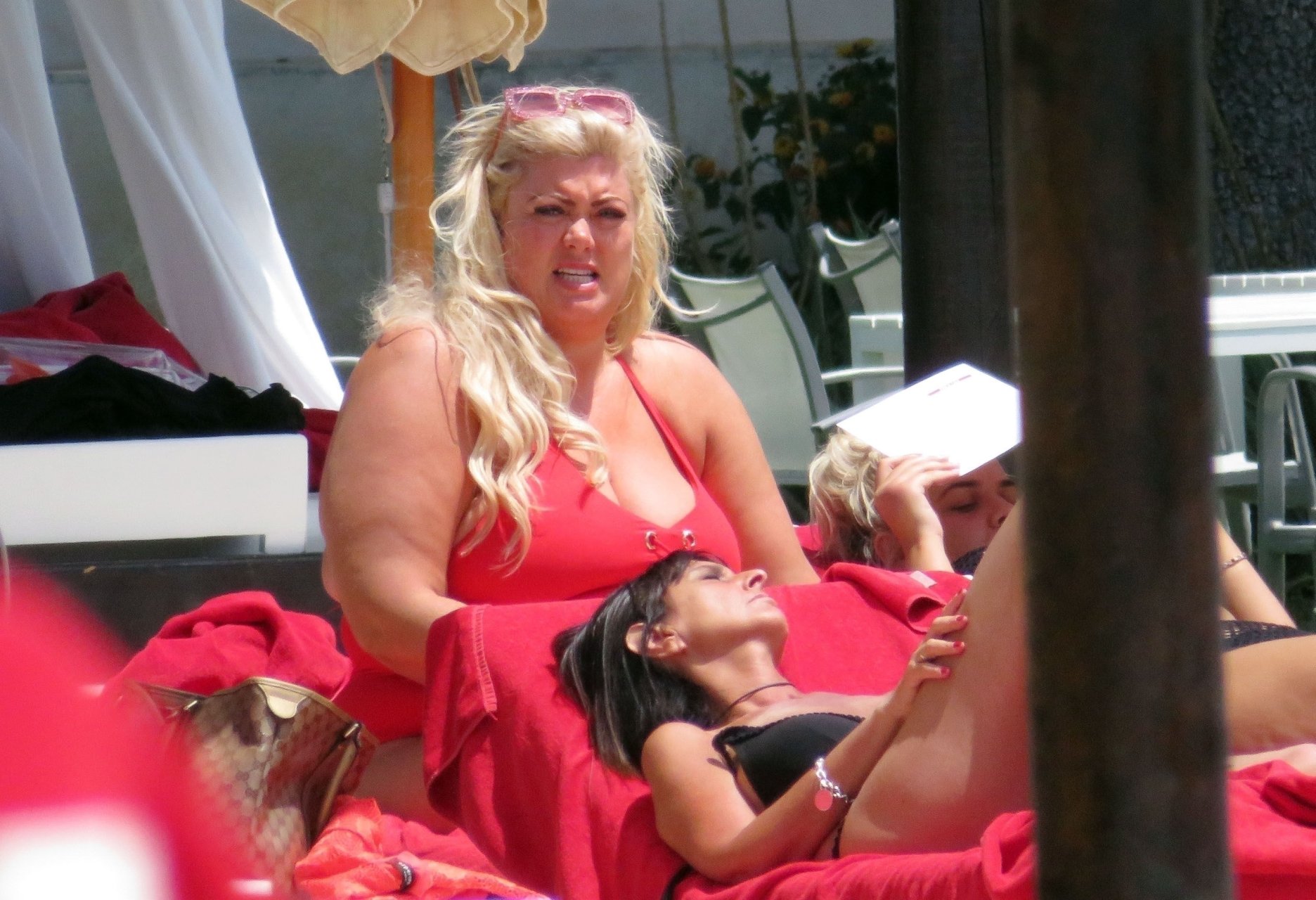 Star di TOWIE Gemma Collins (37) ritratta mentre si rilassa a bordo piscina durante una vacanza in Spagna, 27/05/2018. L’ex star di CBB è stata vista rilassarsi con gli amici a bordo piscina con un costume da bagno rosa acceso e occhiali da sole mentre gustava bevande e ha persino fatto un selfie con alcuni fan prima di godersi un rilassante massaggio al corpo presso l’hotel alla moda di Marbella.